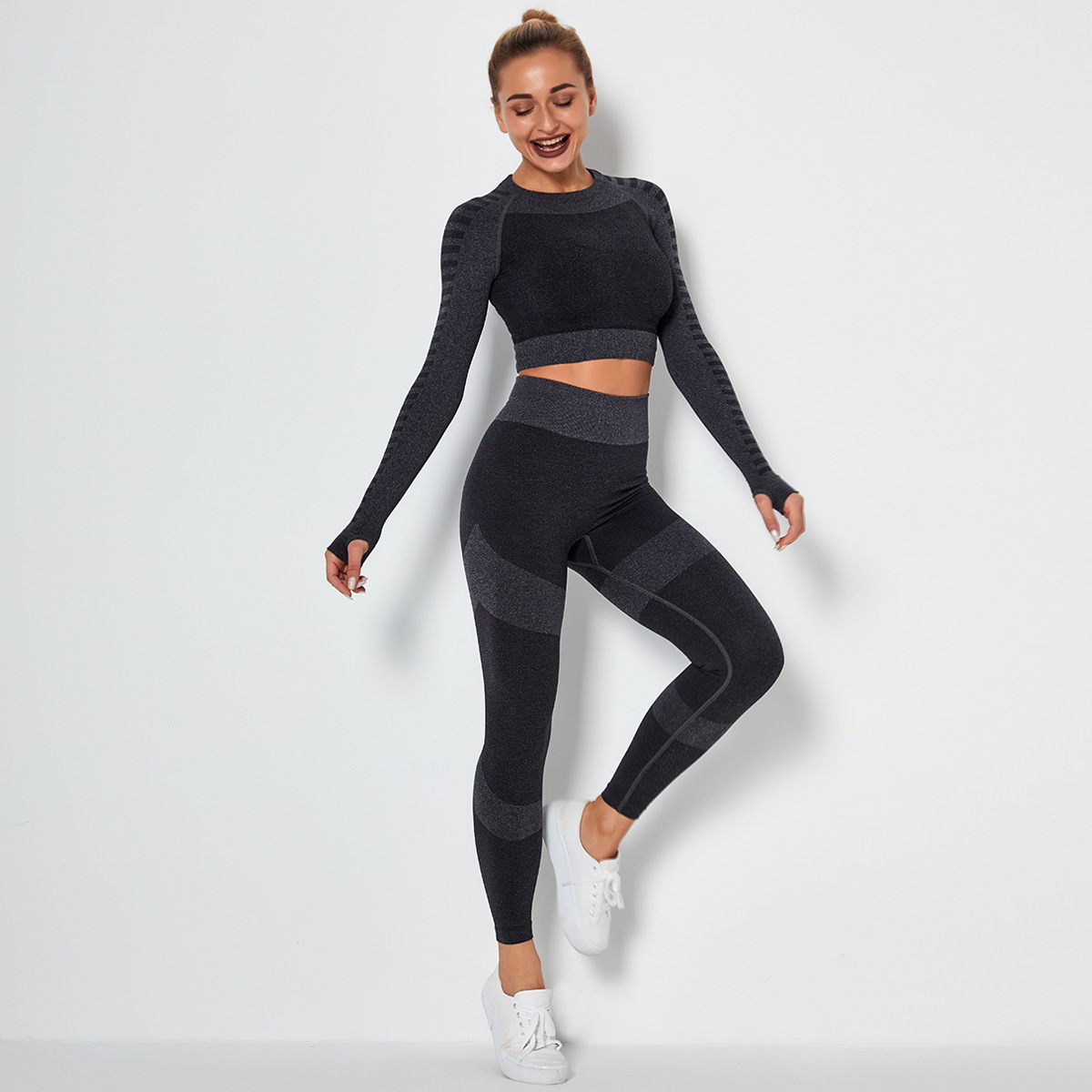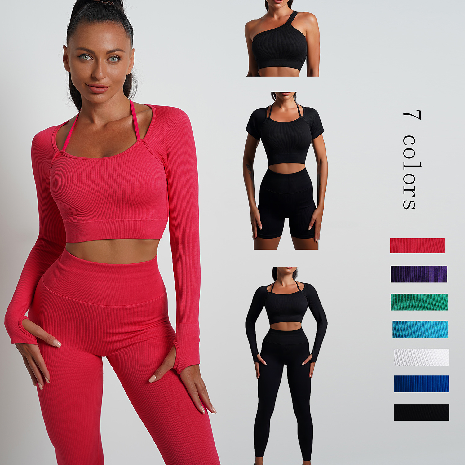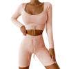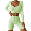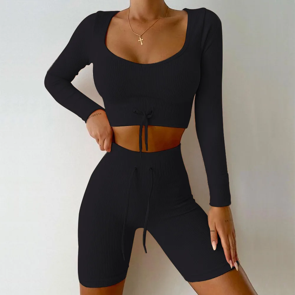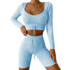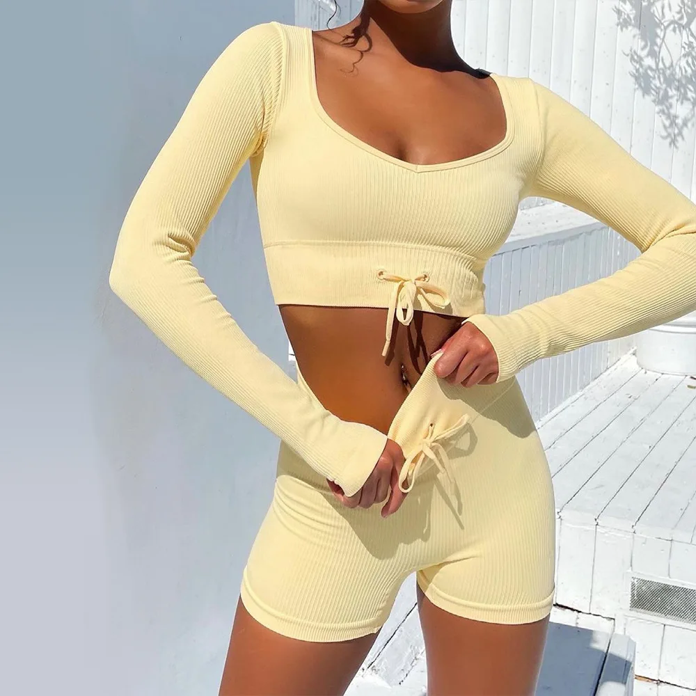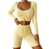 Seamless Yoga Sets Sports Ftiness High Waist Hip-Lifting Drawstring Shorts Long-Sleeved Suits Workout Gym Leggings Set for Women