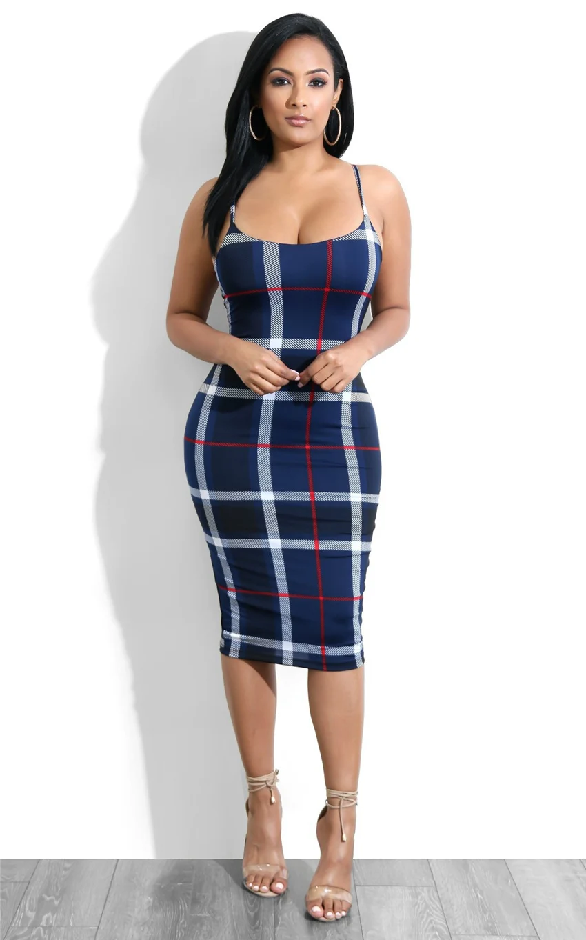 Sexy Bodycon Plaid Sheath beach Dress Women Spring Summer Backless Slim Elastic Bandage Party Dresses casual Vestidos robe femme