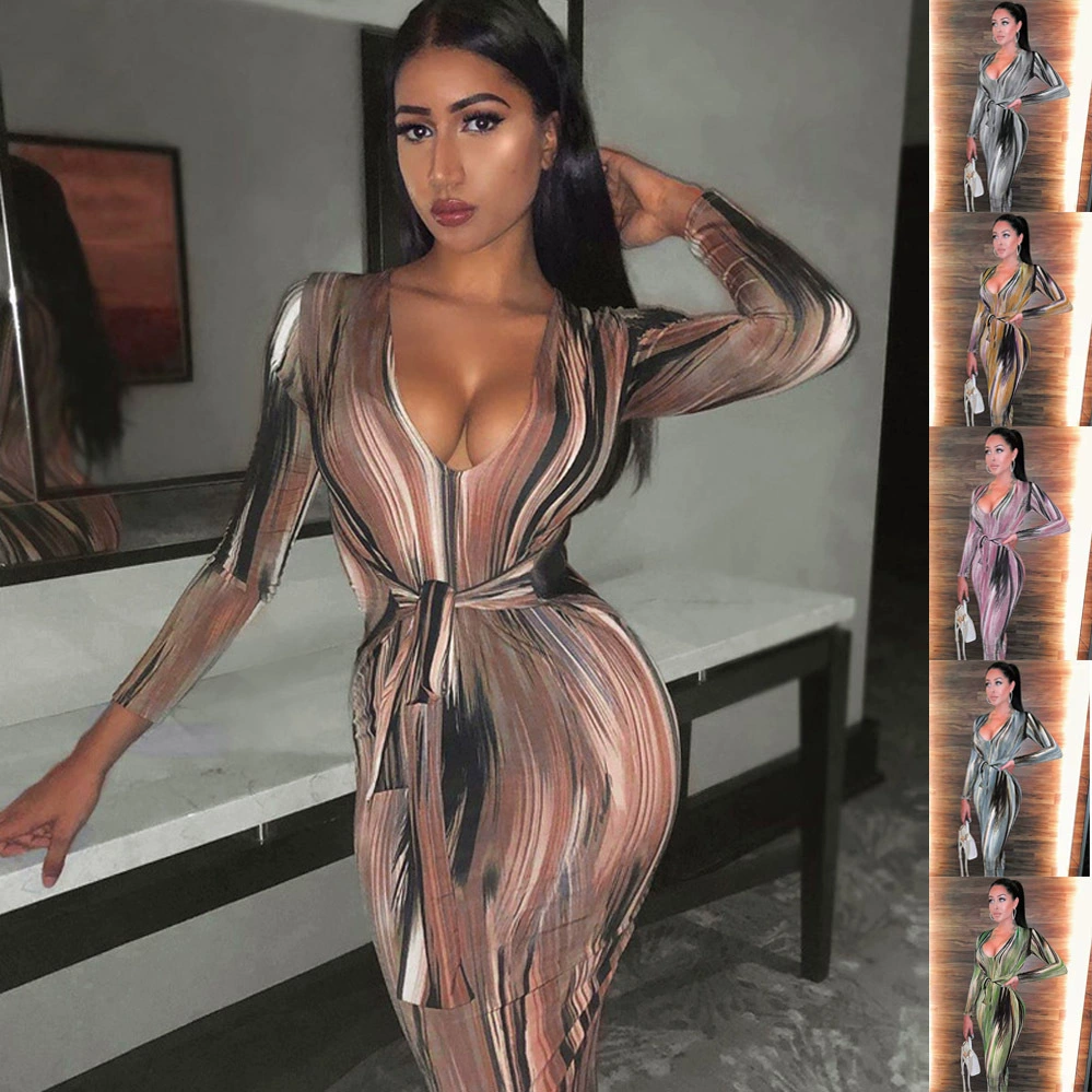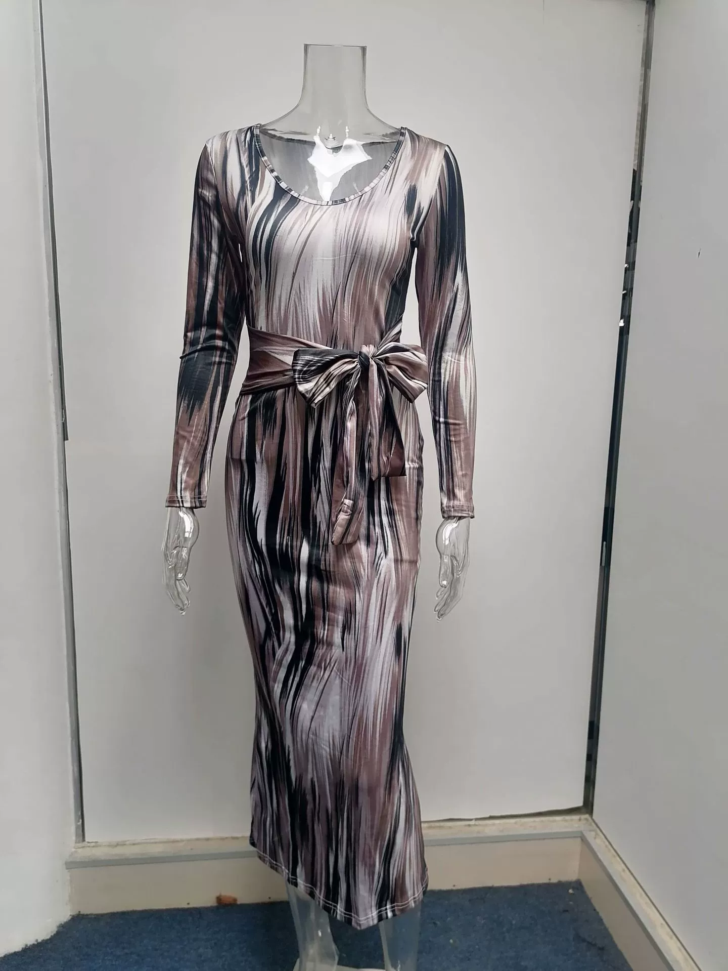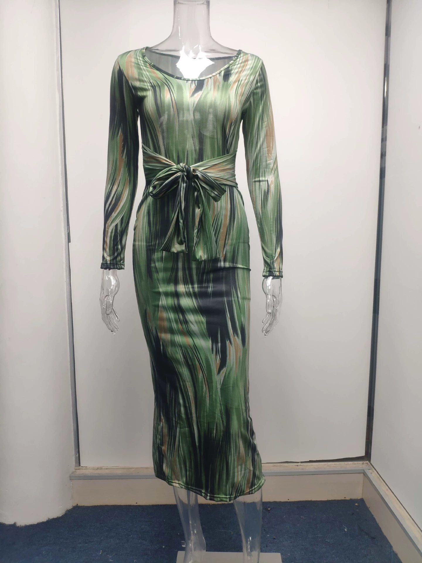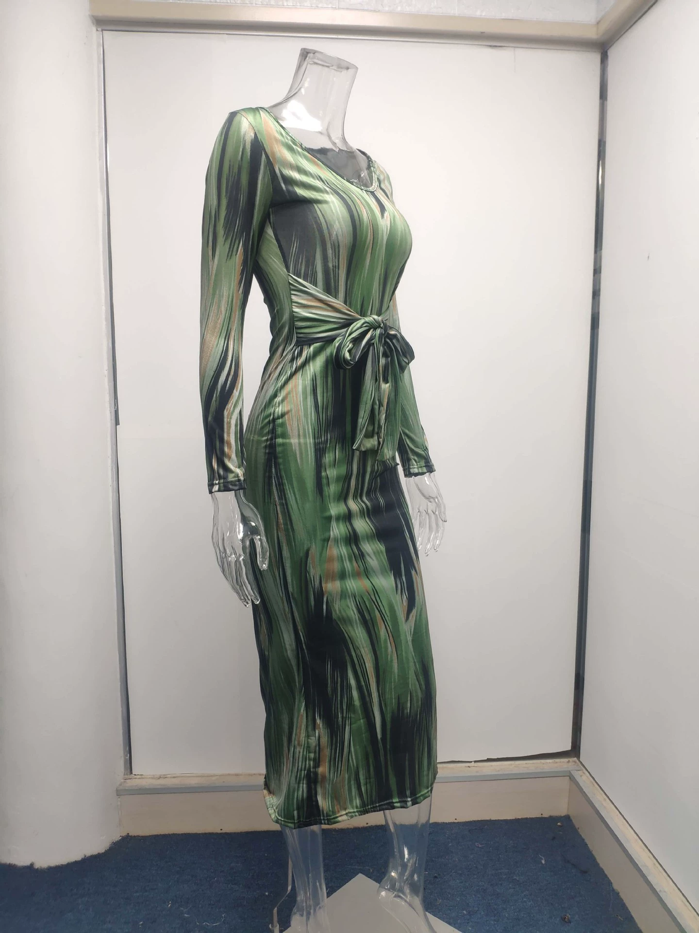 Sexy Fall 2022 New Fashion O Neck Long Sleeve Belt Slim Robe Ladies Dress Party Club Tight Long Dress Women Elegant Dress S-6XL