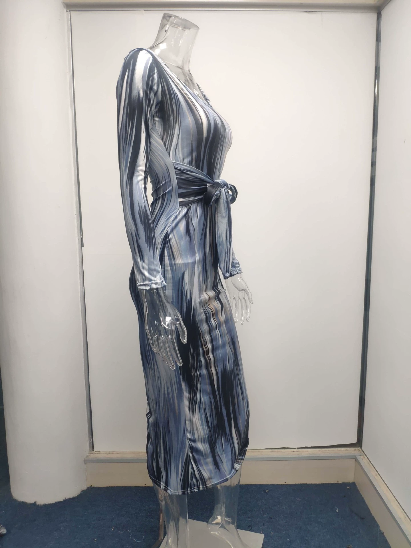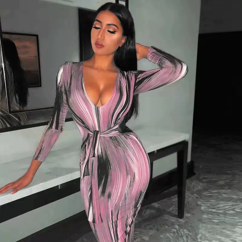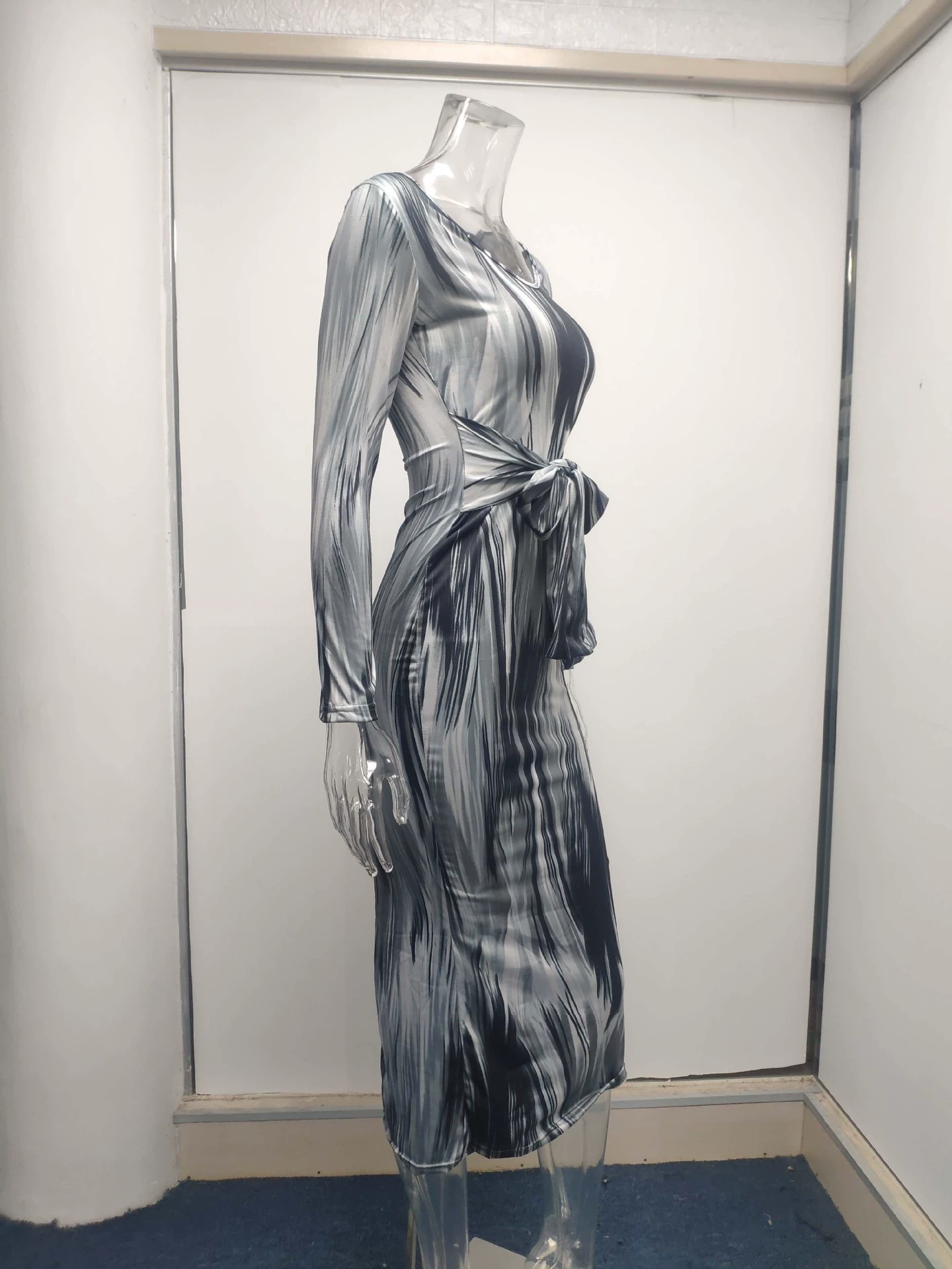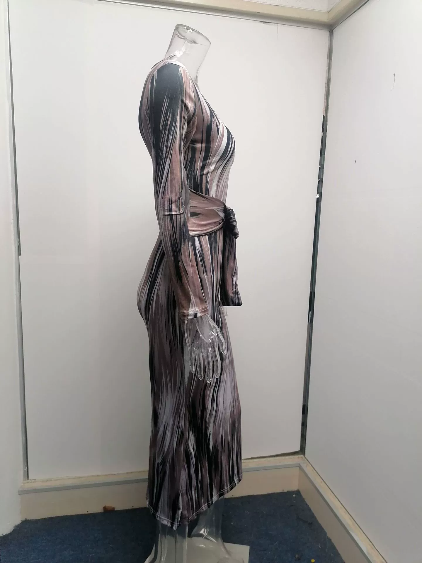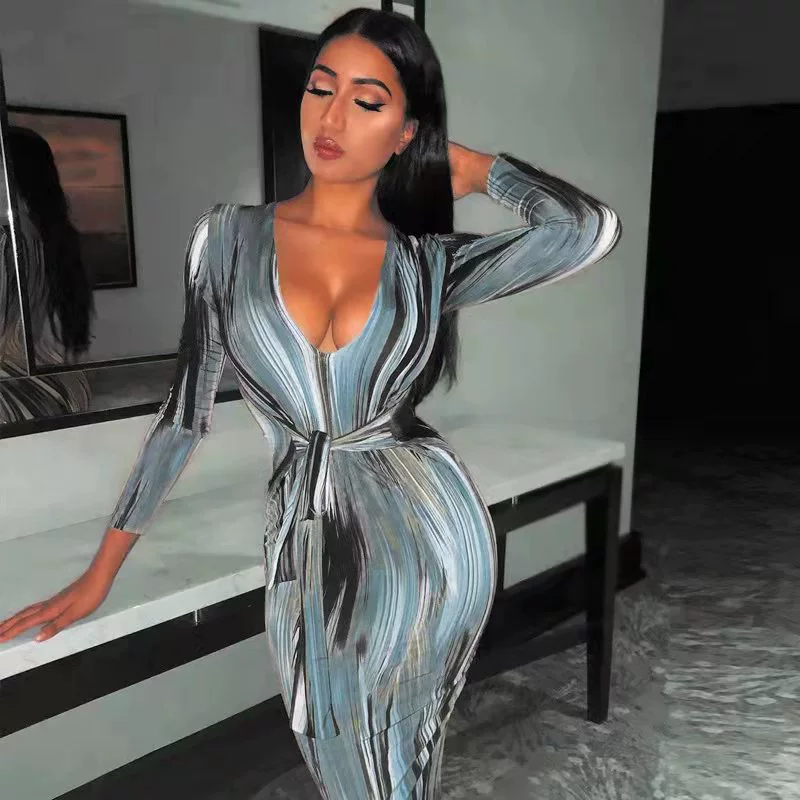 Sexy Fall 2022 New Fashion O Neck Long Sleeve Belt Slim Robe Ladies Dress Party Club Tight Long Dress Women Elegant Dress S-6XL