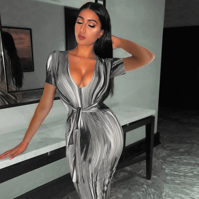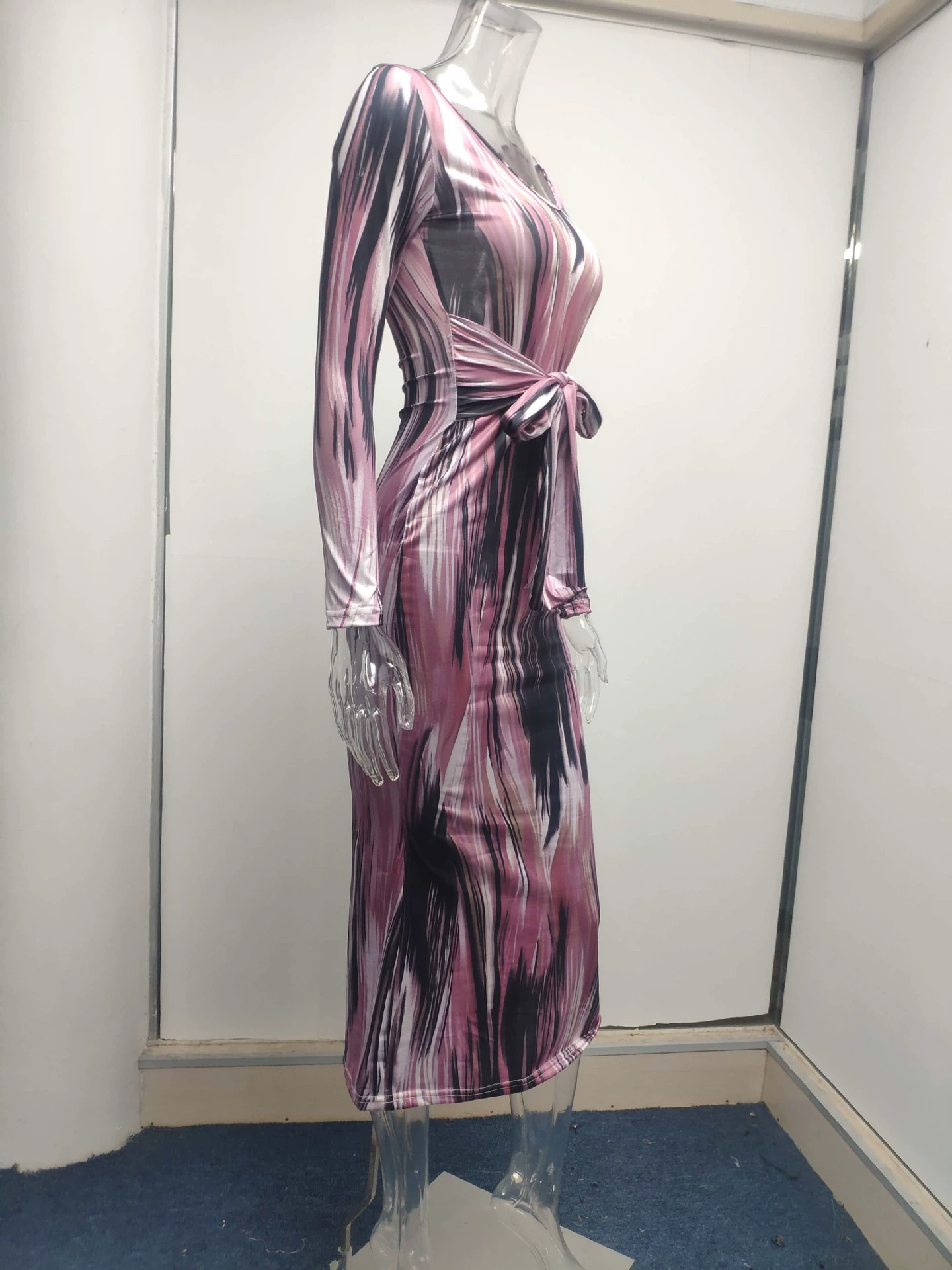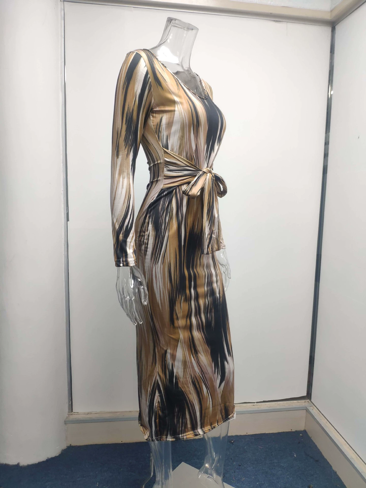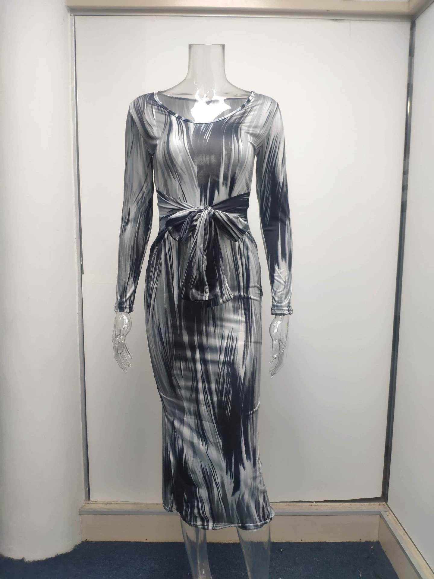 Sexy Fall 2022 New Fashion O Neck Long Sleeve Belt Slim Robe Ladies Dress Party Club Tight Long Dress Women Elegant Dress S-6XL