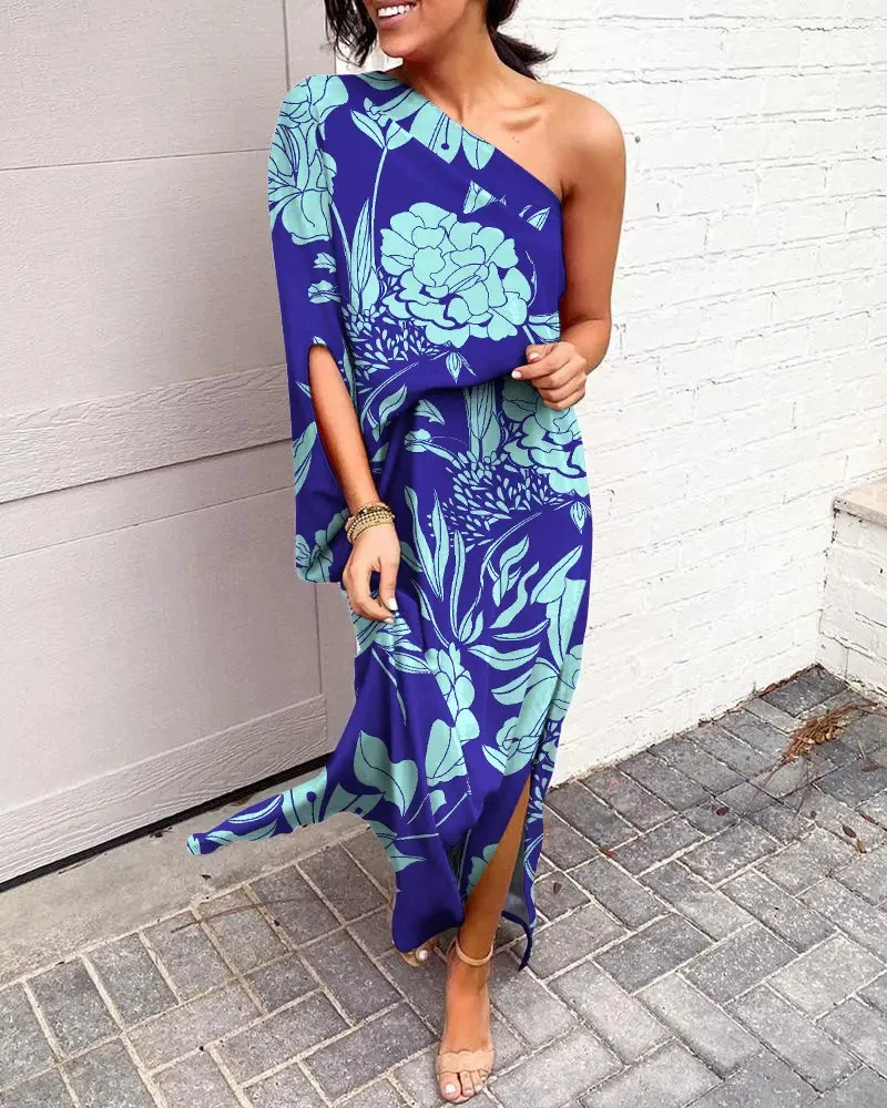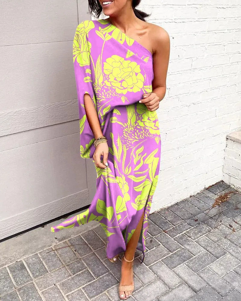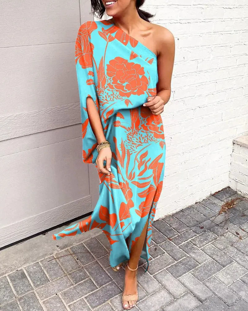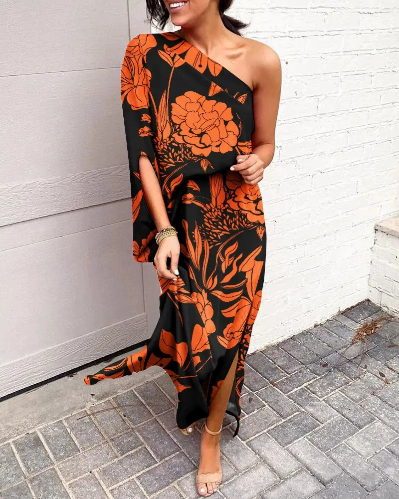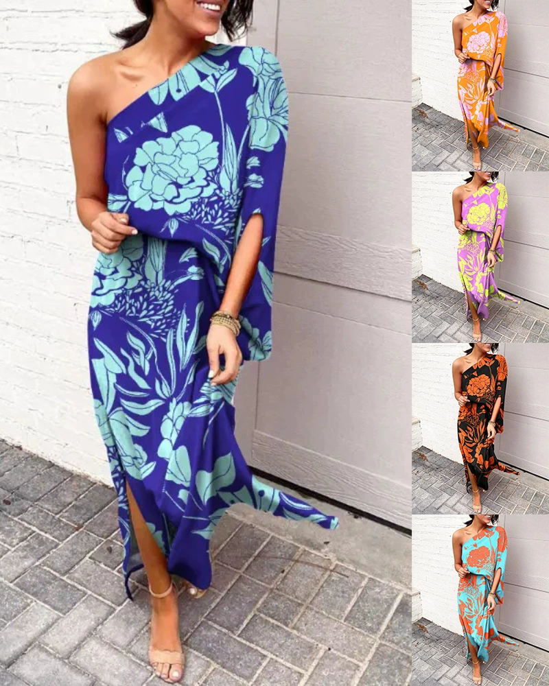 Sexy Fashion Women's Dress Slanted Shoulder Unilateral Sleeve Off-the-shoulder Nightclub Party Summer Dress Elegant Long Skirt