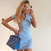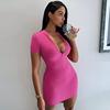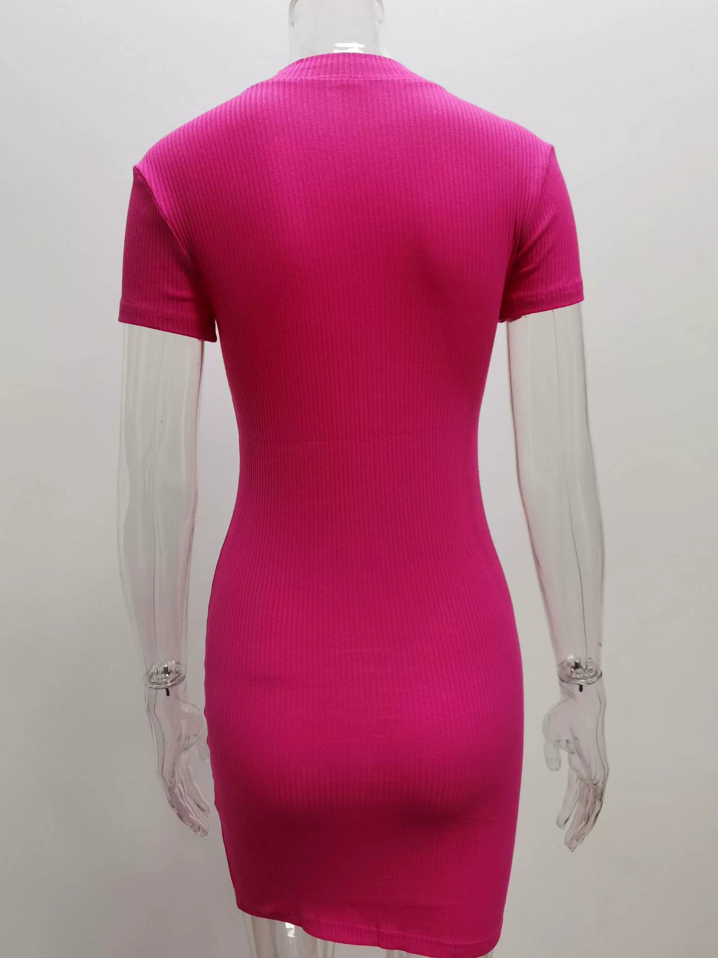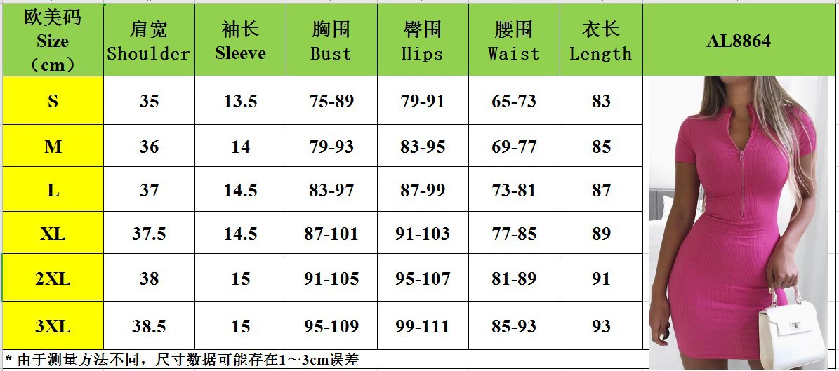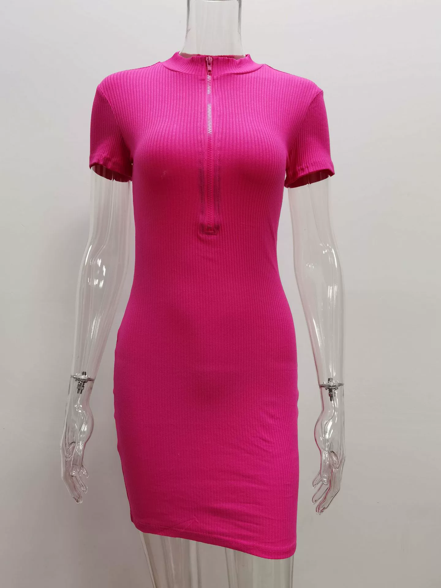 Sexy High Neck Zipper Short Sleeve Hip Mini dress Nightclub Party Tight dresses for women Summer New Ladies Elegant Short Skirt