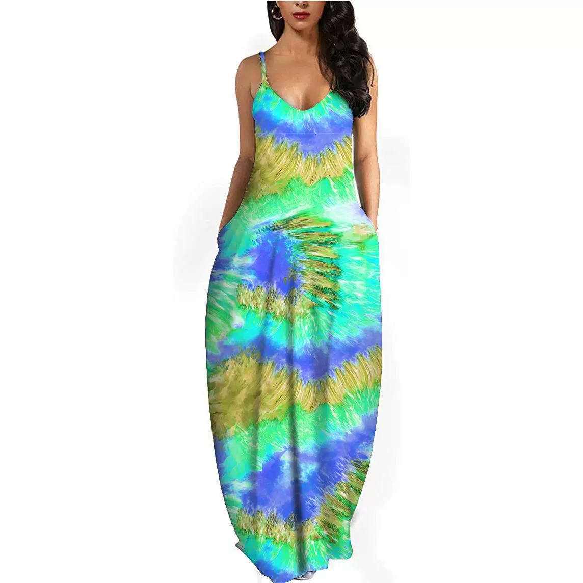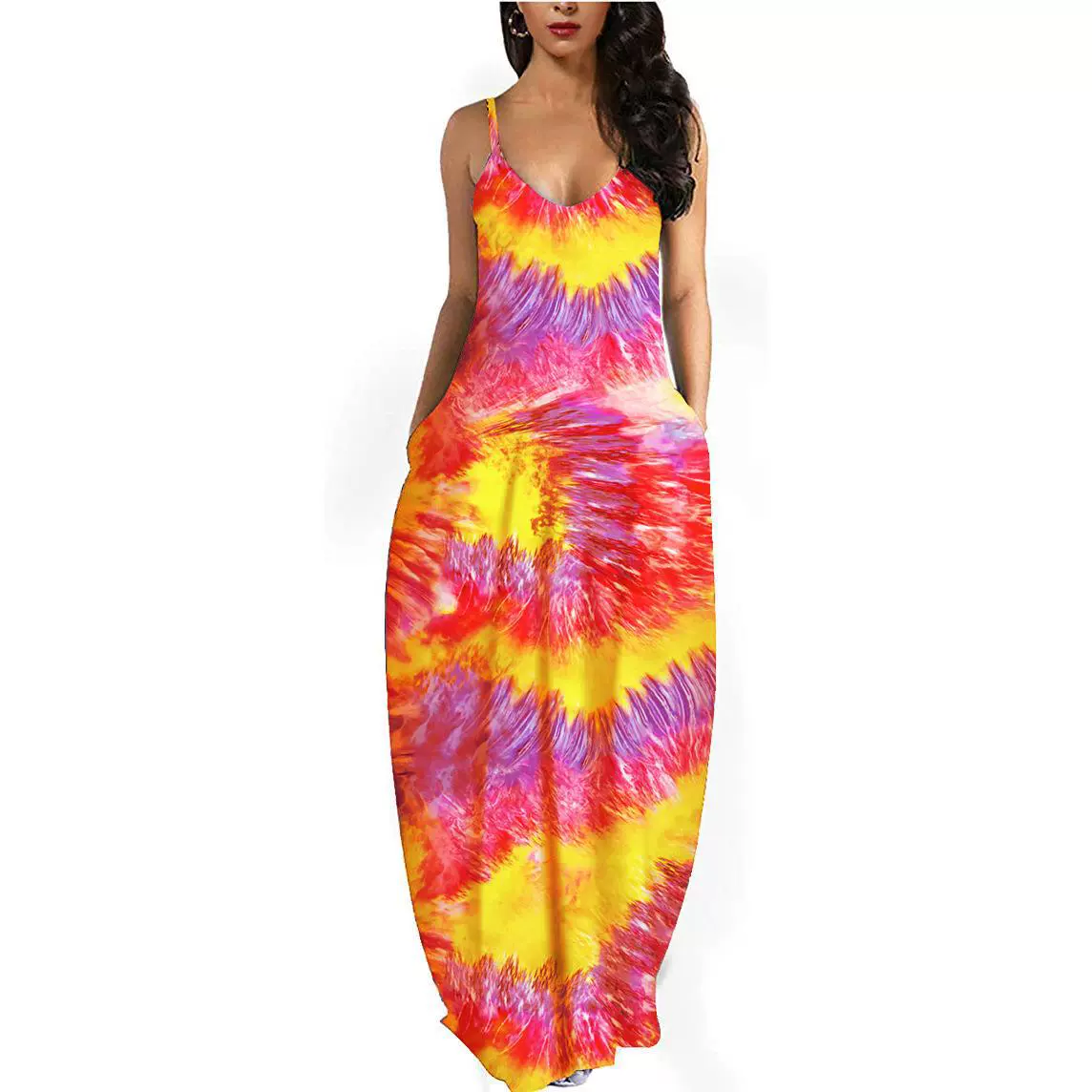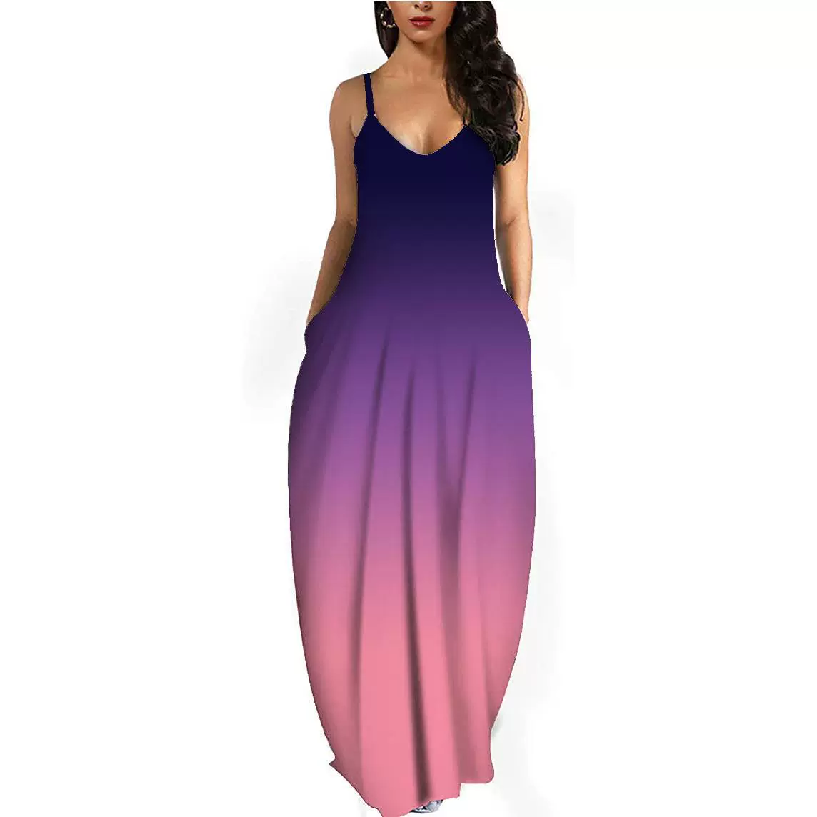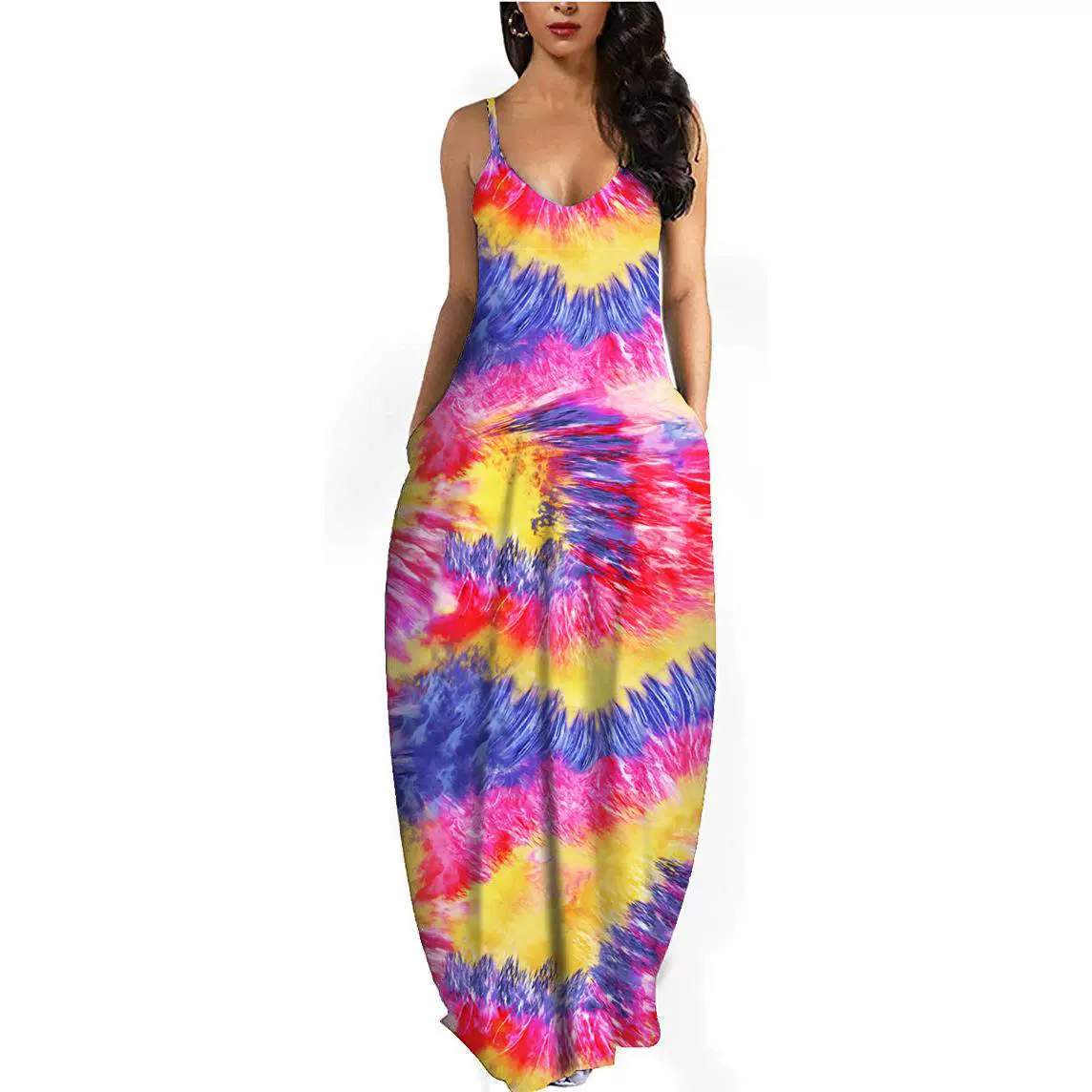 Sexy Ladies robe dress Sling Low Neck Sleeveless Tie Dye Gradient Nightclub Party Loose Dress New Elegant платье женское летнее
