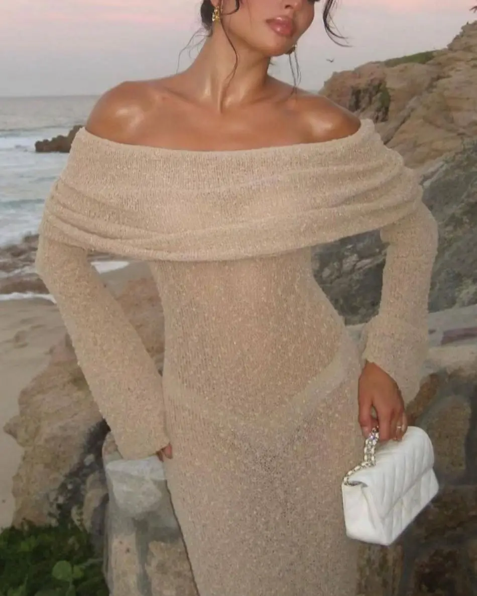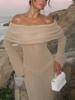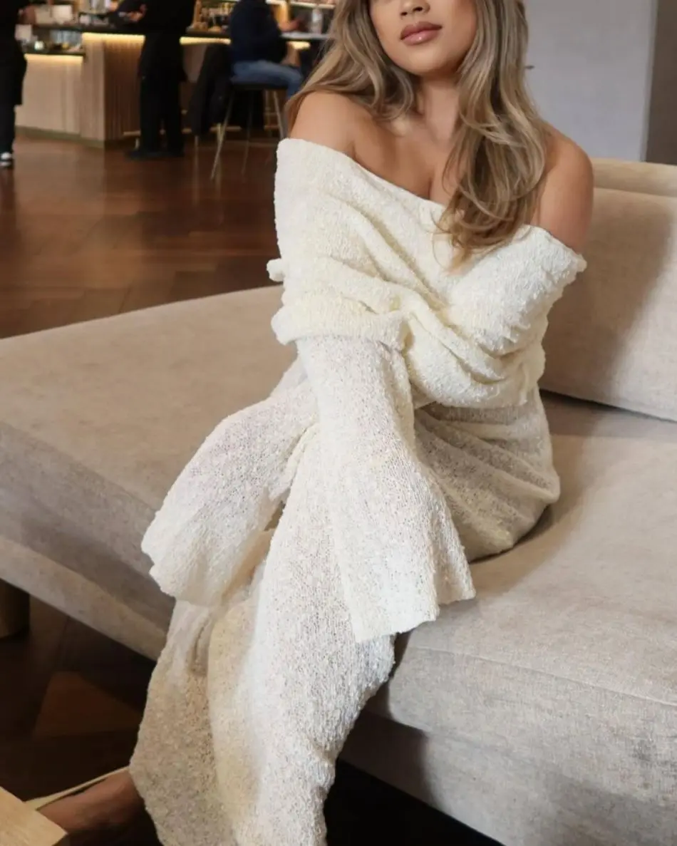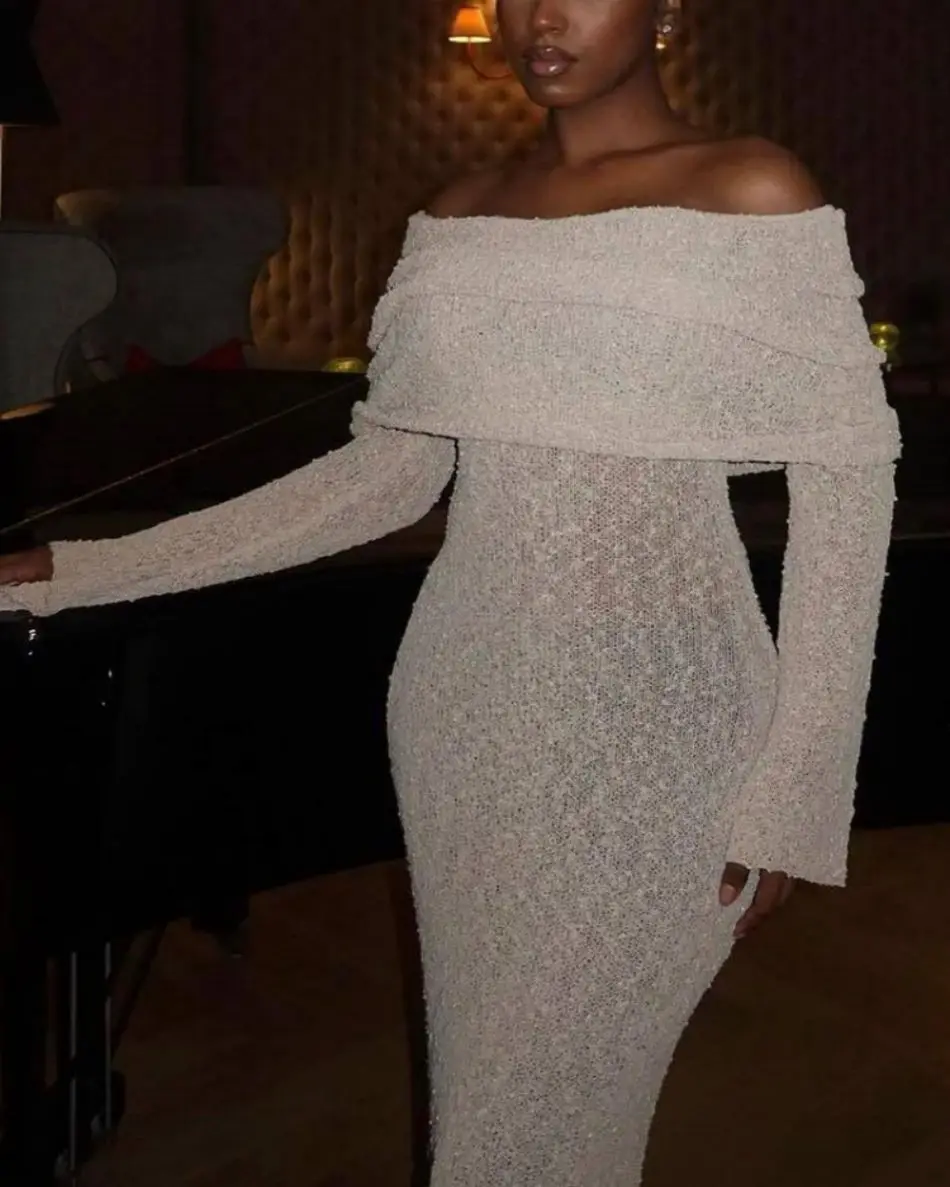 Sexy Off Shoulder Women Knitted Dress Vintage Long Sleeve White Dress for Women 2024 Spring Summer Elegant Long Dress