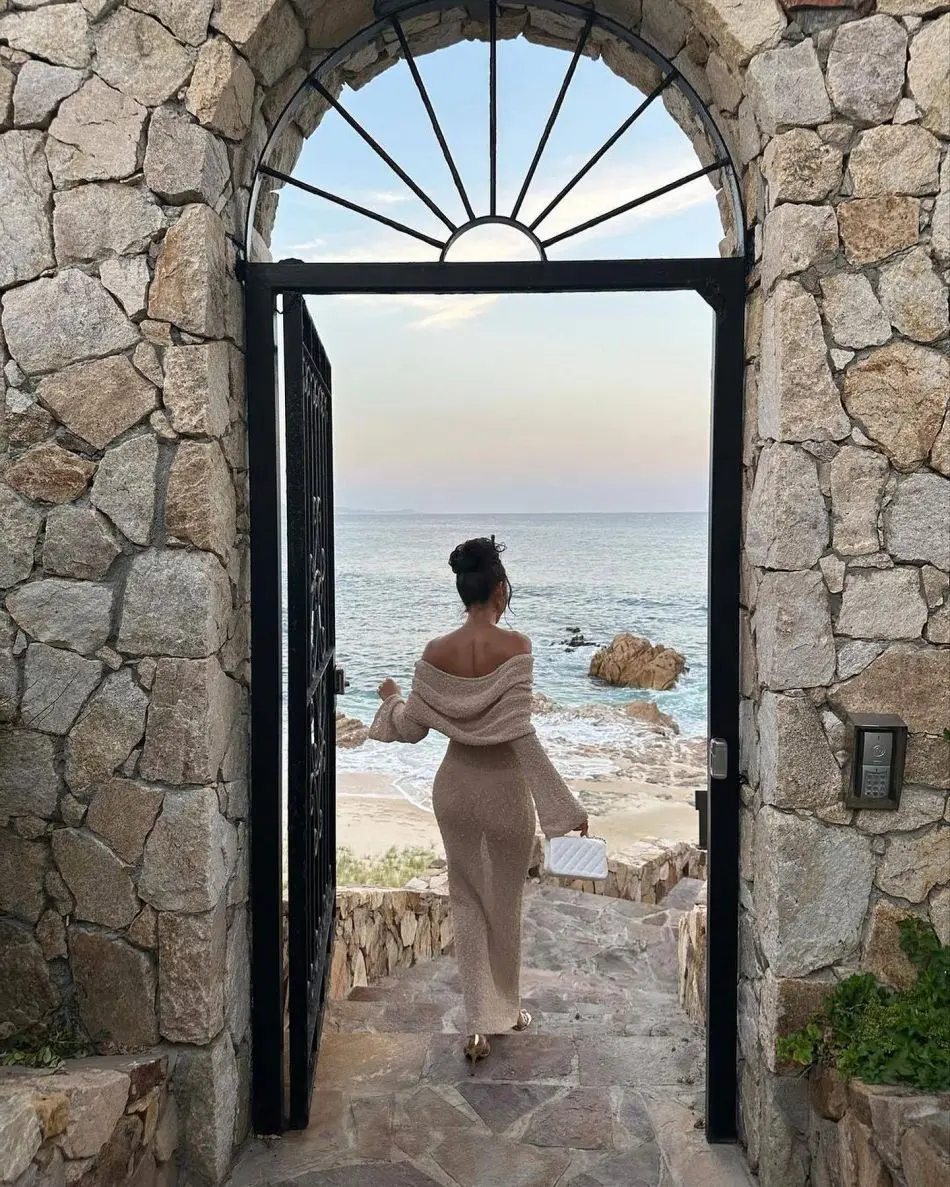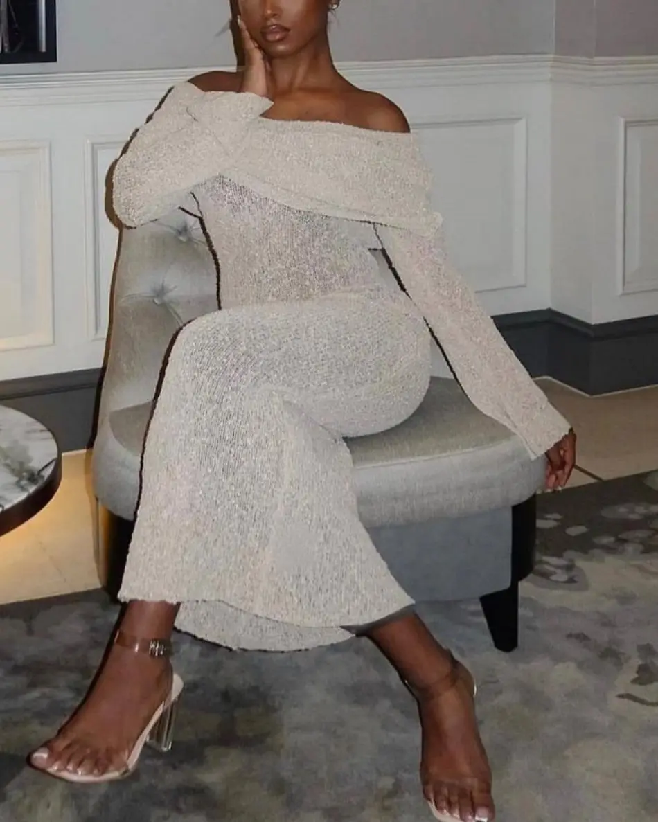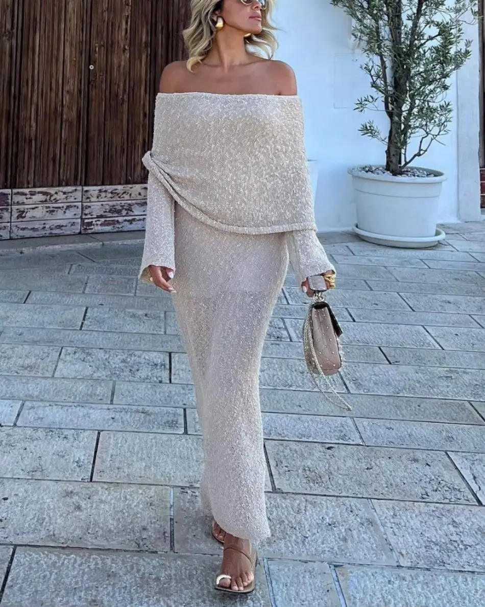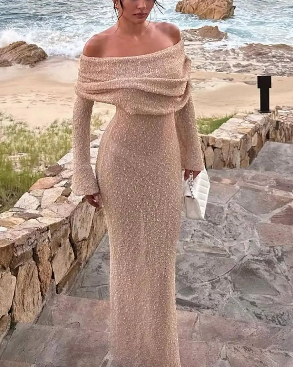Sexy Off Shoulder Women Knitted Dress Vintage Long Sleeve White Dress for Women 2024 Spring Summer Elegant Long Dress