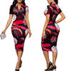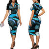 Sexy Slim Dress Summer Fashion Zipper V-Neck Short Sleeve Ladies Party Dresses Retro Printed Elegant Casual Female Dress Vestido
