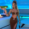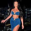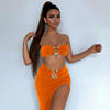 Sexy Slit Maxi Dress High Waist 2 Pcs Suits Velvet Strapless Crop Tube Top 2022 Summer Women Fashion Streetwear Vestidos 20164