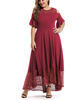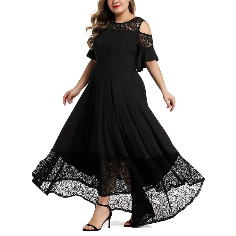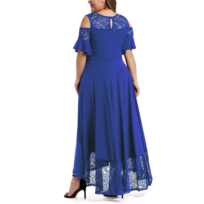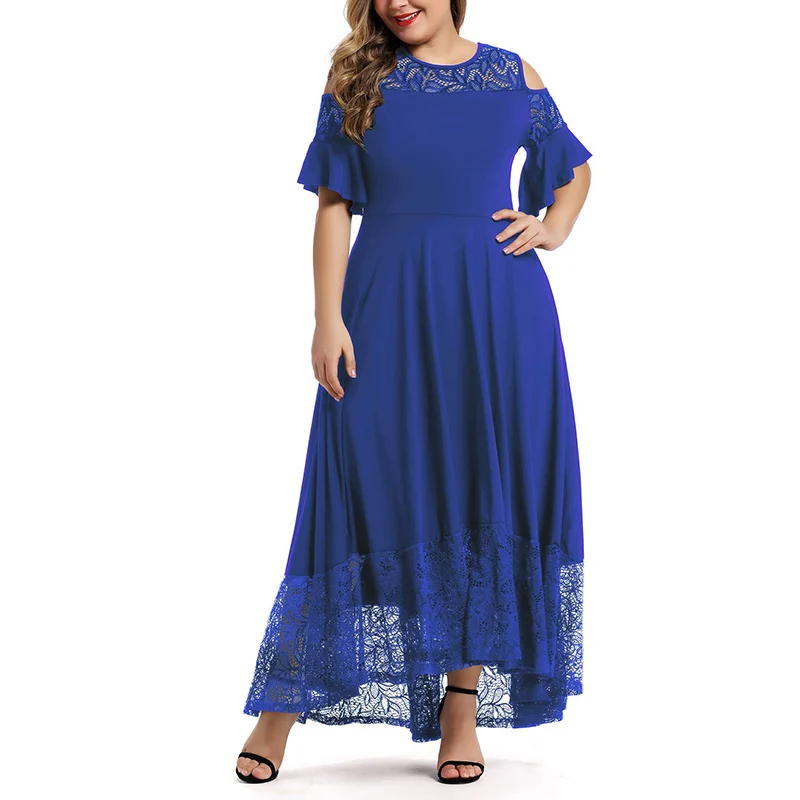 Sexy Solid Lace Patchwork Maxi Dress Women Summer Fashion O-neck Short Hollow Out Sleeve A-line Party Dress Elegant Lady Vestido