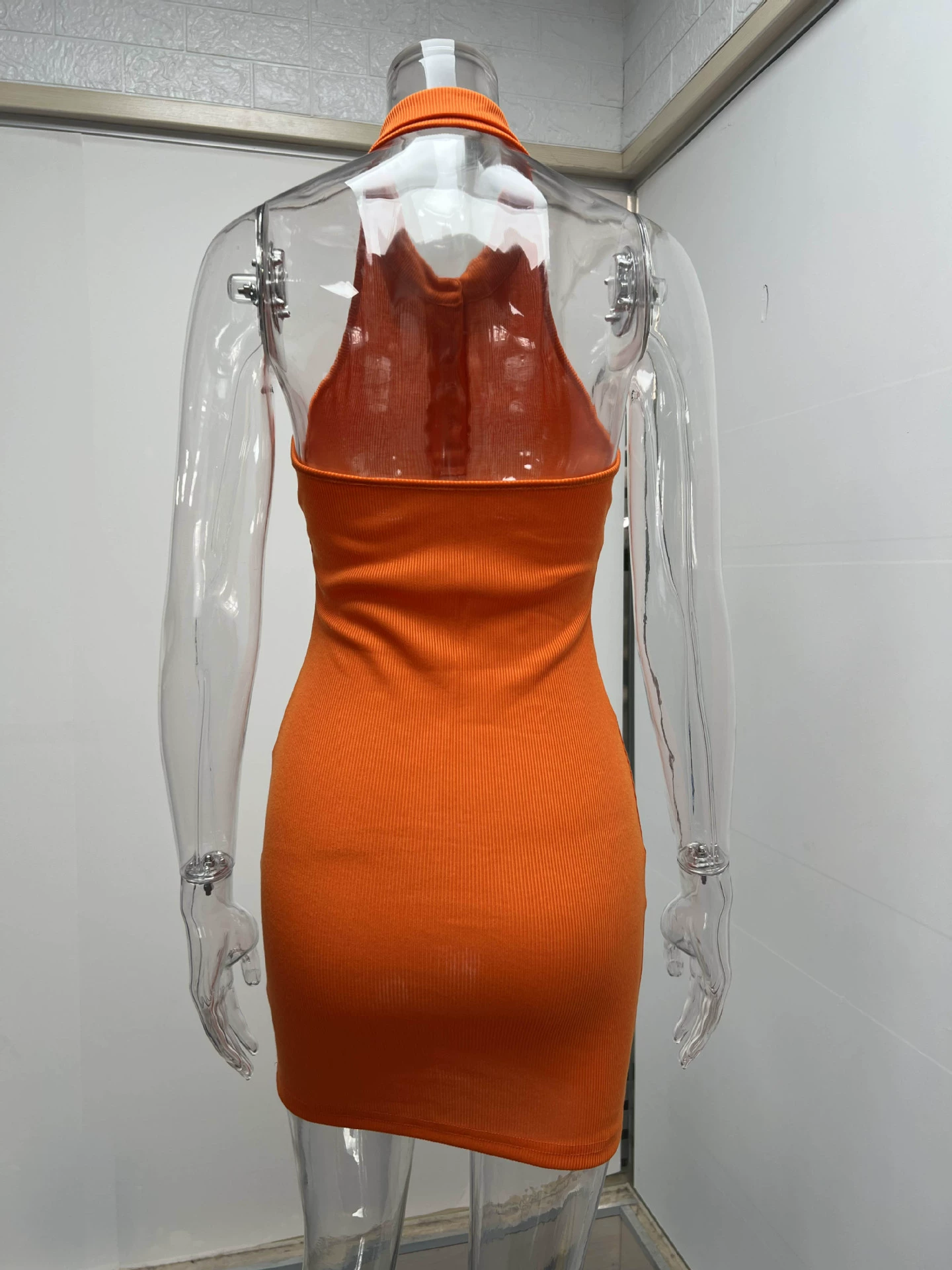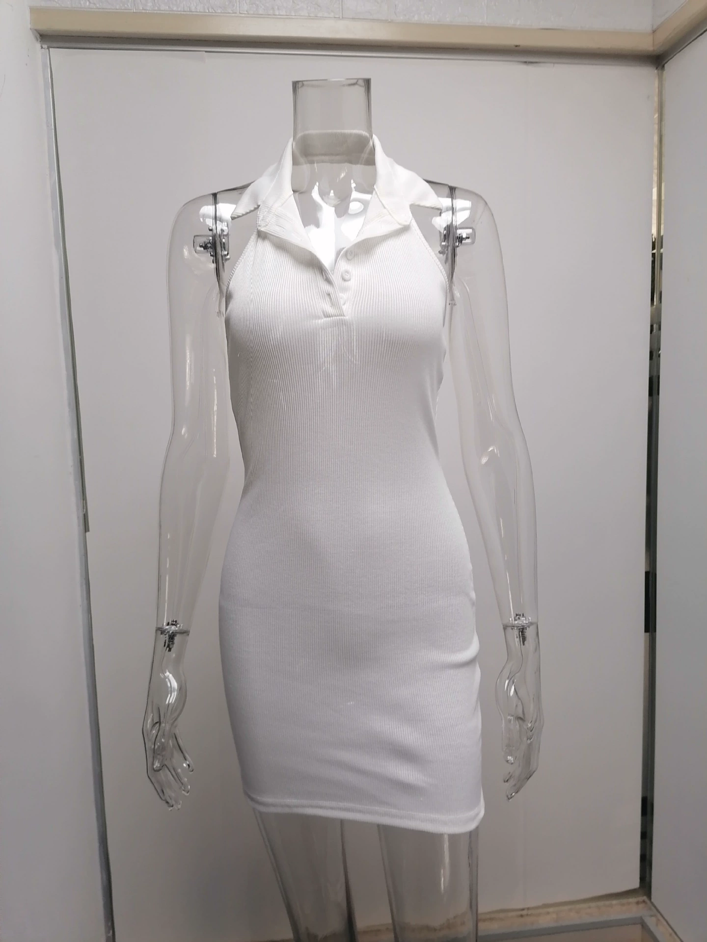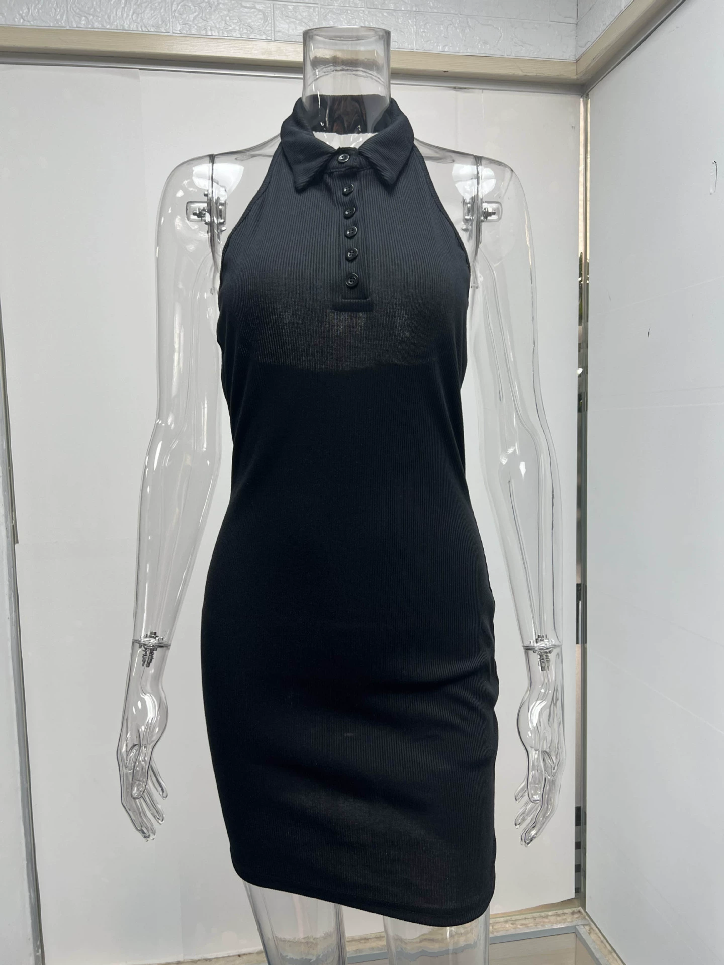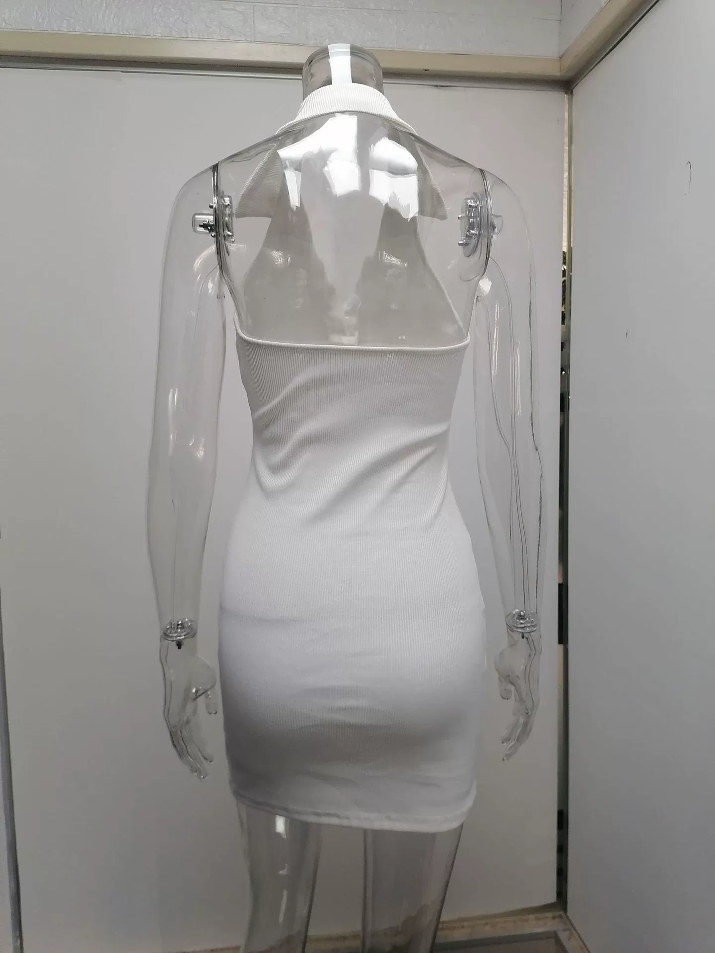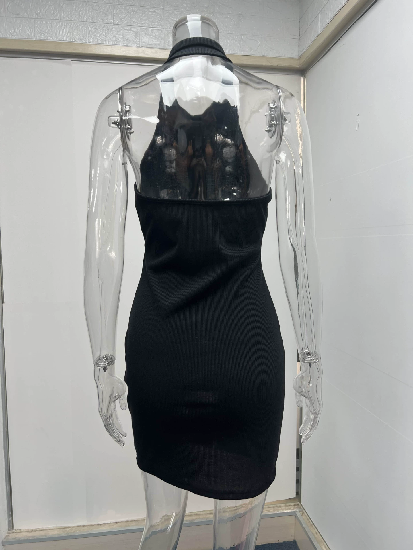 Sexy Stand Collar Halter Neck Ladies Mini Dress Open Back Tight Temperament One Step Skirt Short Skirt Party New Elegant dress