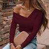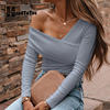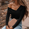 Sexy V Neck Off Shoulder Slim Blouse Tops Women Solid Long Sleeve Autumn Tops