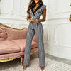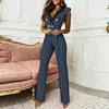 Sexy Women Jumpsuit Fashion Elegant Sleeveless Deep V Neck Button Blazers Playsuits Vintage Solid Casual Slim Long Pants Rompers