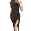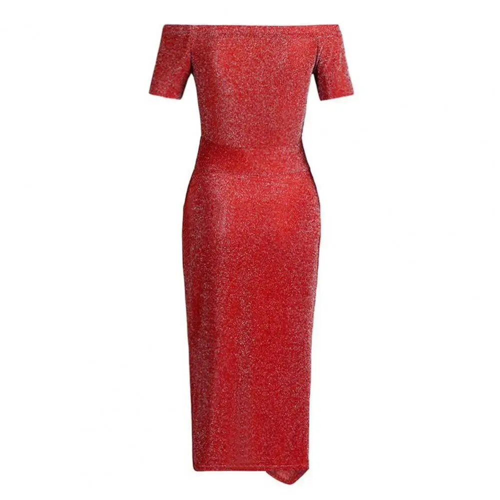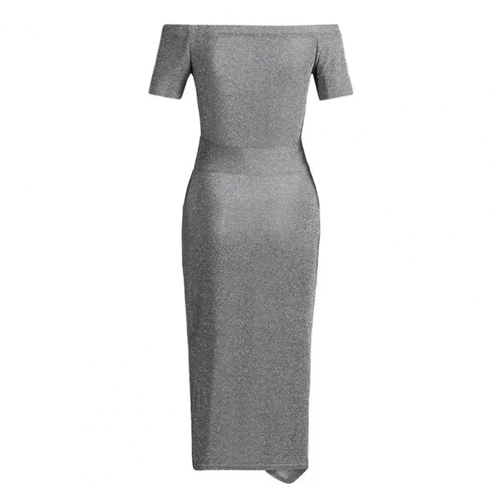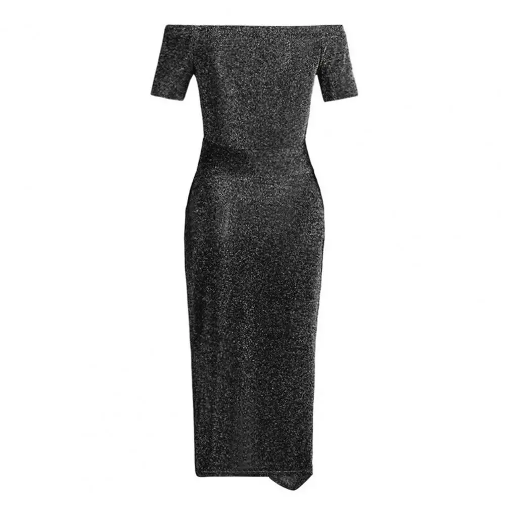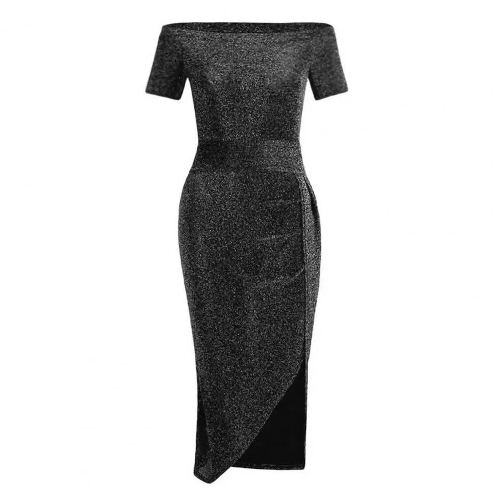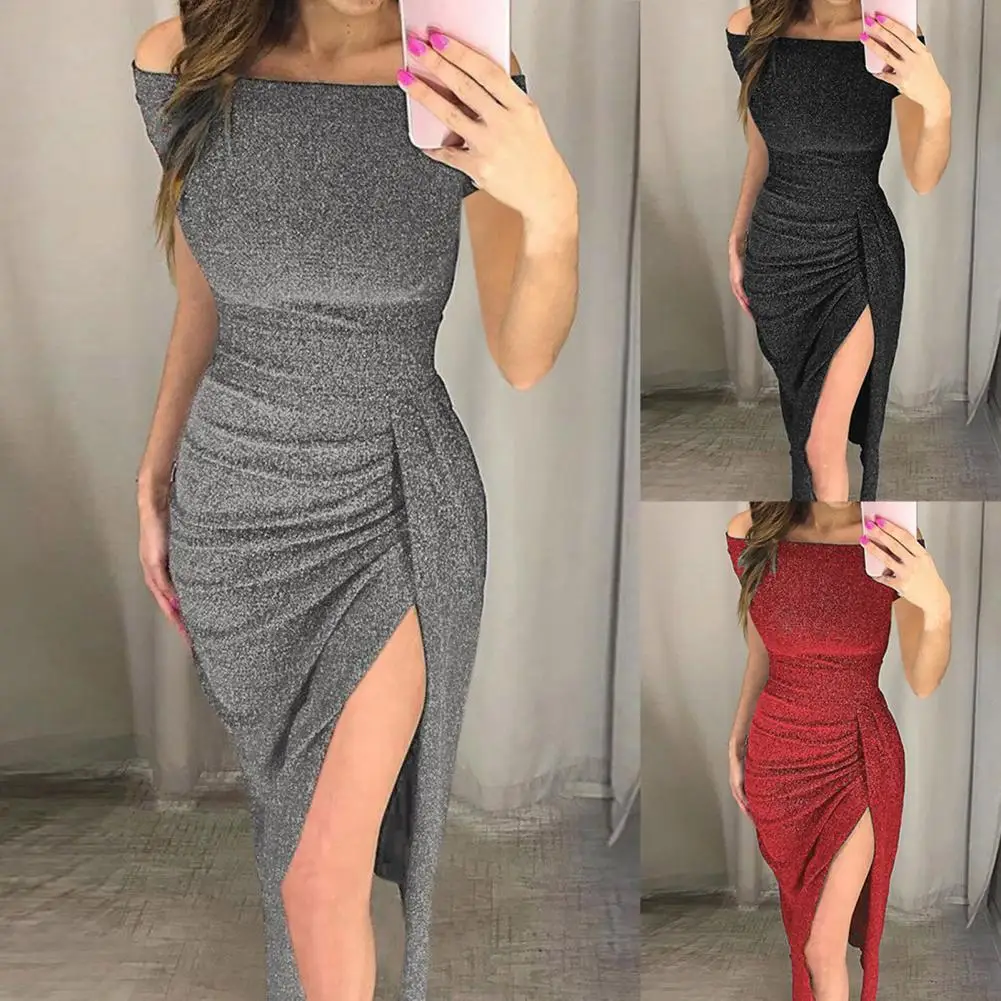 Sexy Women Slash Neck Shiny Bodycon Dress Summer Fashion Off Shoulder High Split Party Dresses Elegant Ladies Strapless Vestidos