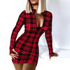 Sexy Women Slim Dress Autumn Fashion Casual Deep V Neck Long-sleeved Lady Mini Dresses Vintage Plaid Print Elegant Party Dresses