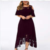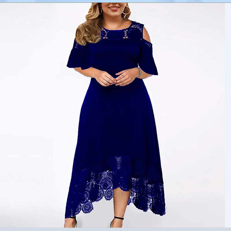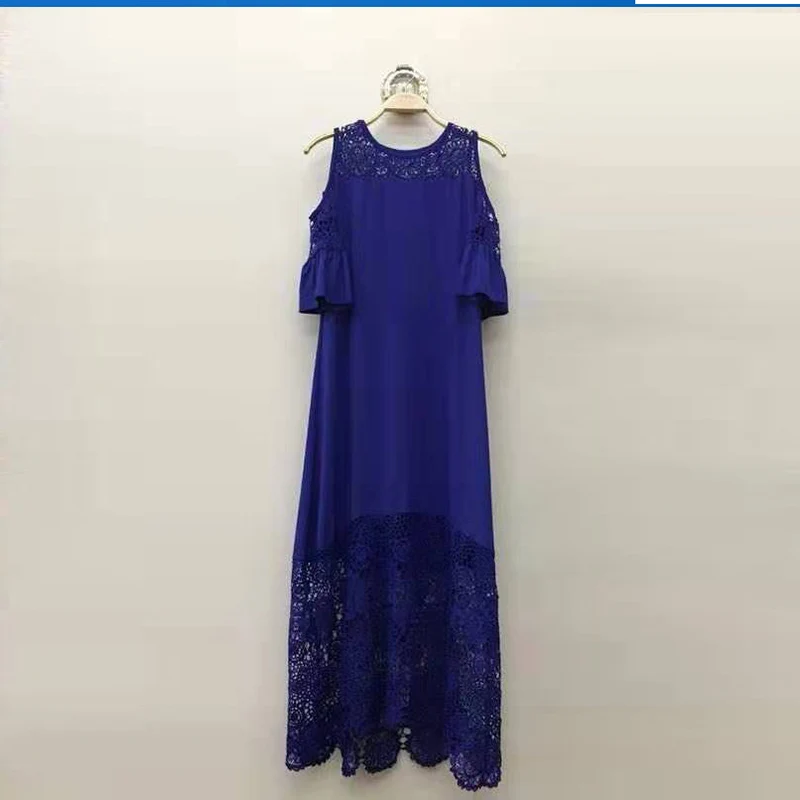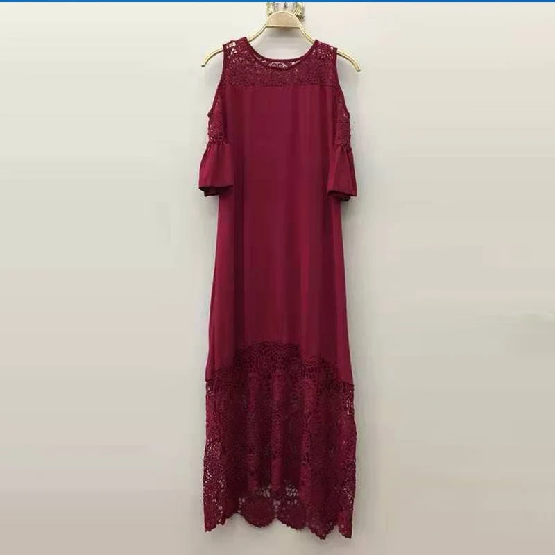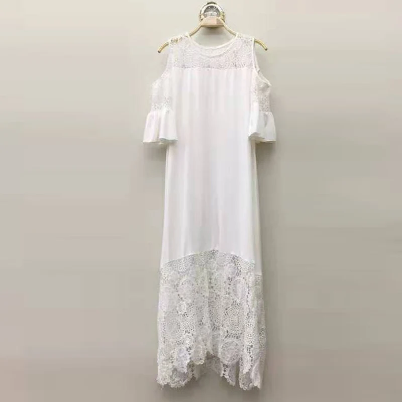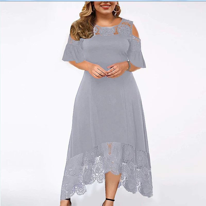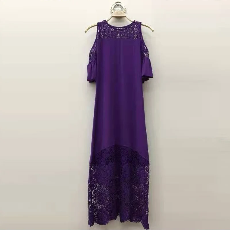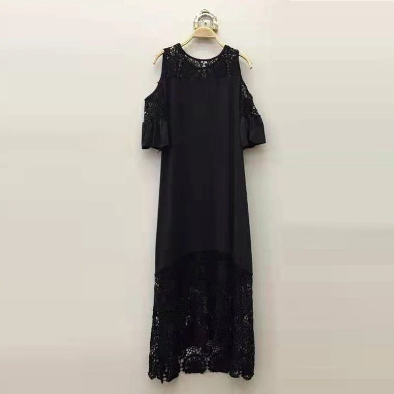 Sexy Women Solid Lace Patchwork Maxi Dress summer Fashion O-neck Short Hollow Out Sleeve A-line Party Dress Elegant Lady Vestido