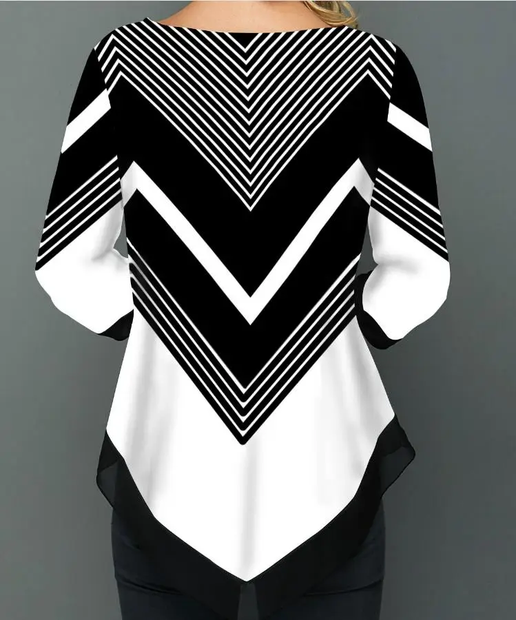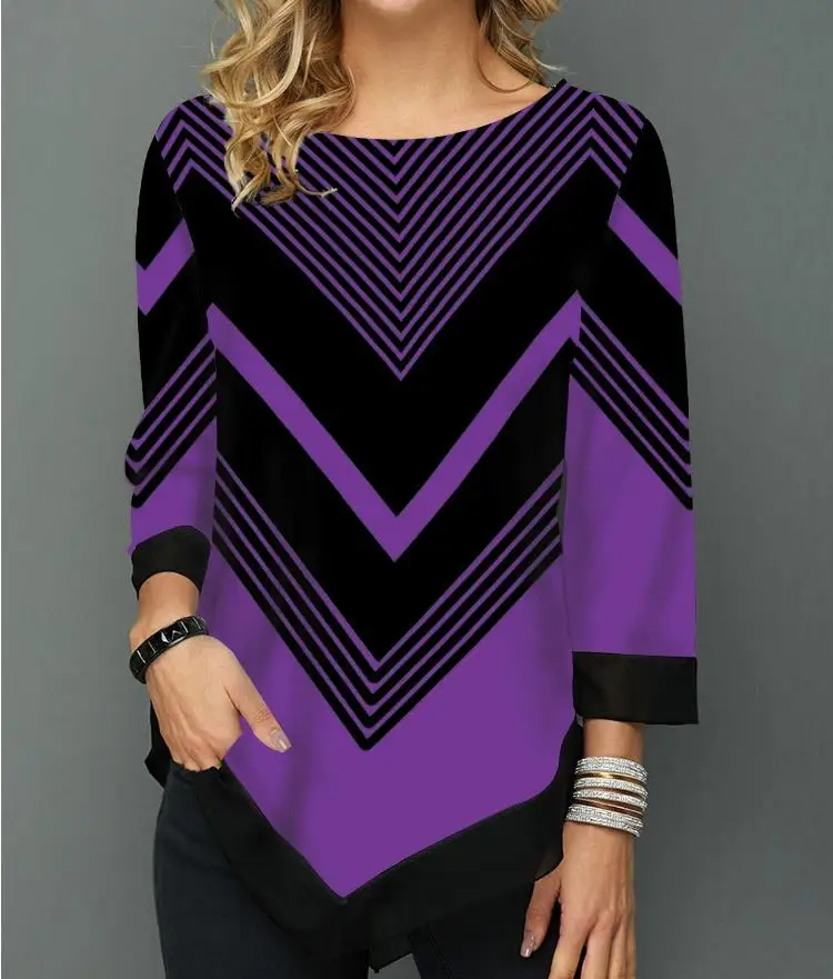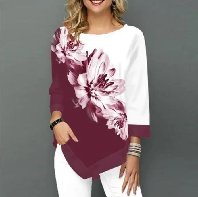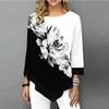 Shirt Blouse Women Spring SummerPrinting O-neck Blouse 3/4 Sleeve Casual Hem Irregularity Female fashion shirt Tops