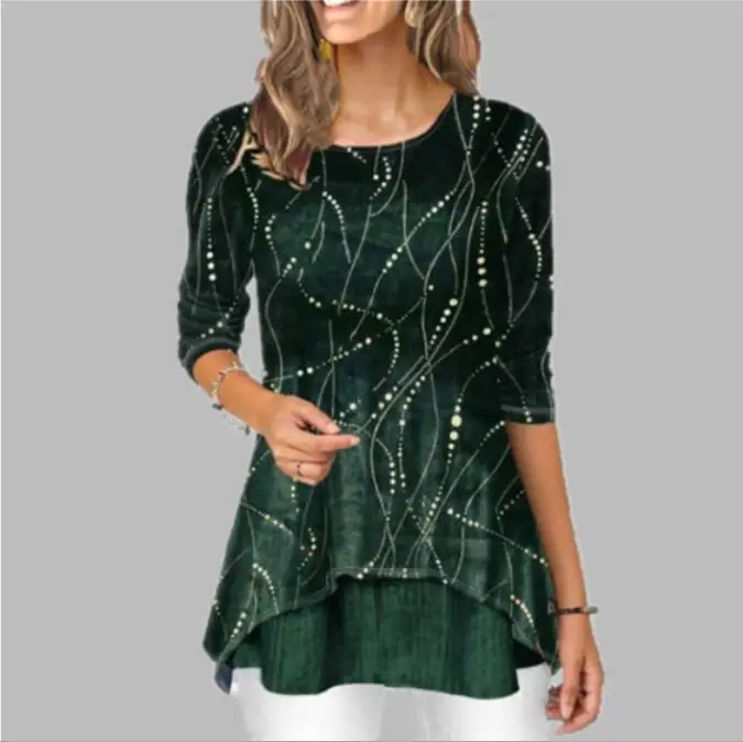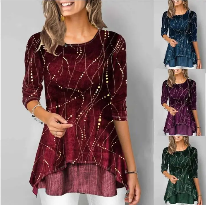 Shirt Women 2020 Spring Summer Blouse 3/4 Sleeve Casual Printing Irregularity Female fashion shirt Tops Plus Size StreetShirt