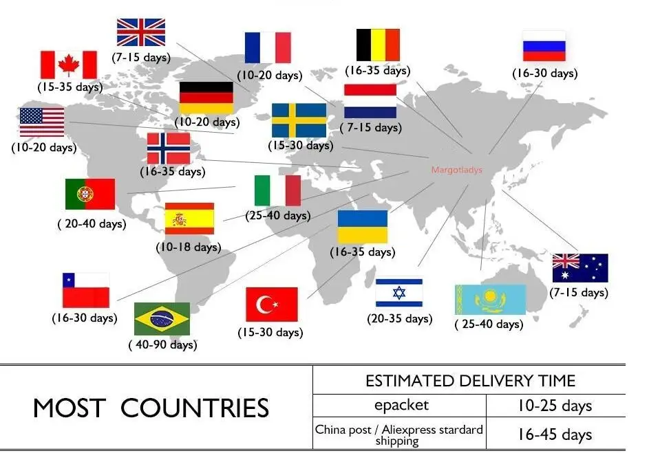 Packages from our warehouse in China will be shipped by ePacket or EMS depending on the weight and size of the product. Packages shipped from our US warehouse are shipped through USPS.