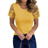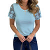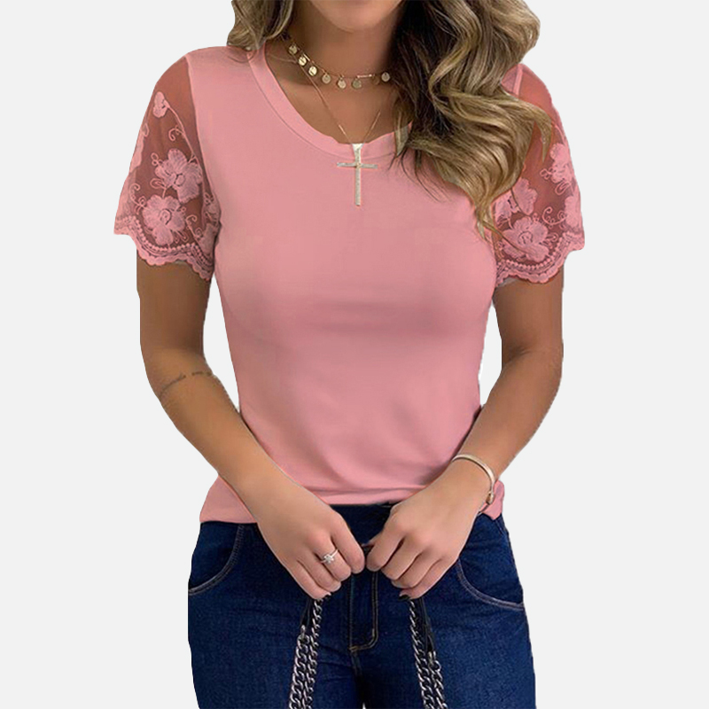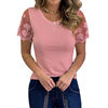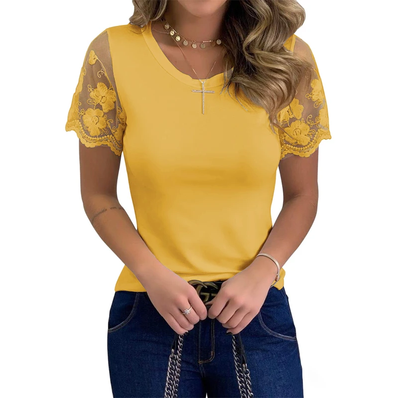 Shirts for Women Casual Summer O Neck Short Sleeve Tops Lace Patchwork Design Slim Fit Pullovers Top 2021 Blusa Mujer