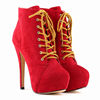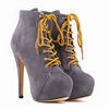 Size 35-42 Western Style Women Lace-Up Casual Motorcycle Boots Round Toe Flock Platform Women’s Boots Fashion High Heels Boots