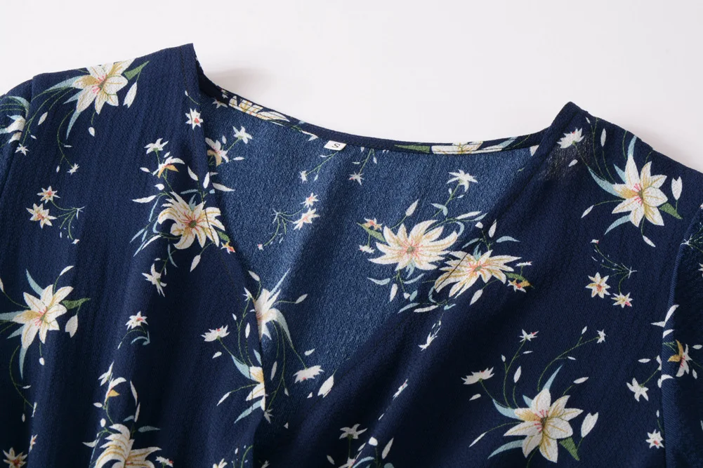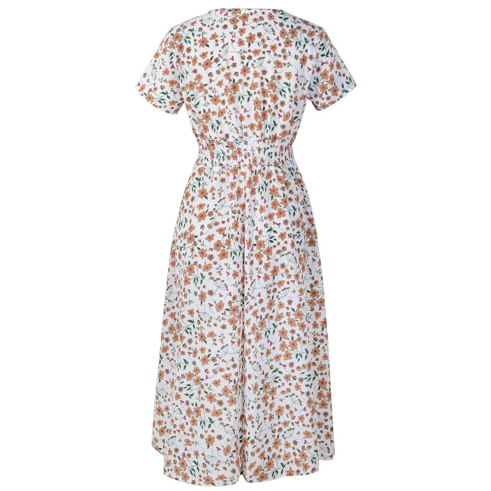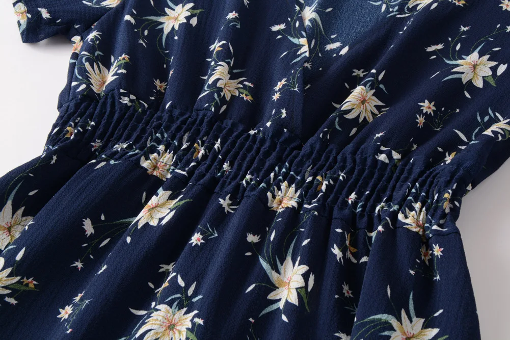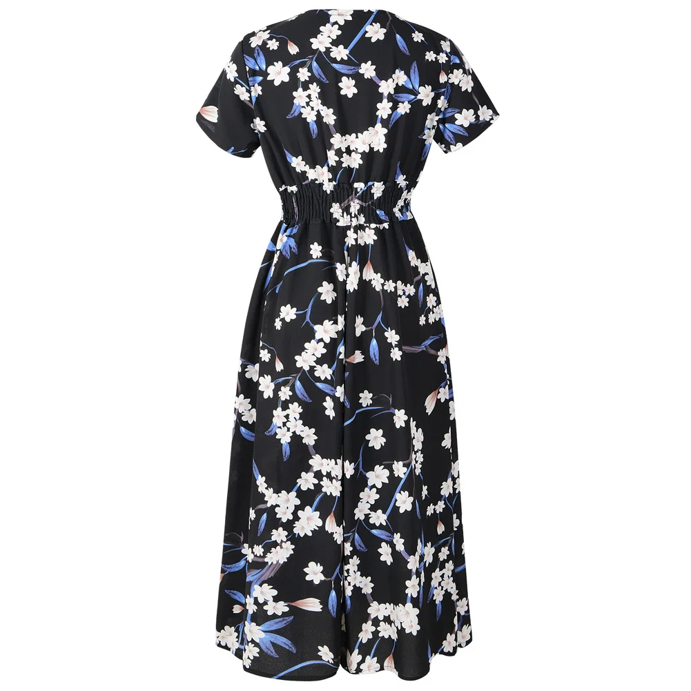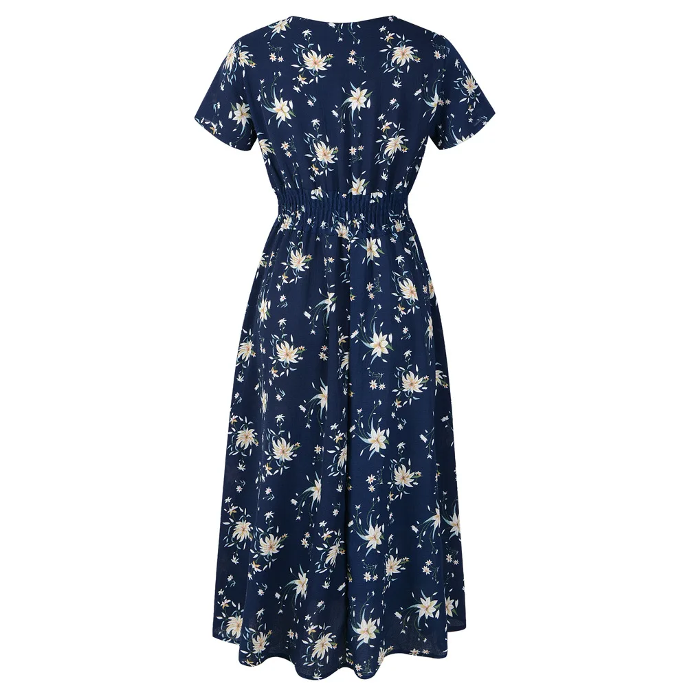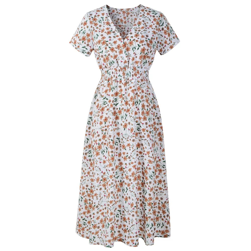 Size Casual Elastic Waist Boho Dress Women Beach Summer Dresses Floral Print Vintage Chiffon Midi Dress Vestido de Festa