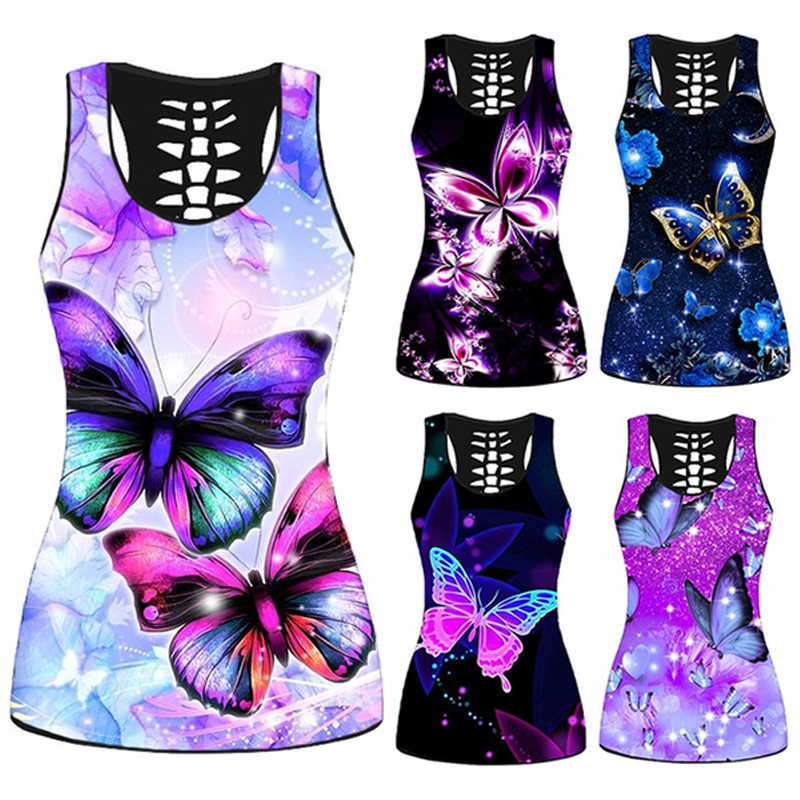 Sleeveless Top Women Butterfly 3D Print Tank Tops Ladies Casual Gym Tank Top Women Summer Vest Shirts Sexy Y2k Tops