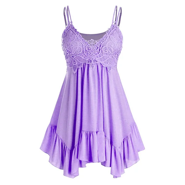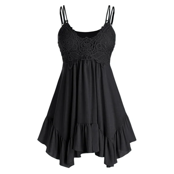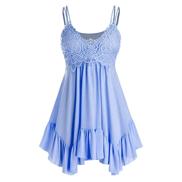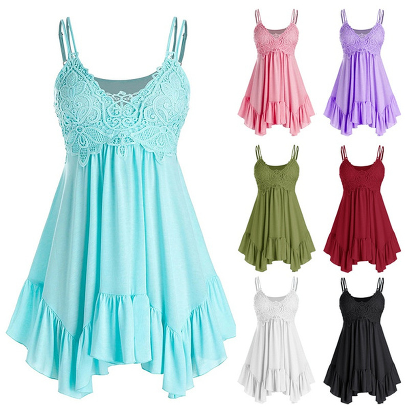 Sleeveless Top Women Fashion Vest Solid Color Casual Sleeveless Vest Slim Tank Tops Flounce Lace Guipure Tank Top Plus Size
