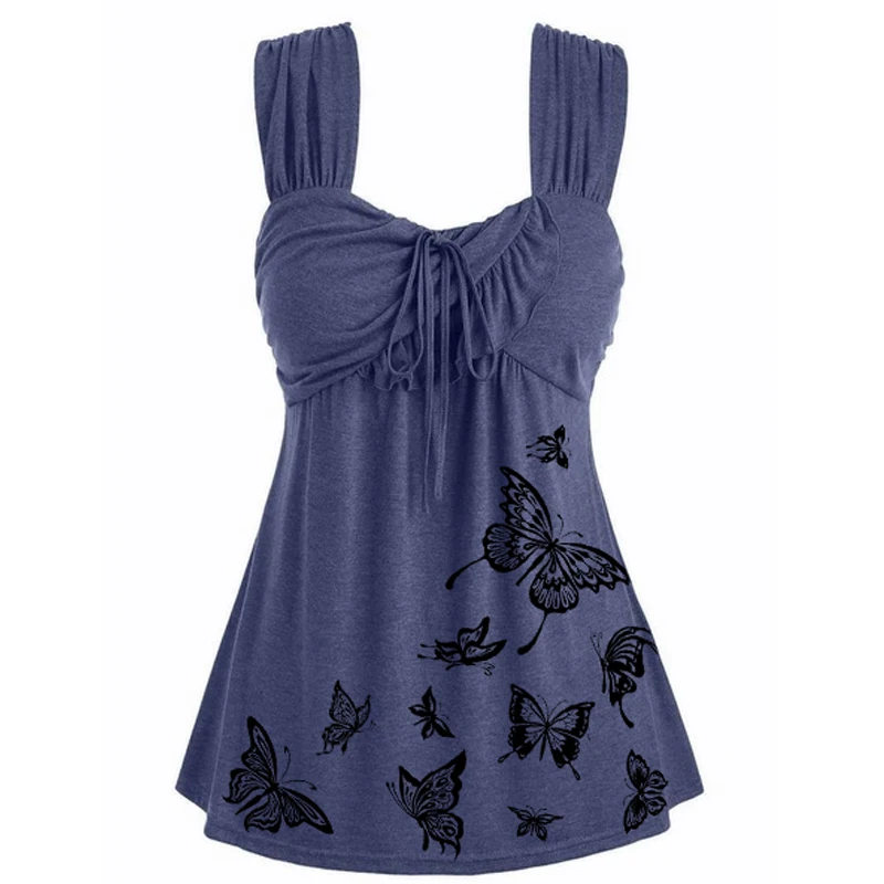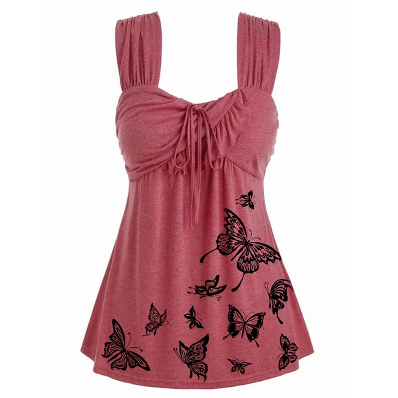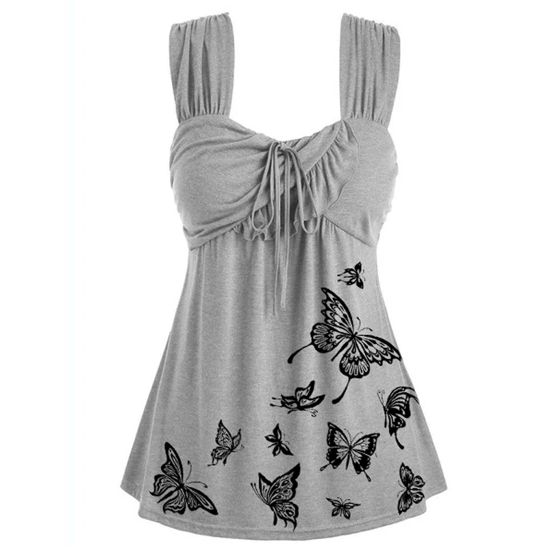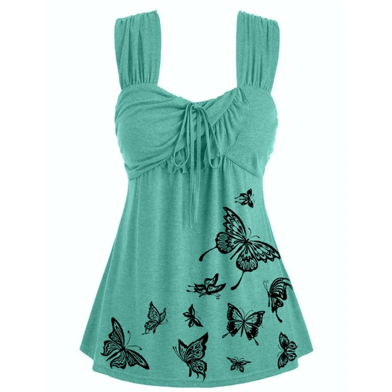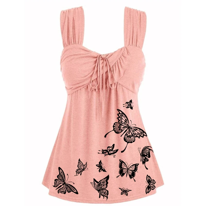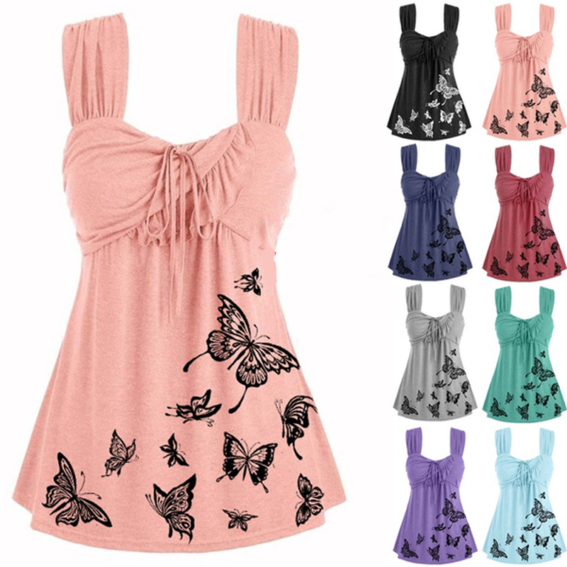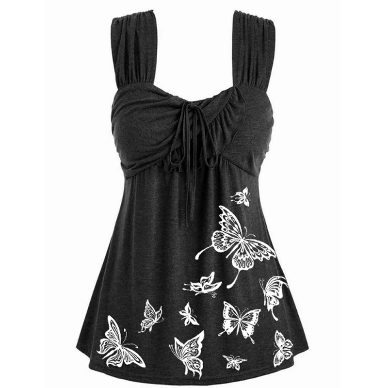 Sleeveless Top Women Fashion Vest Summer Butterfly Print Casual Sleeveless Slim Vest Solid Color Swing Cami Tops Plus Size