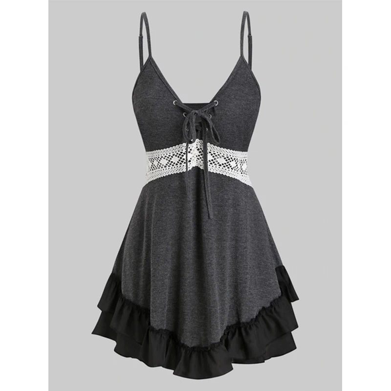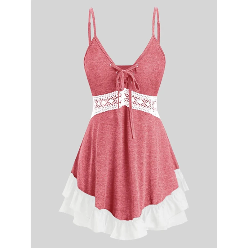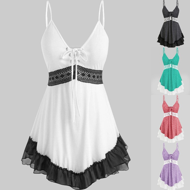 Sleeveless Top Women Paisley Print Empire Waist Asymmetric Tank Top Summer Sexy Lace Italian Lace-up Crop Top Plus Size
