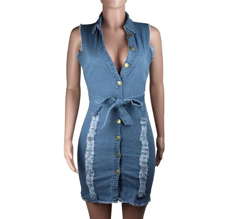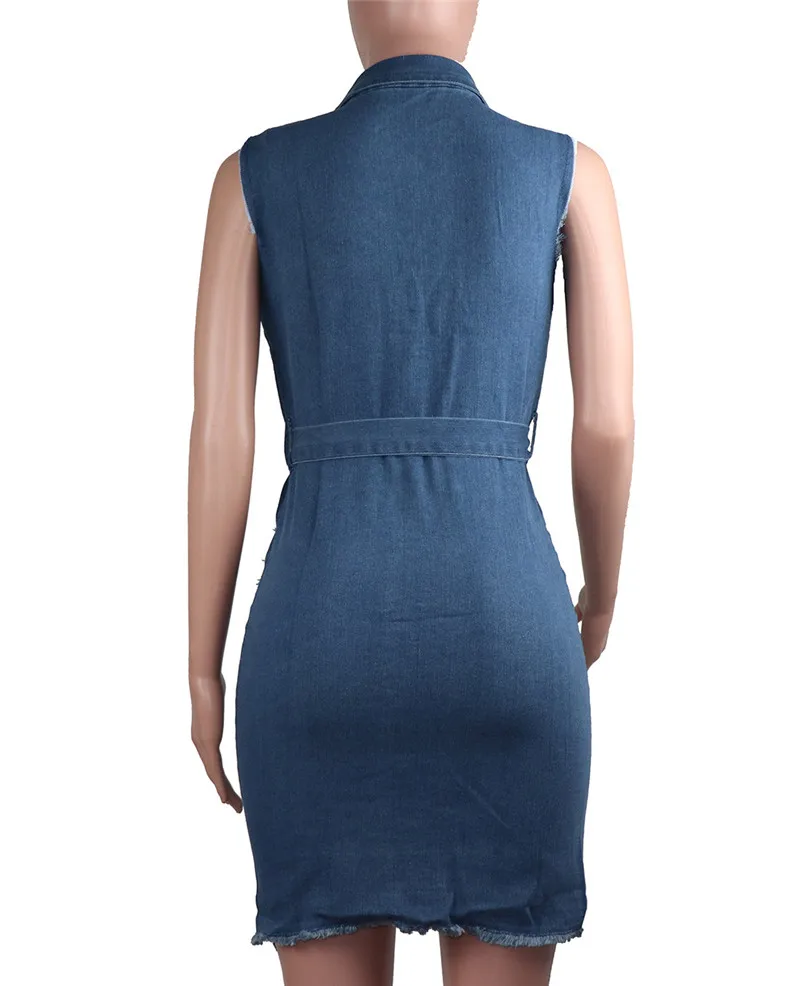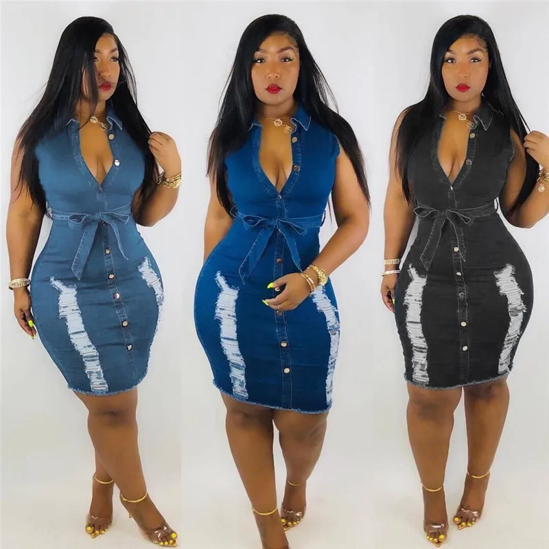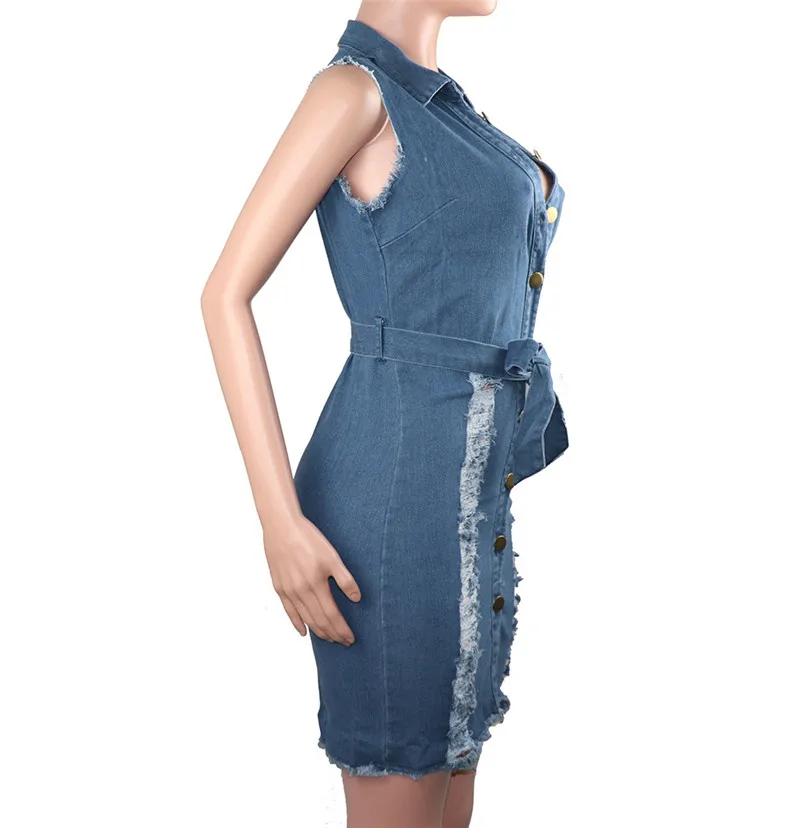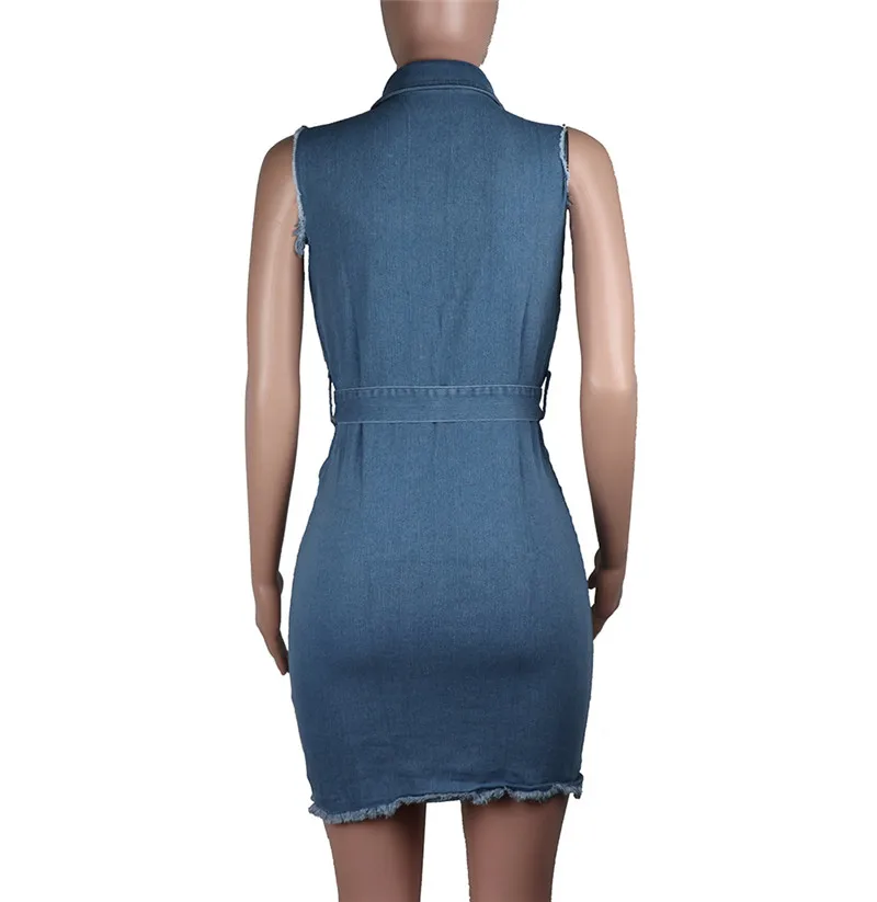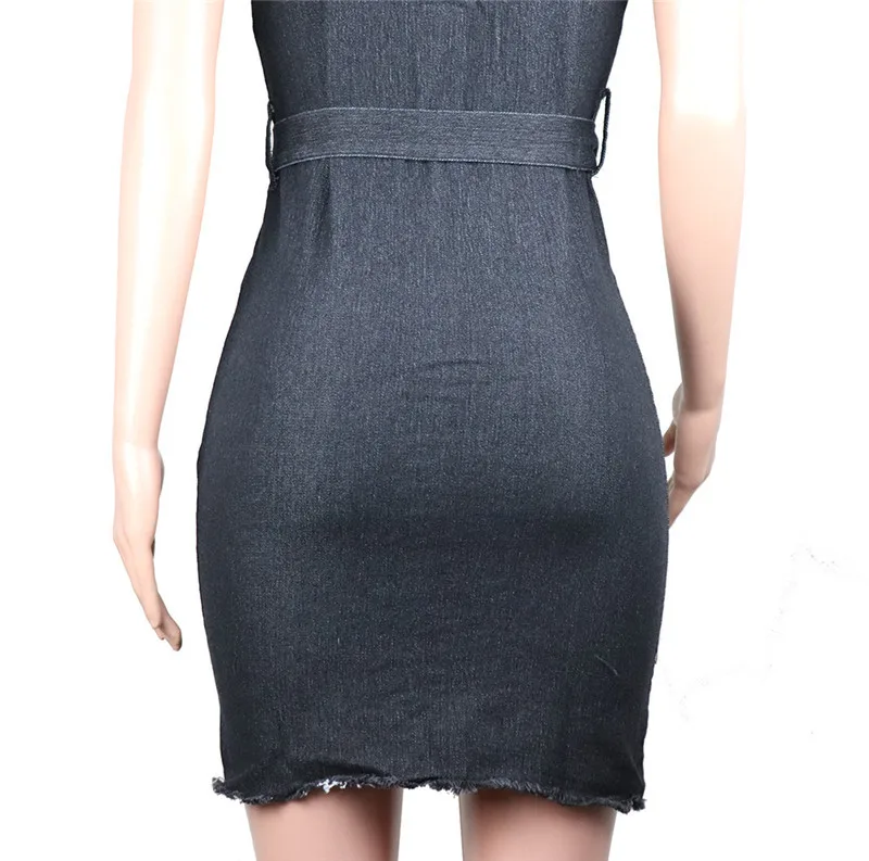 Sleeveless Turndown Collar Bodycon Denim Dress Sexy Plus Size Jeans Dress Robe Jeans Summer Bandage Dresses Women Vestidos Ddlg