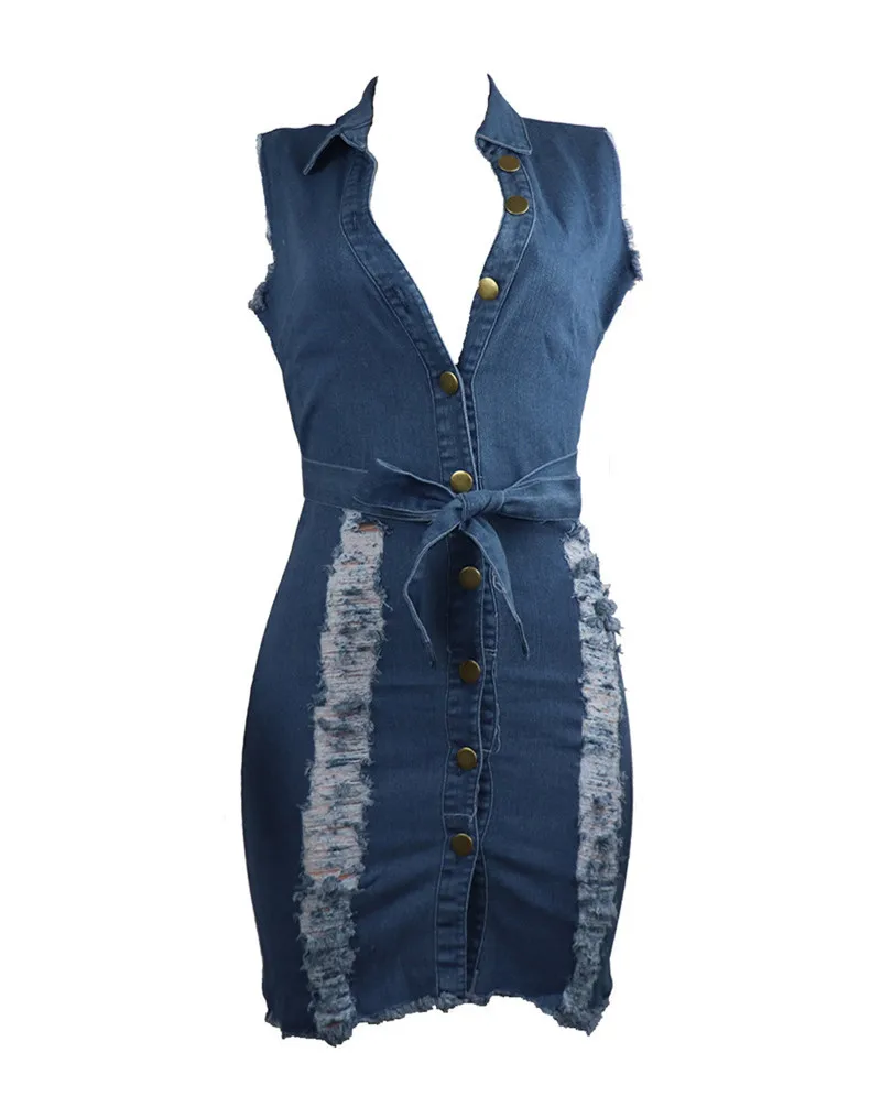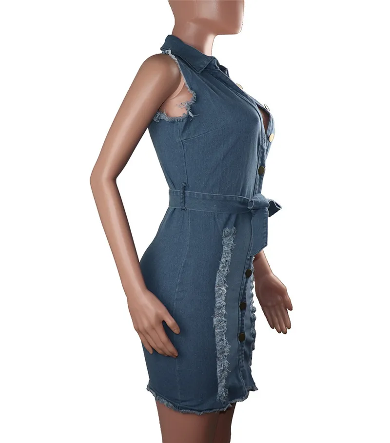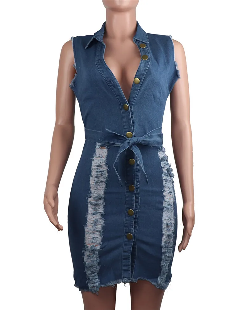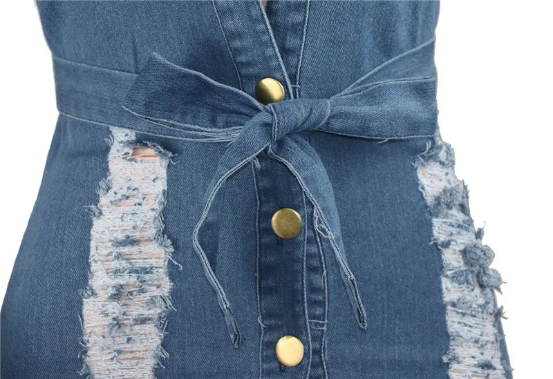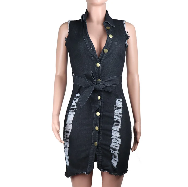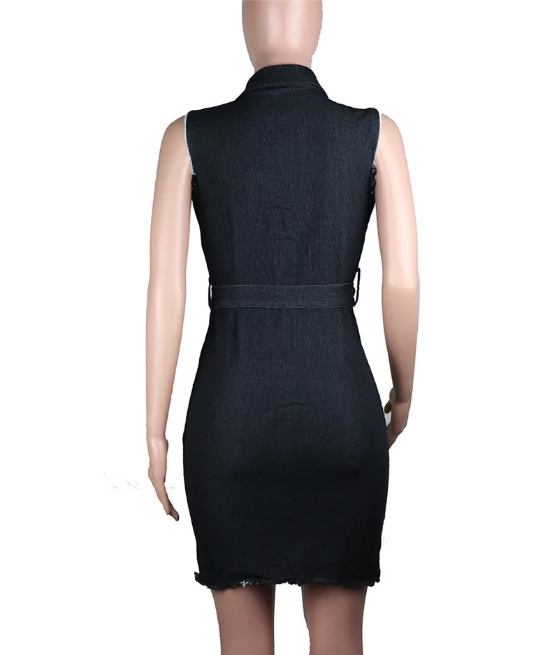 Sleeveless Turndown Collar Bodycon Denim Dress Sexy Plus Size Jeans Dress Robe Jeans Summer Bandage Dresses Women Vestidos Ddlg