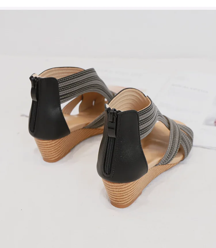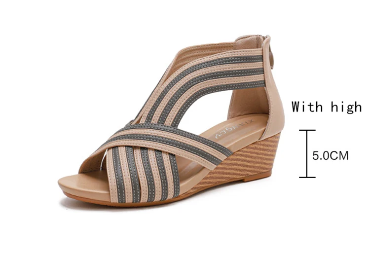 Slope heel casual leather stitching sandals women summer fashion women's ladies fish mouth Roman sandals women