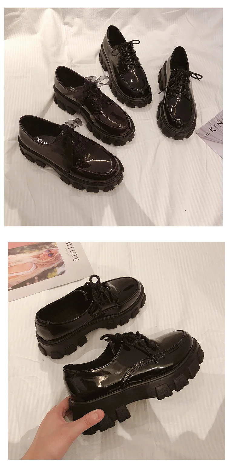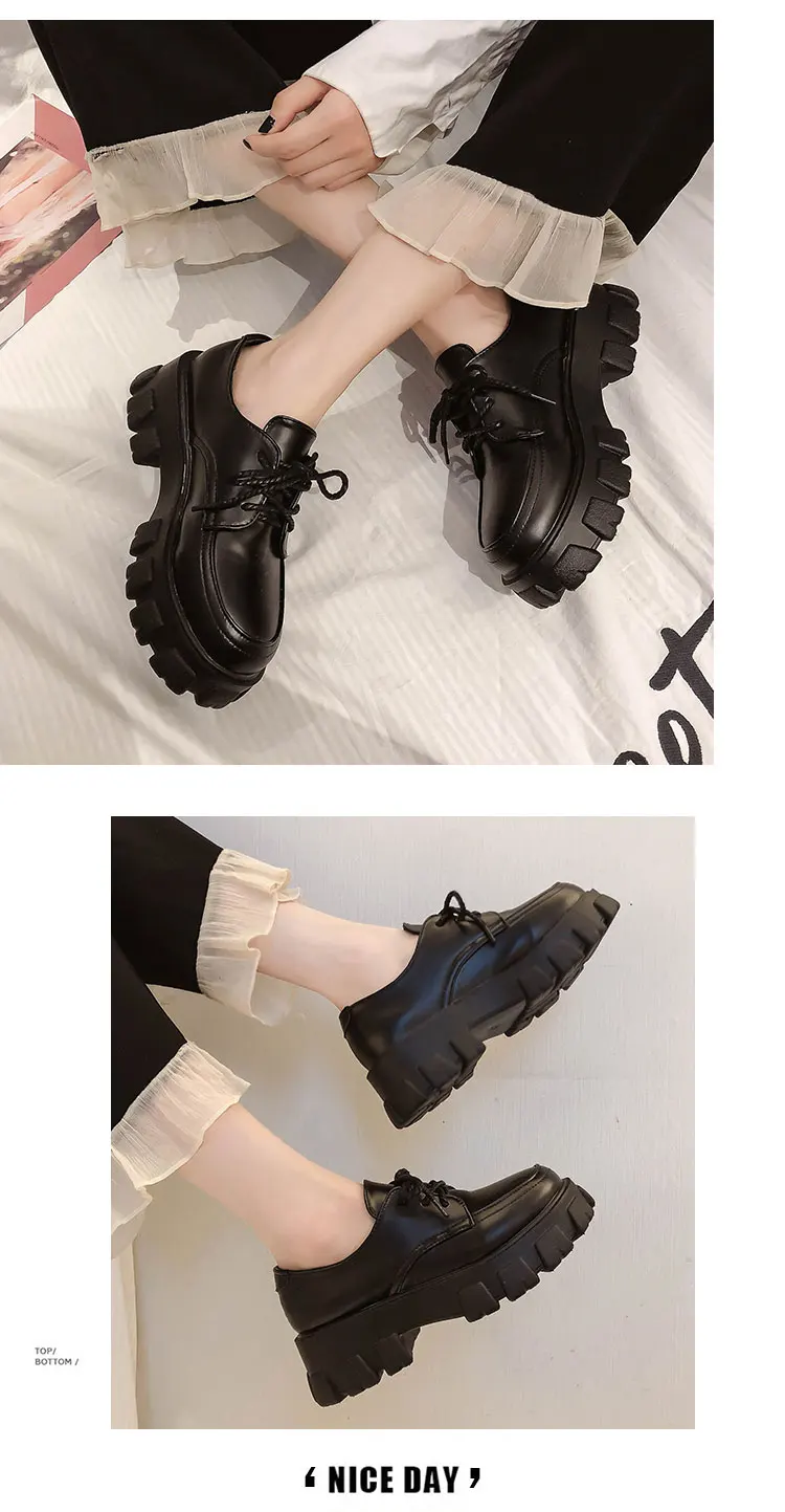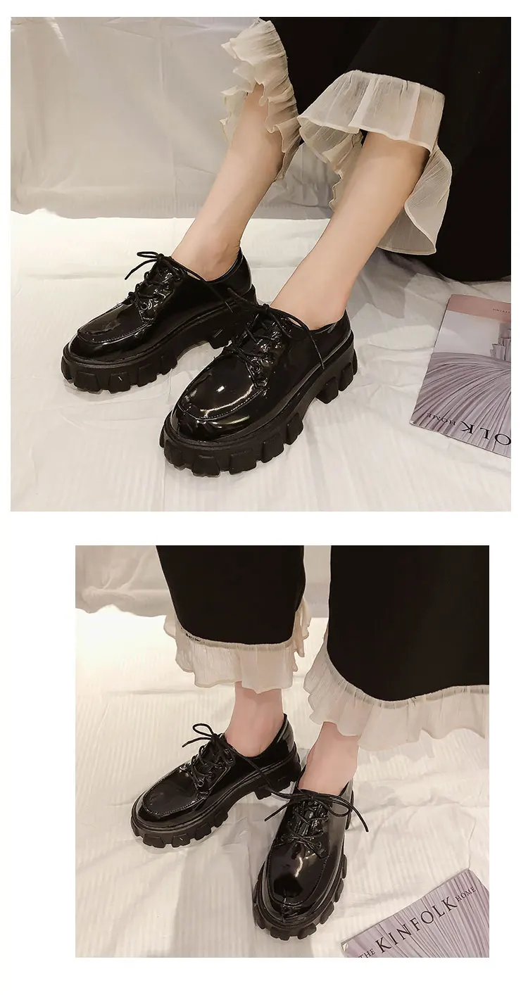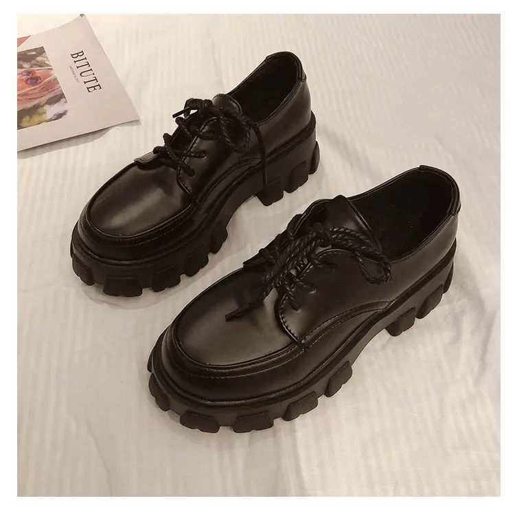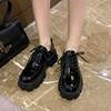 Small Leather Shoes Female 2020 New Wild Thick High Heel Retro Black Work Shoes Spring and Autumn Sponge Cake Low Single Shoes