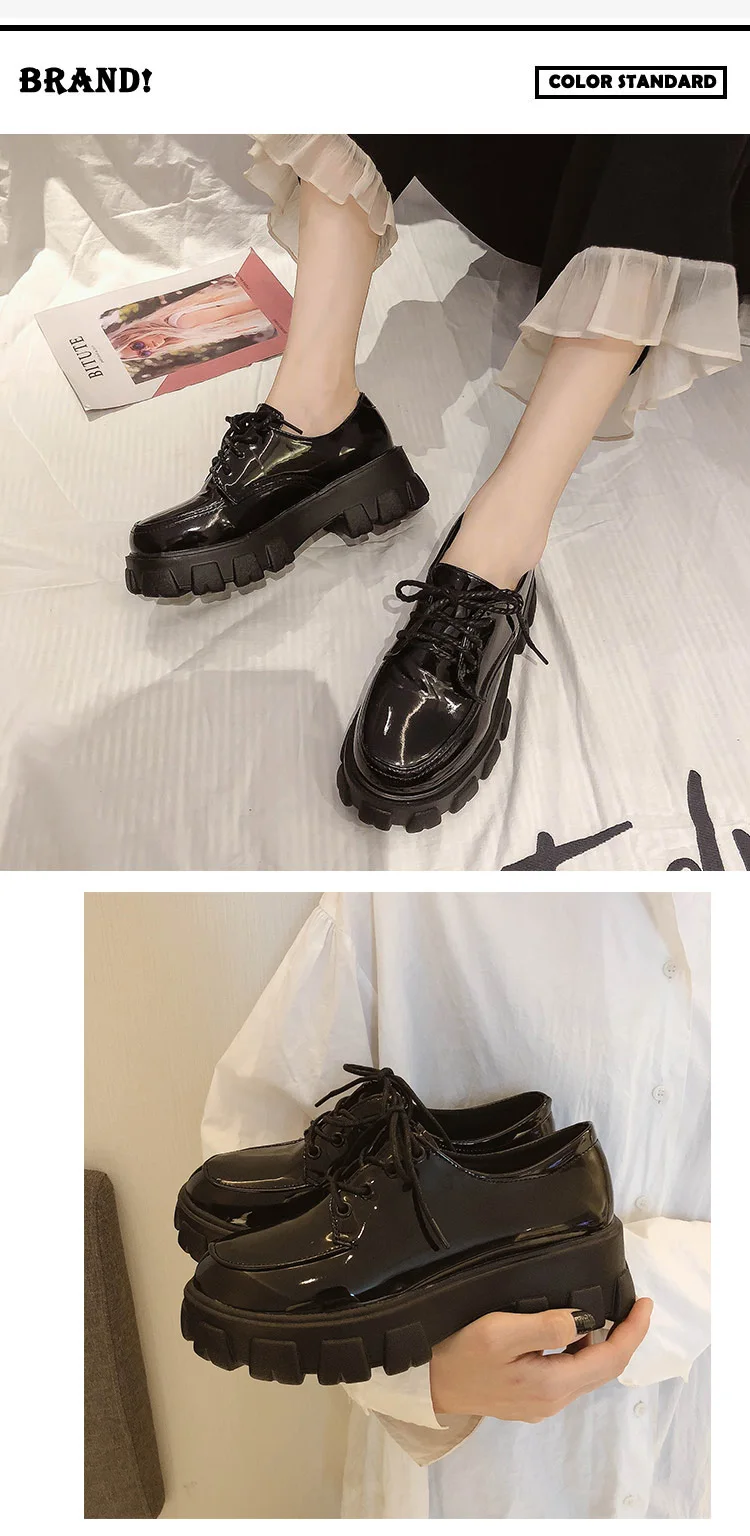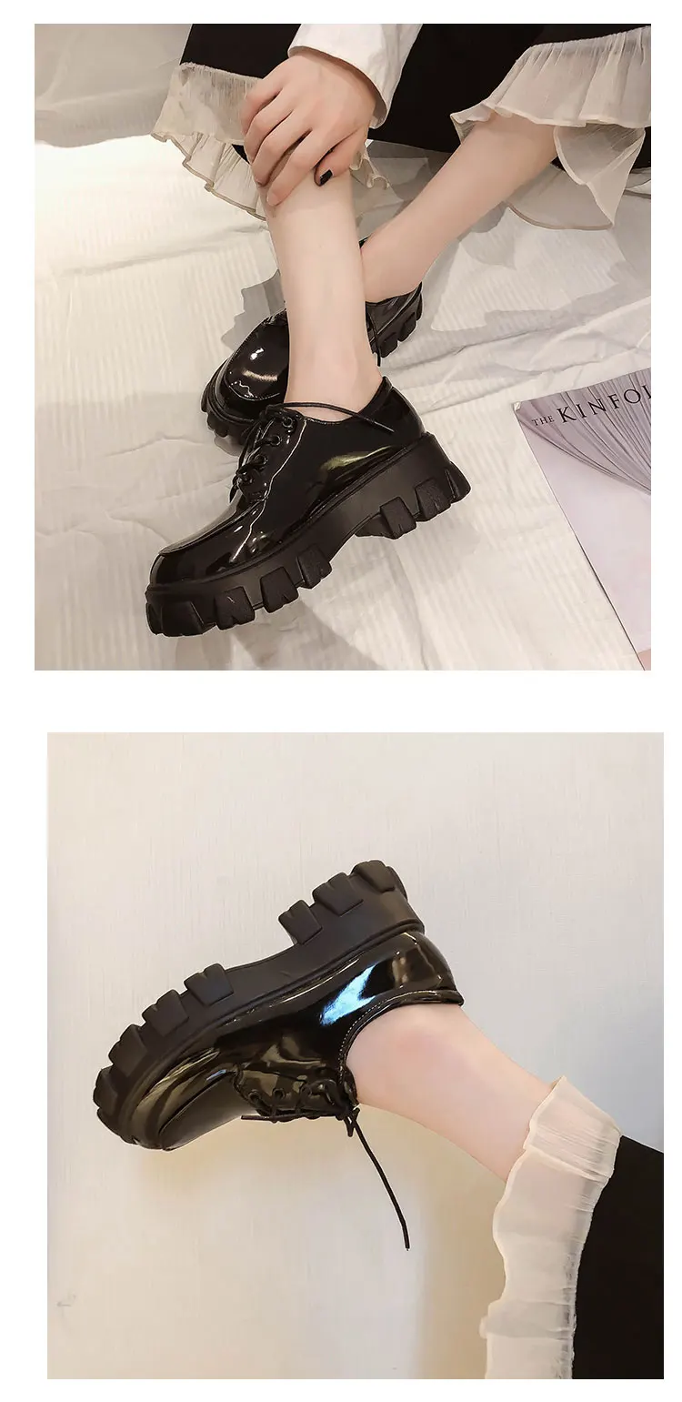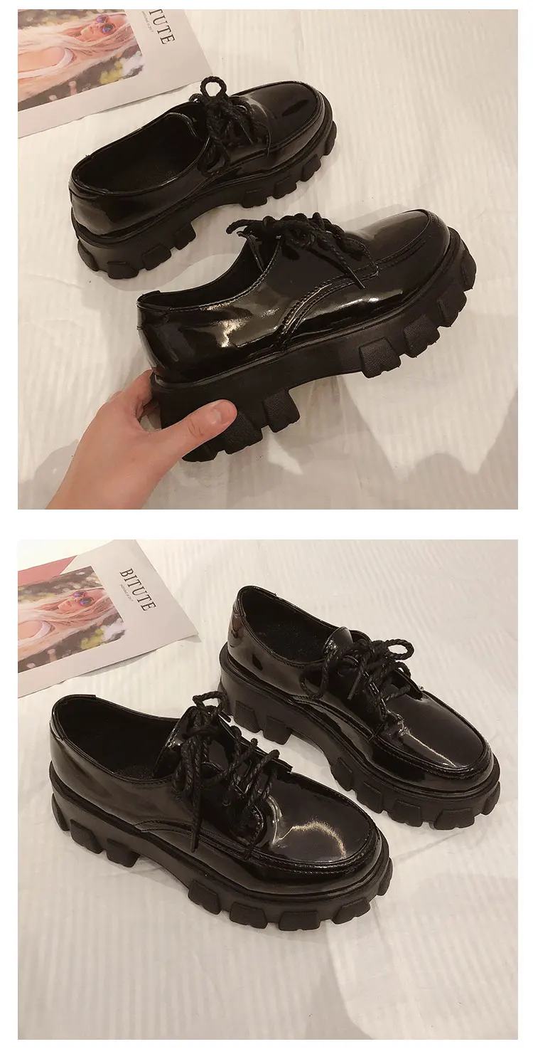 Small Leather Shoes Female 2020 New Wild Thick High Heel Retro Black Work Shoes Spring and Autumn Sponge Cake Low Single Shoes
