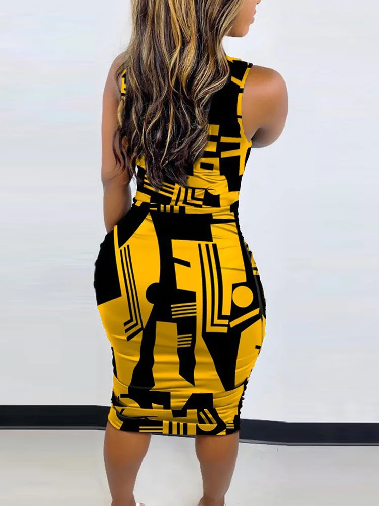 Snakeskin Print Sleeveless Ruched Bodycon Dress