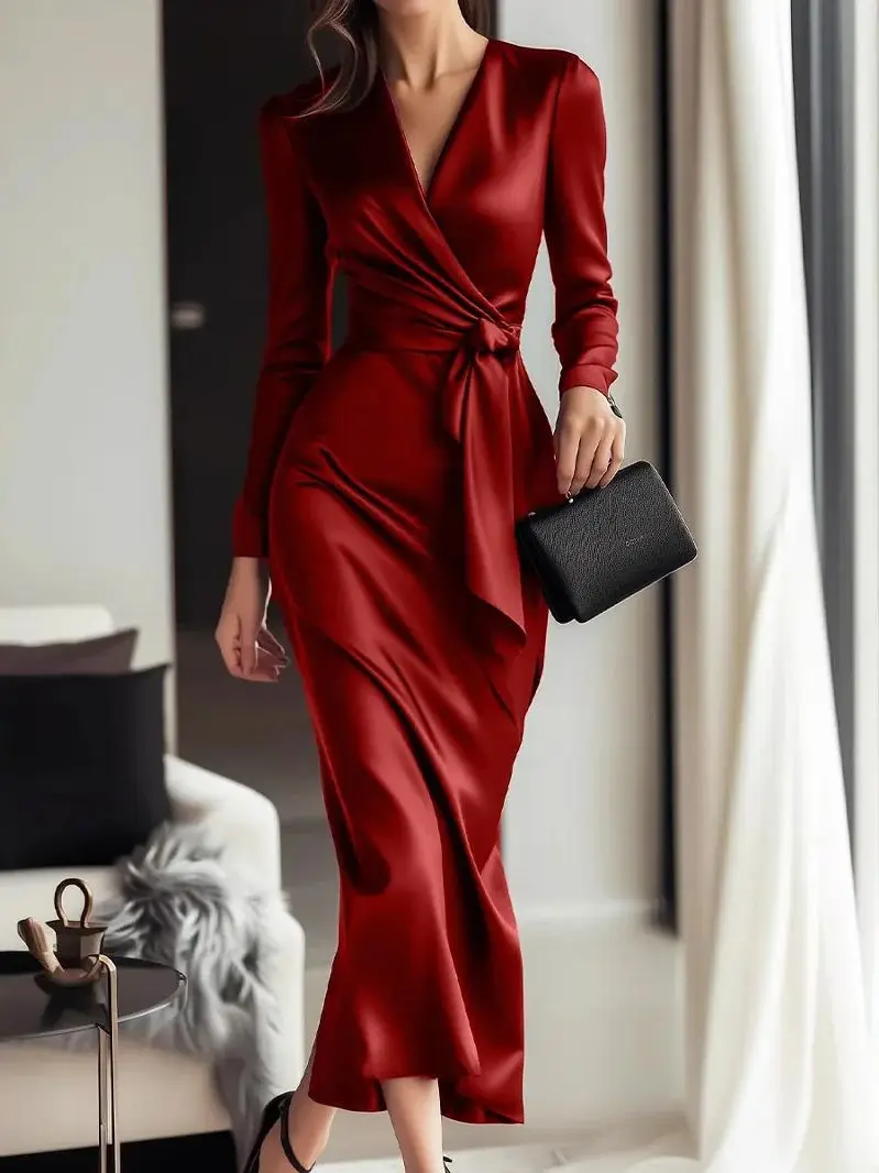 Socialite Styles Banquet Dresses for Women Spring Fall Sexy V-neck Wedding Guest Dresses Elegant Birthday Party Maxi Dresses