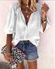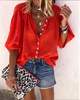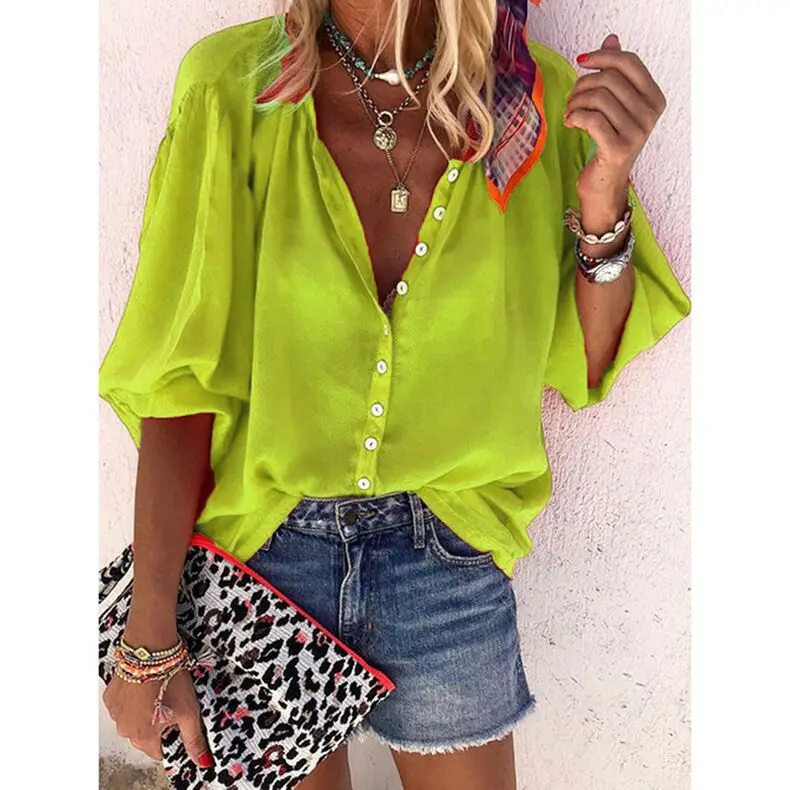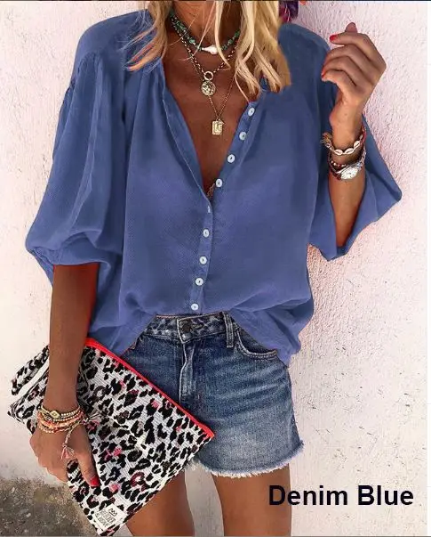 Solid Color Long-sleeved V-neck Button Ladies Shirt Summer Women's Blouse 2022 Explosion Models New Women Dark Blue Femme Blusas