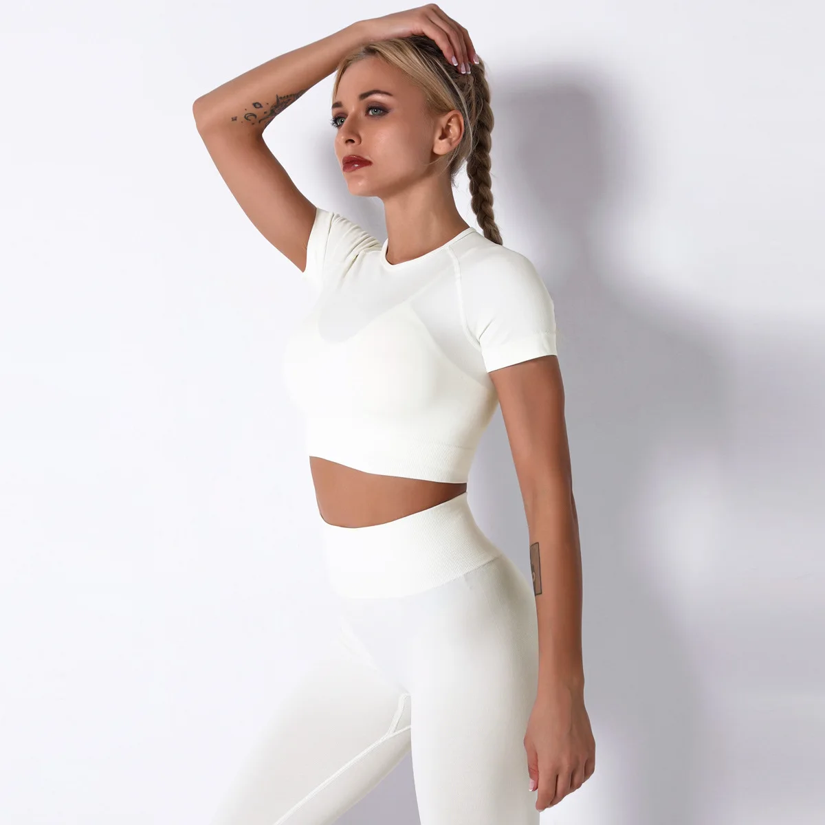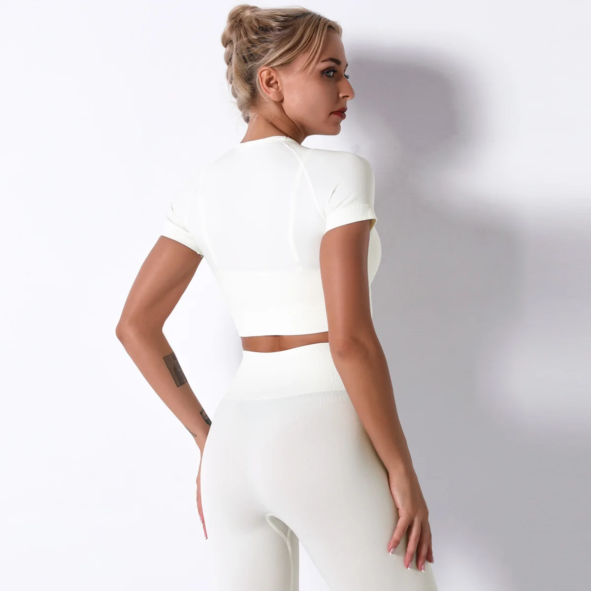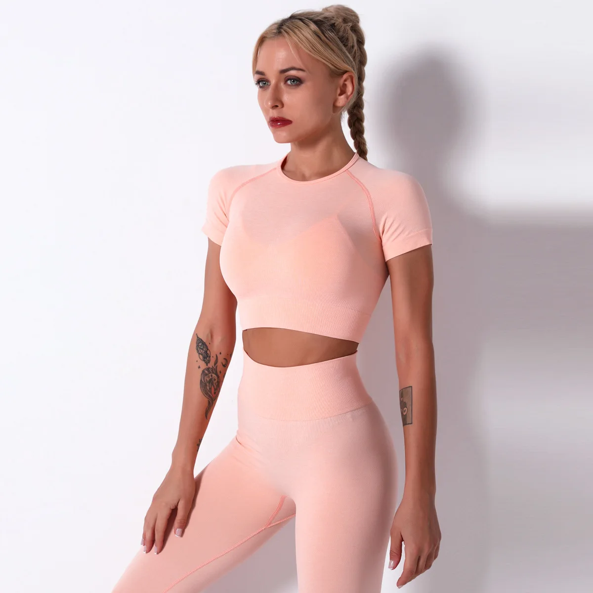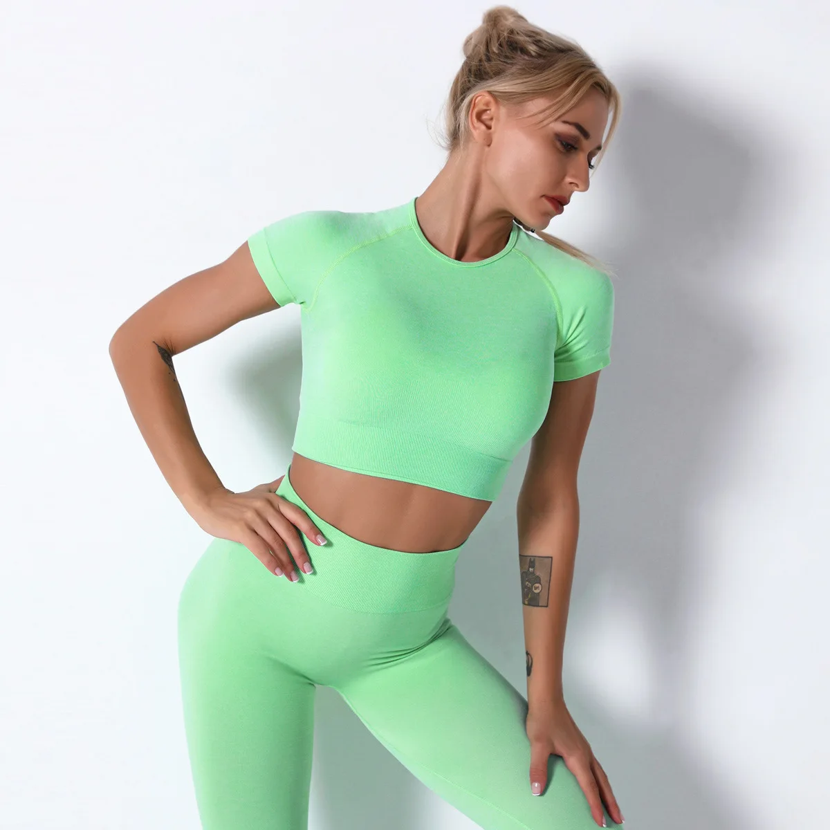 Solid Color Yoga Pants Set Women Fitness Leggings Gym Workout Tights High Waist Breathable Leggings Sports Female Clothing