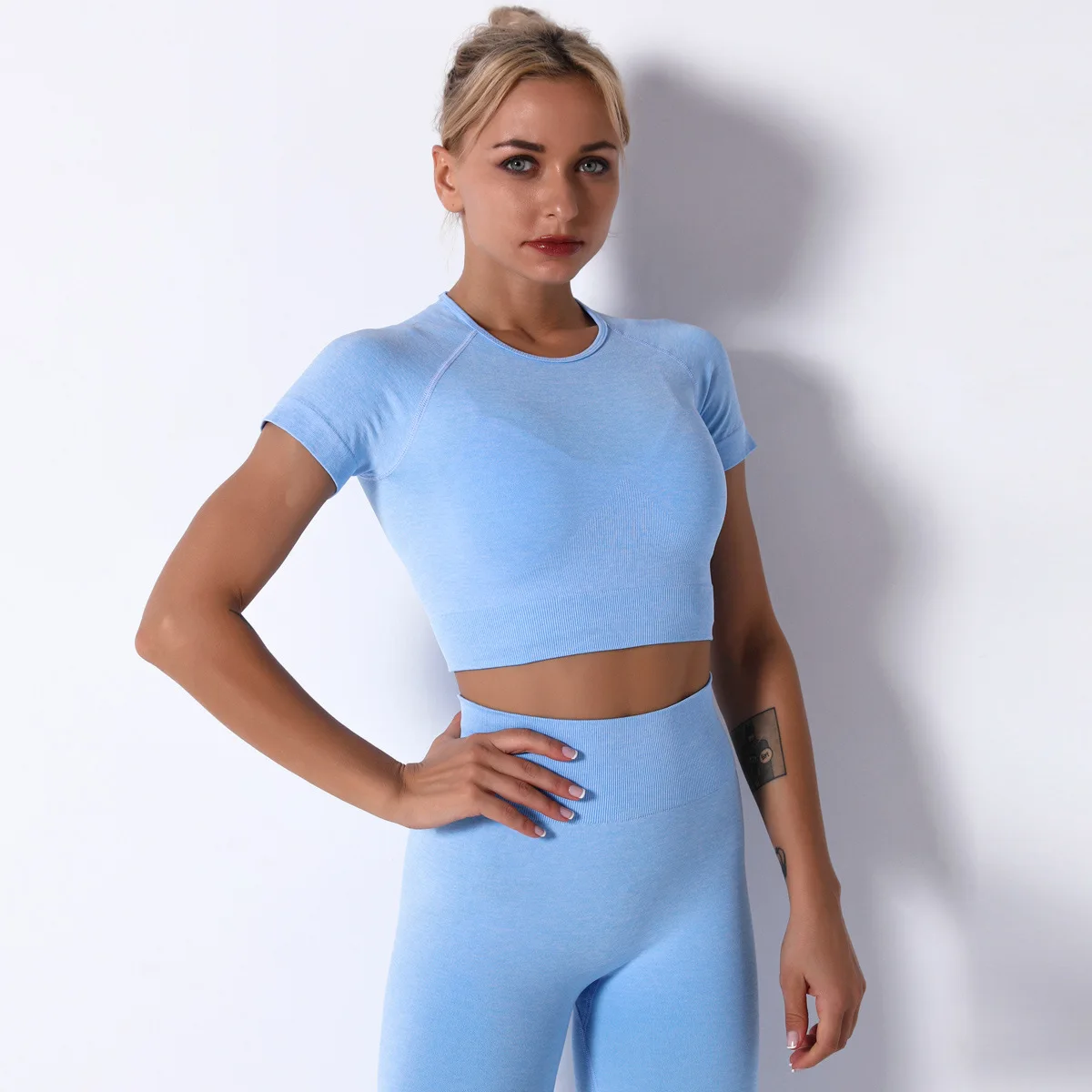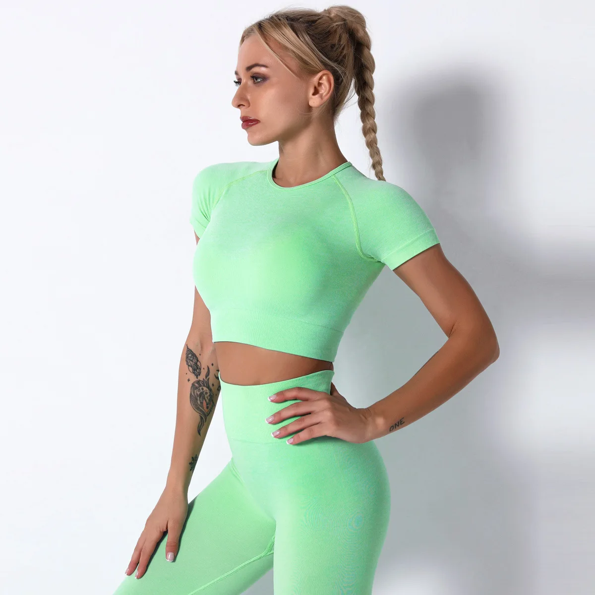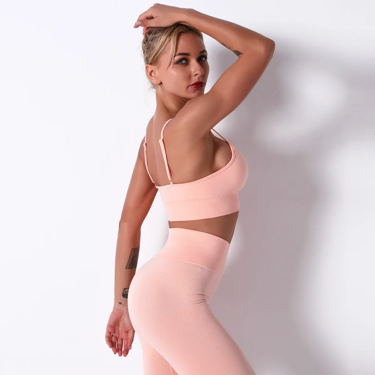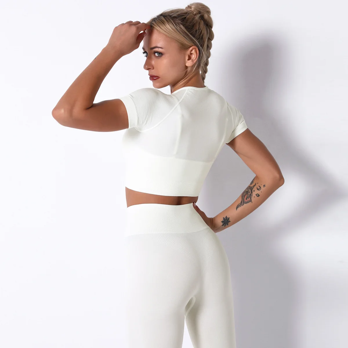 Solid Color Yoga Pants Set Women Fitness Leggings Gym Workout Tights High Waist Breathable Leggings Sports Female Clothing