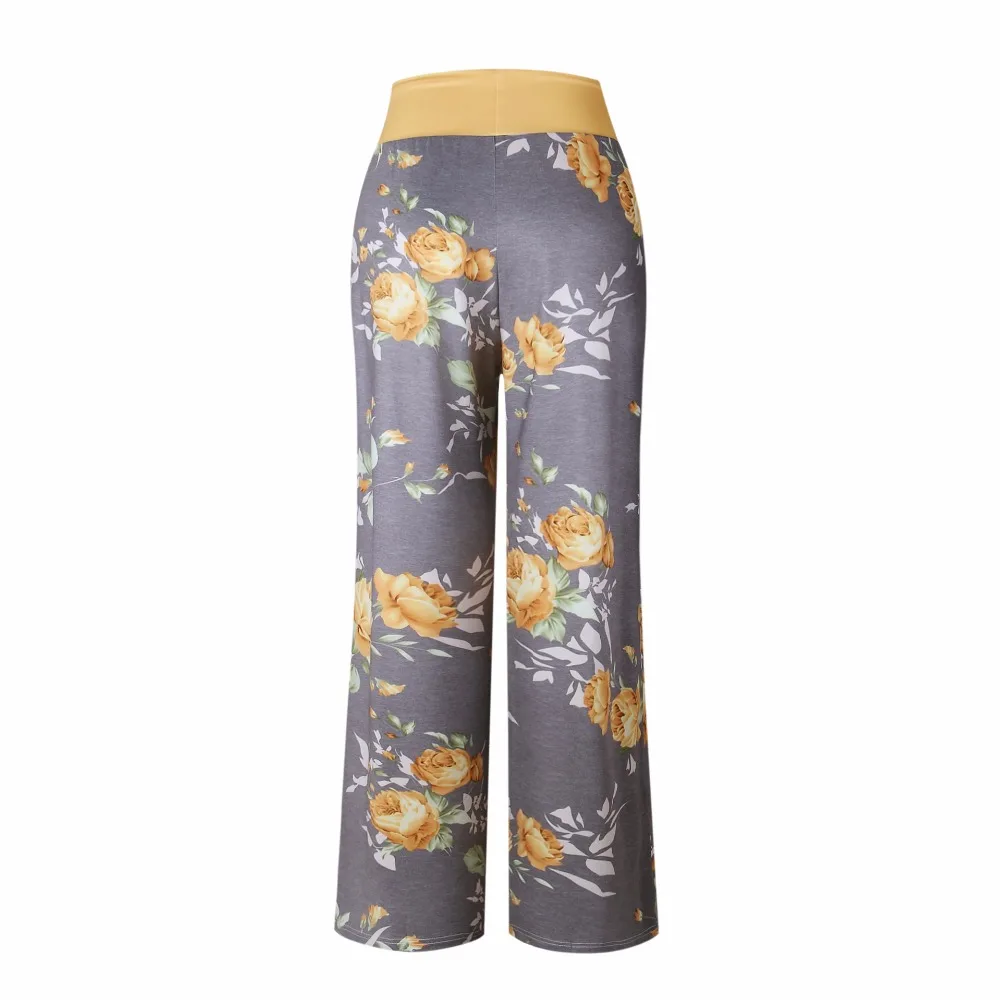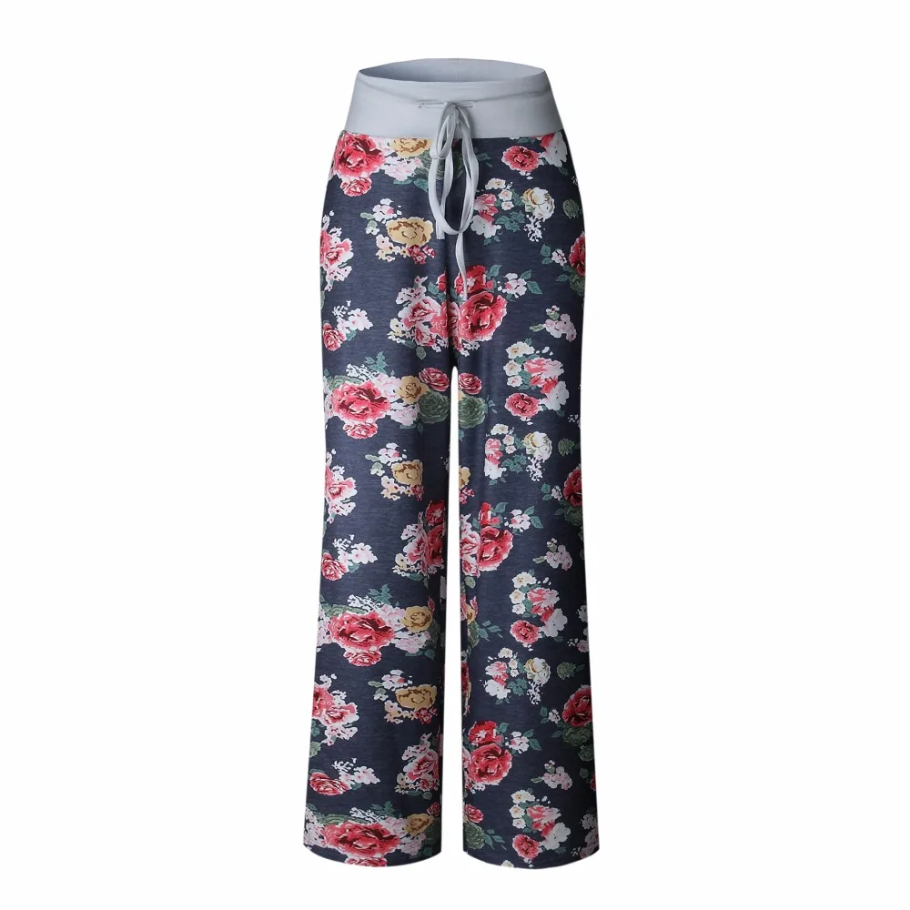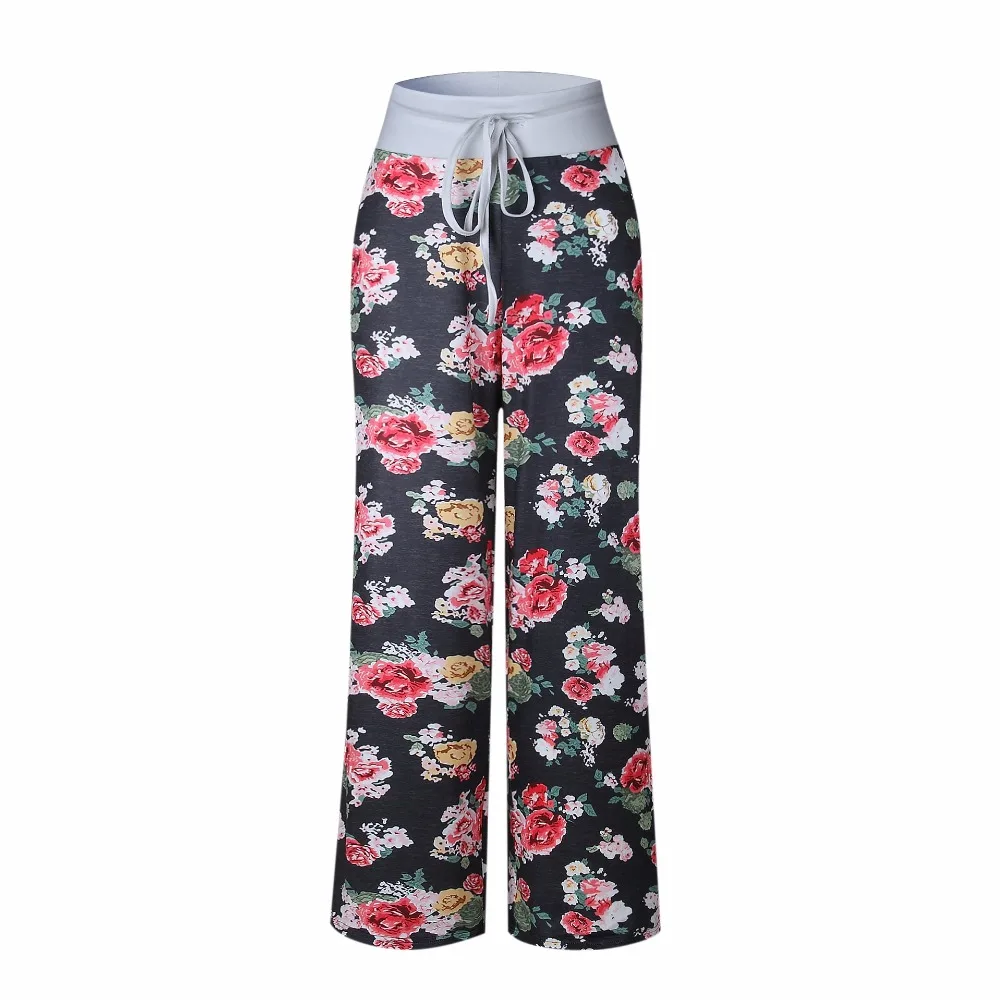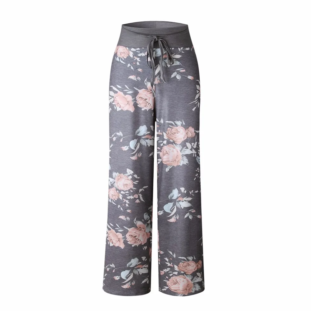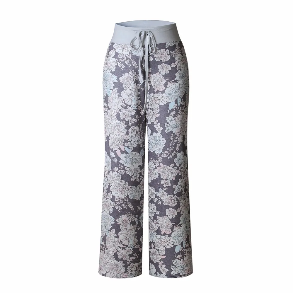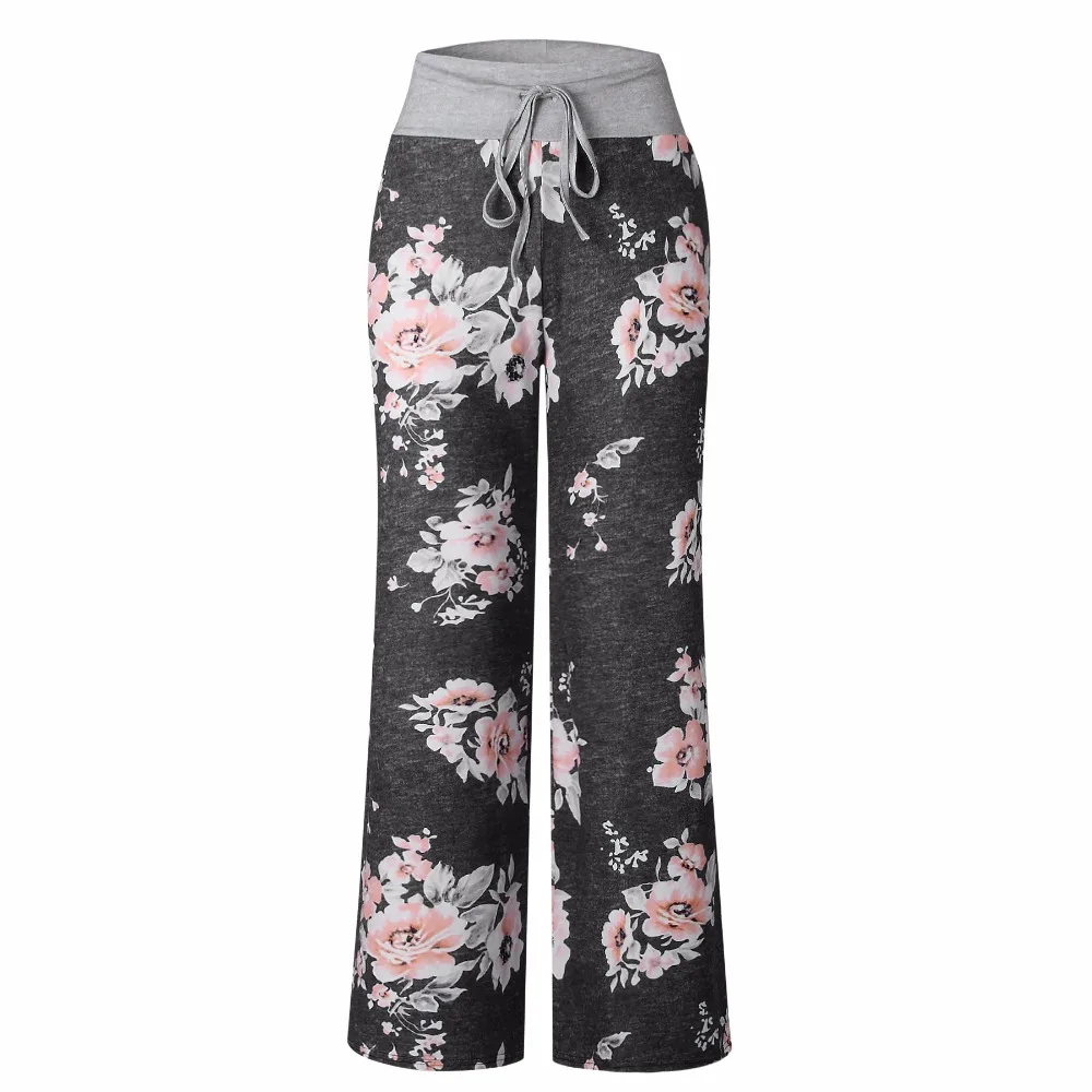Spring 2021 Causal Women Pants Printed Drawstring High Waist Straight Women Loose Wide Leg Pants Streetwear Ladies Long Trousers