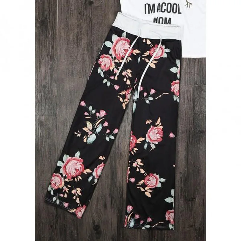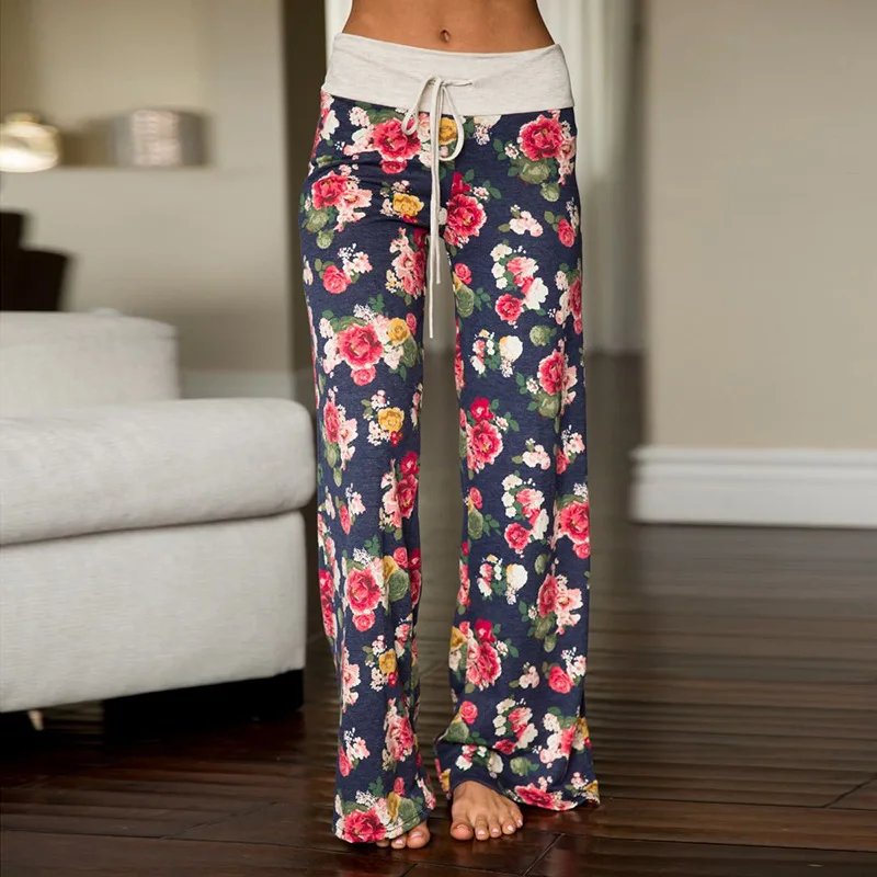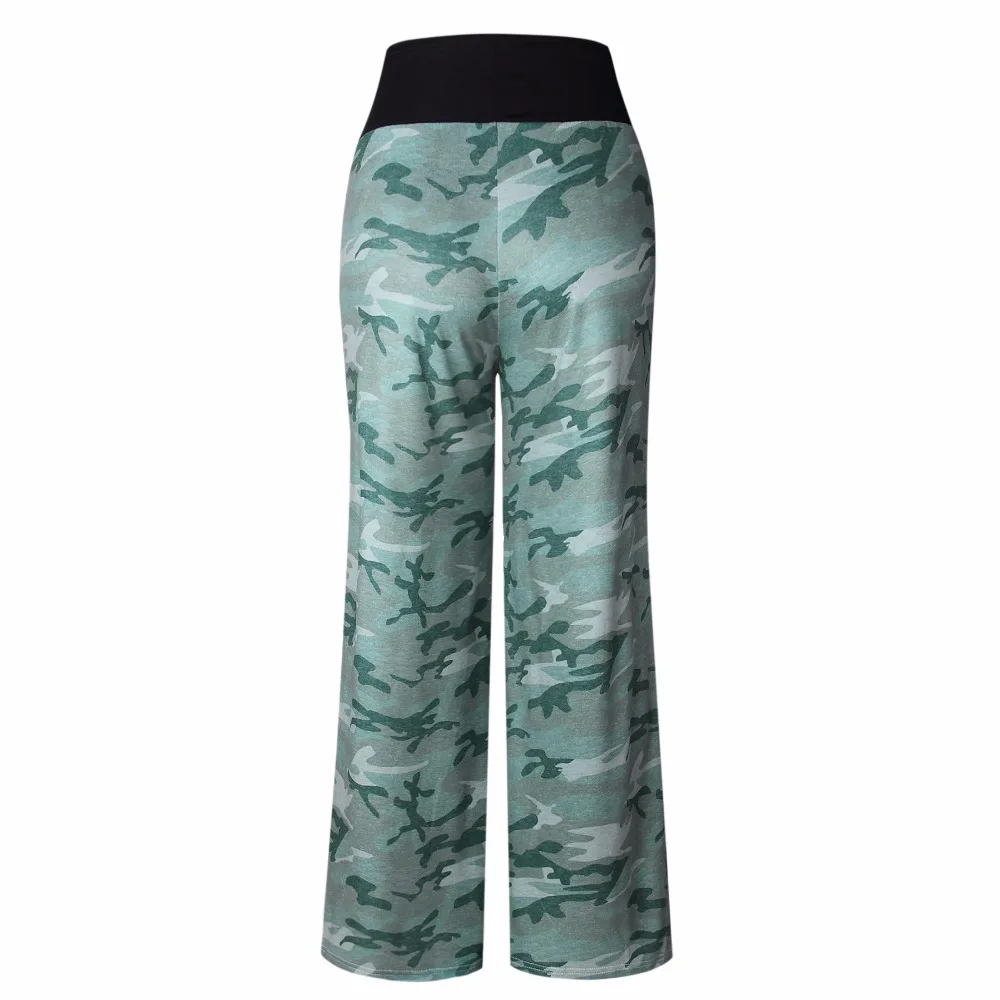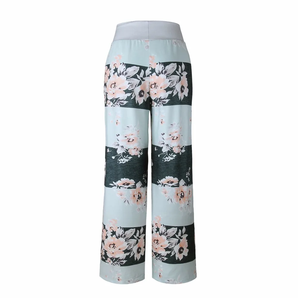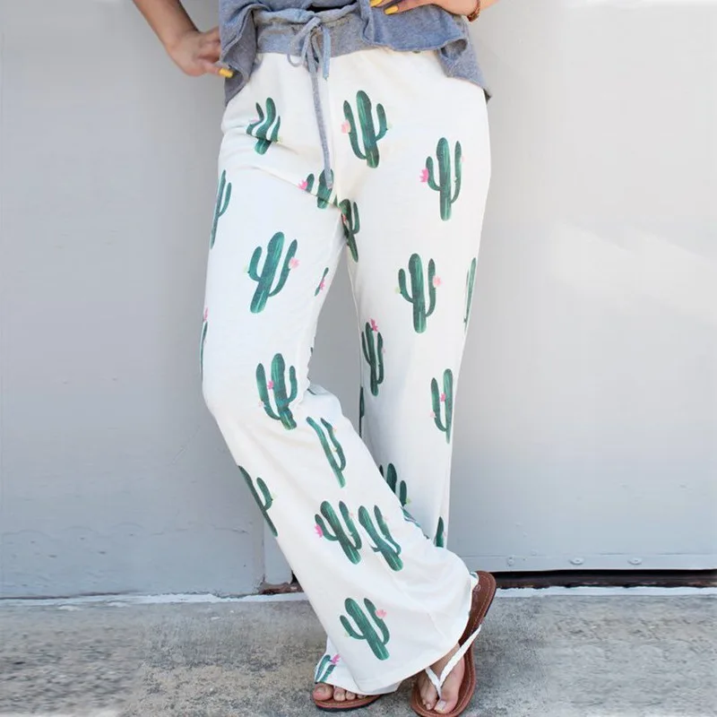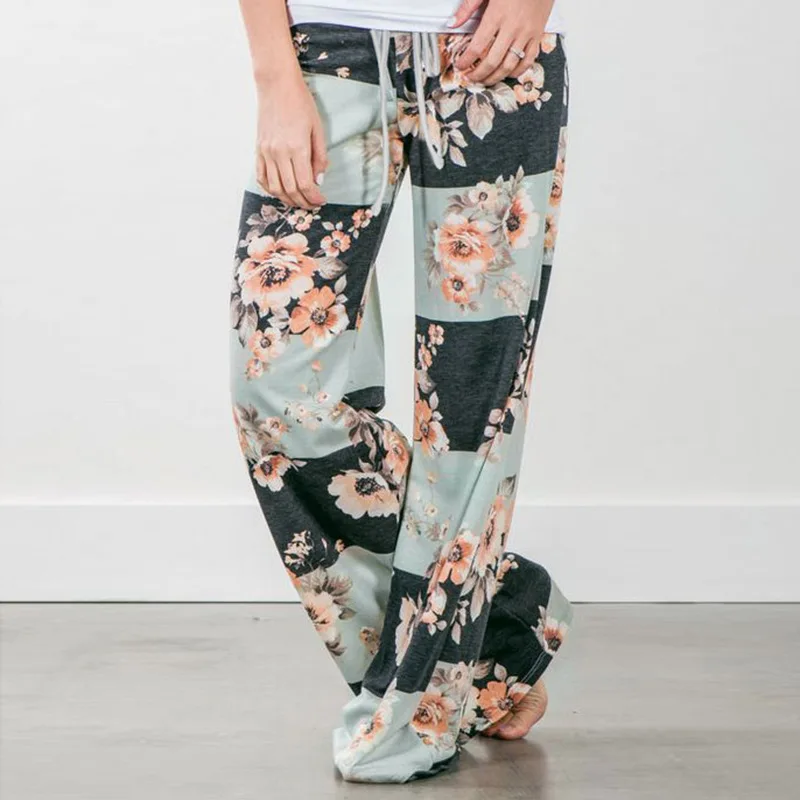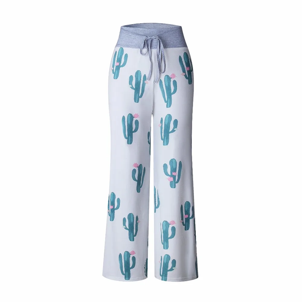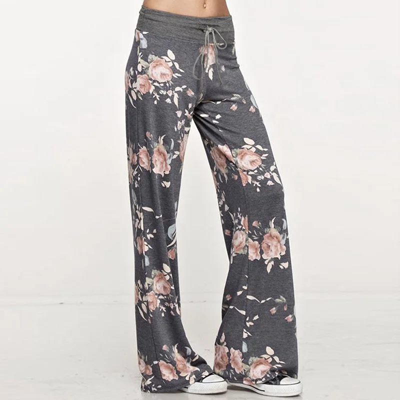 Spring 2021 Causal Women Pants Printed Drawstring High Waist Straight Women Loose Wide Leg Pants Streetwear Ladies Long Trousers