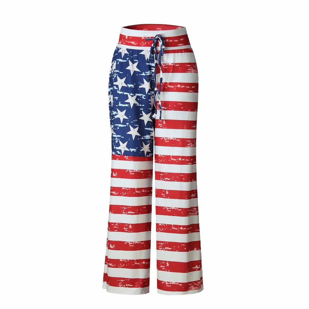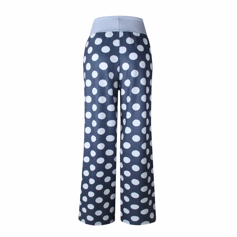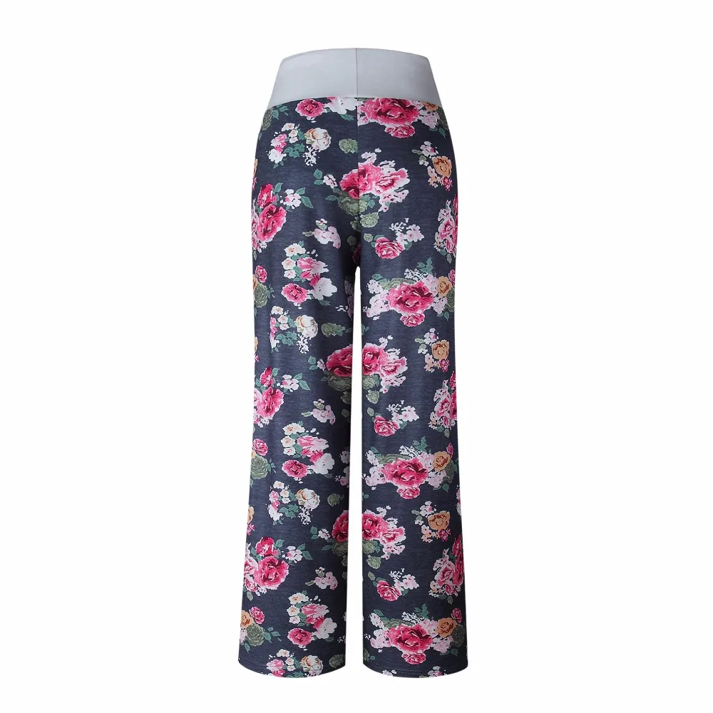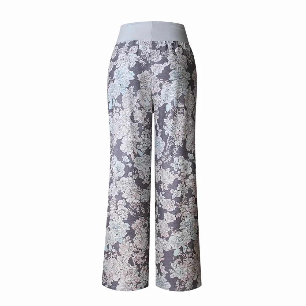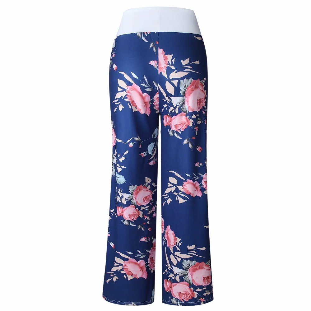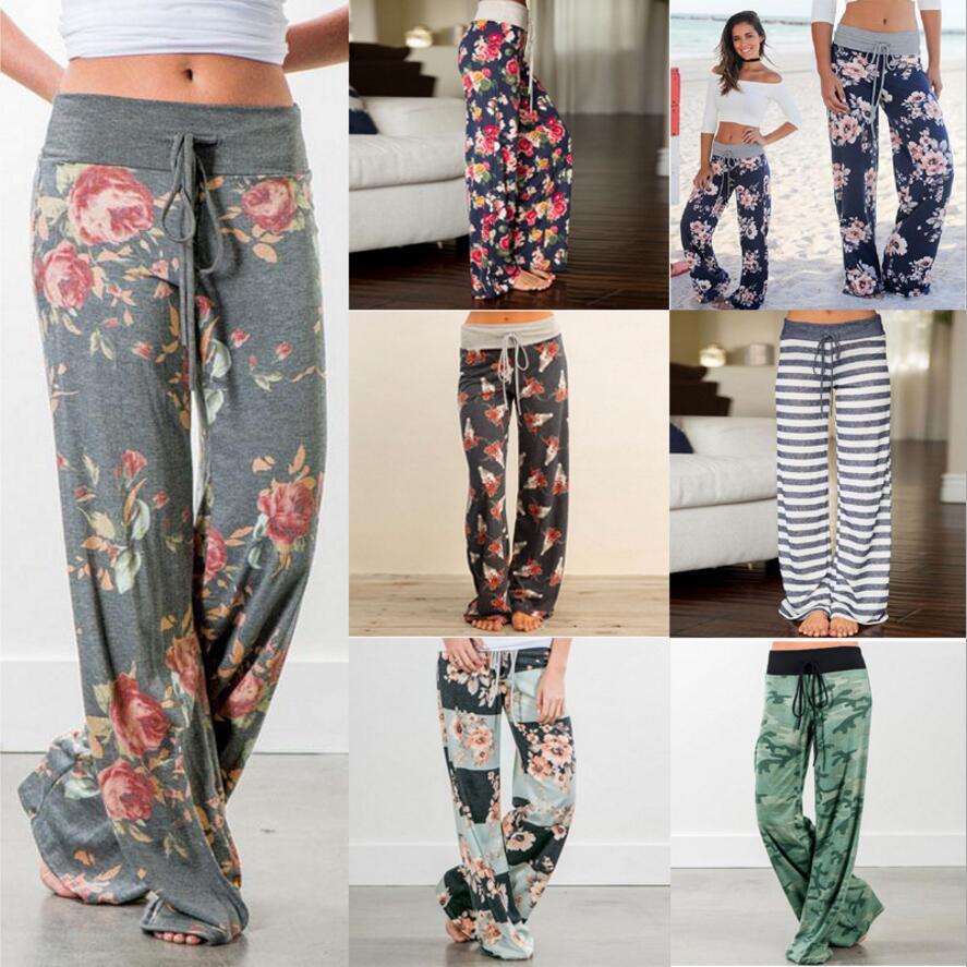 Spring 2021 Causal Women Pants Printed Drawstring High Waist Straight Women Loose Wide Leg Pants Streetwear Ladies Long Trousers