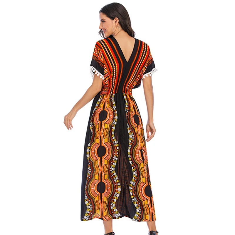 Spring and summer casual women's pullover dress with fringe long skirt high waist holiday beach skirt