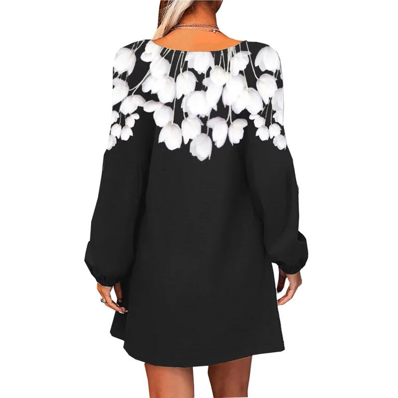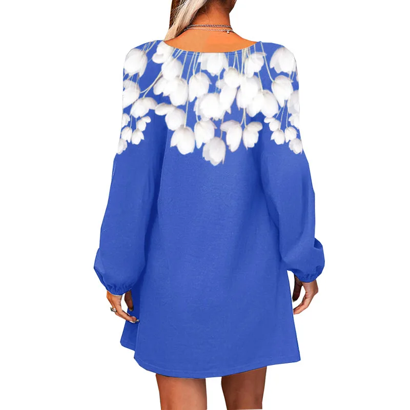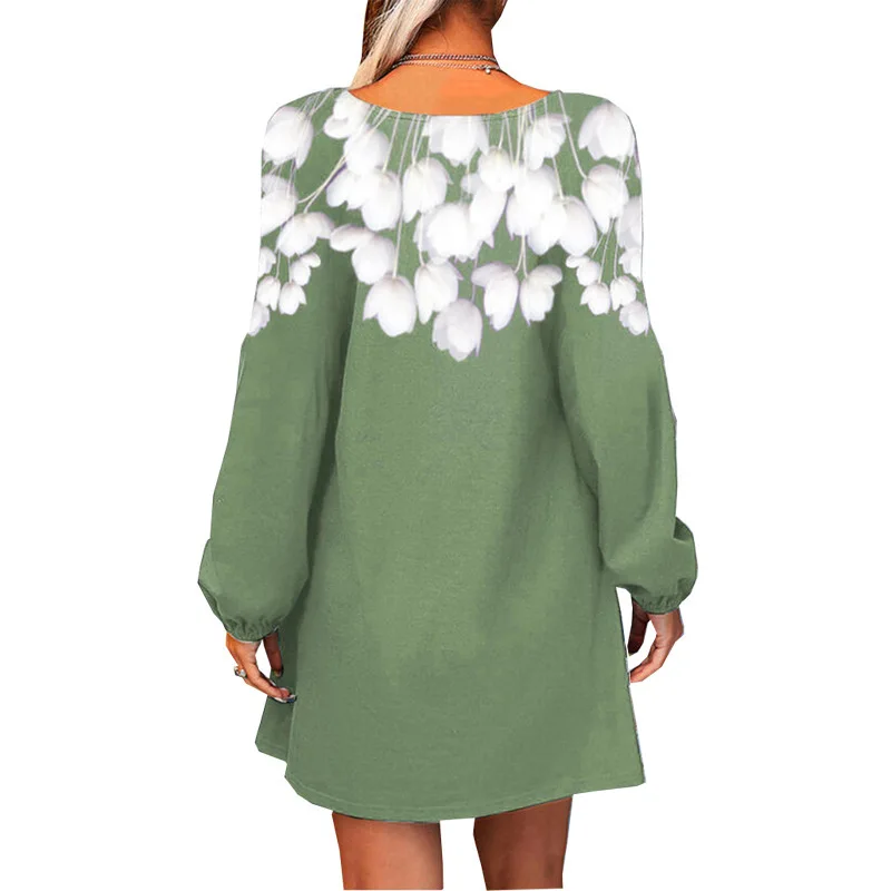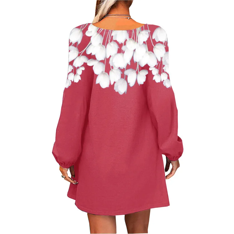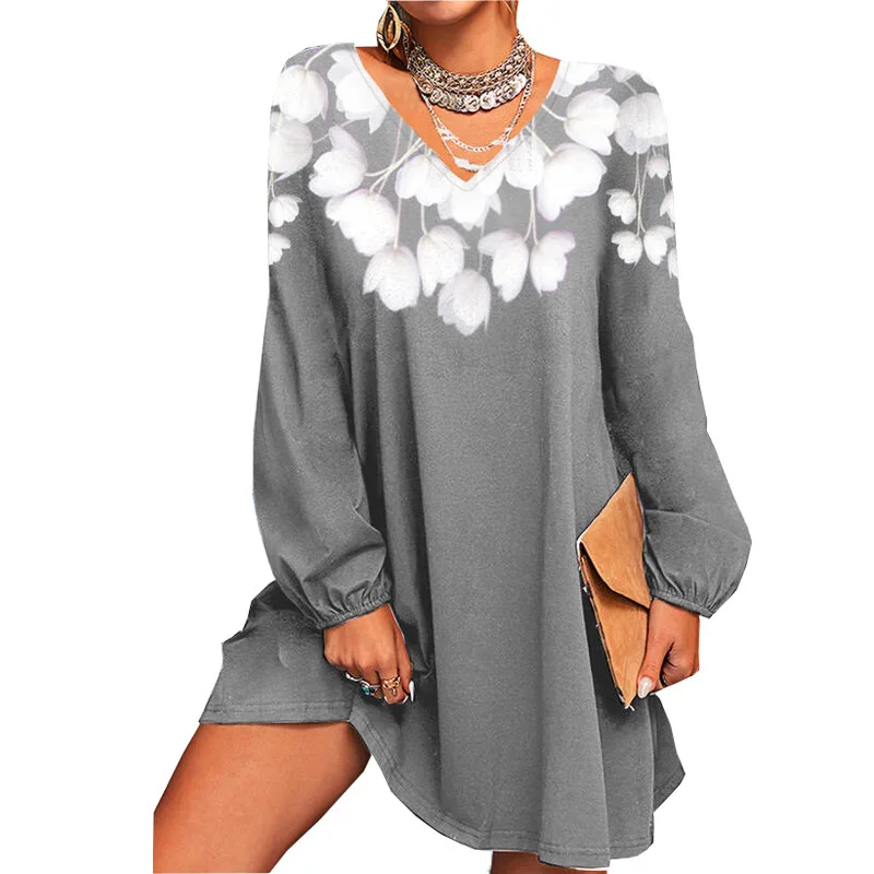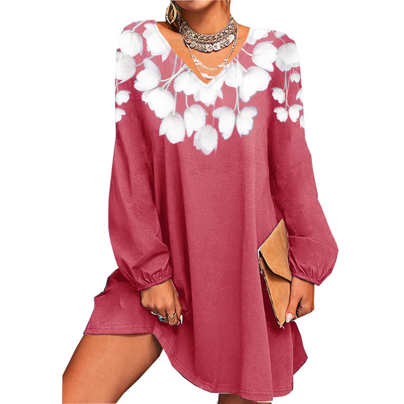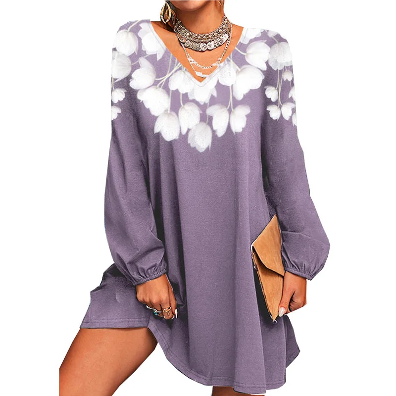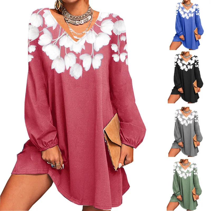 Spring And Summer Print Sexy Knitted Dress Women's Clothes Casual V-Neck Fashion Girl Dresses Long Sleeve New Ladies Streetwear