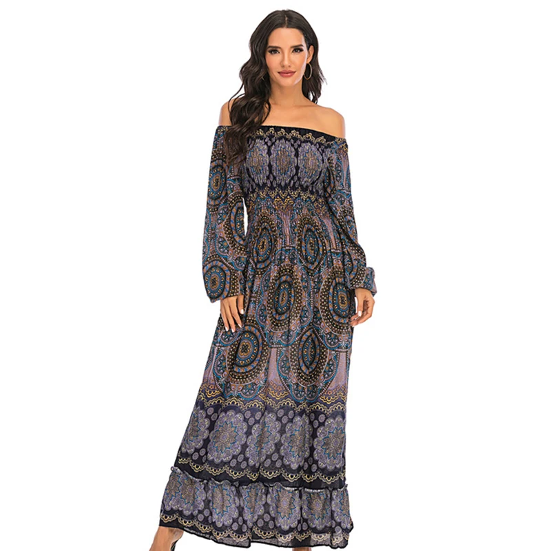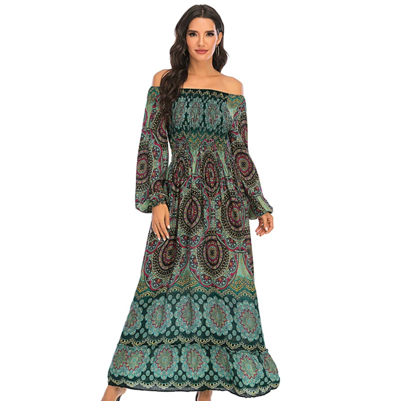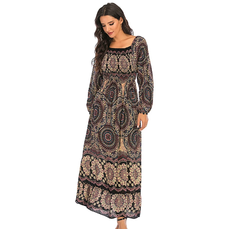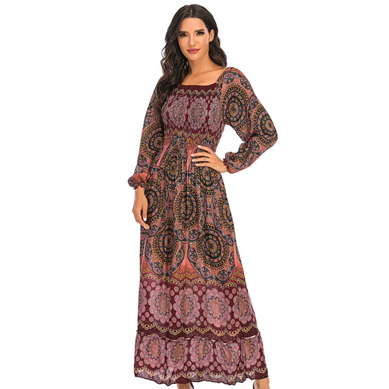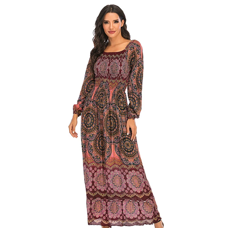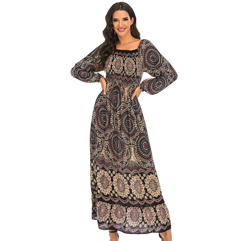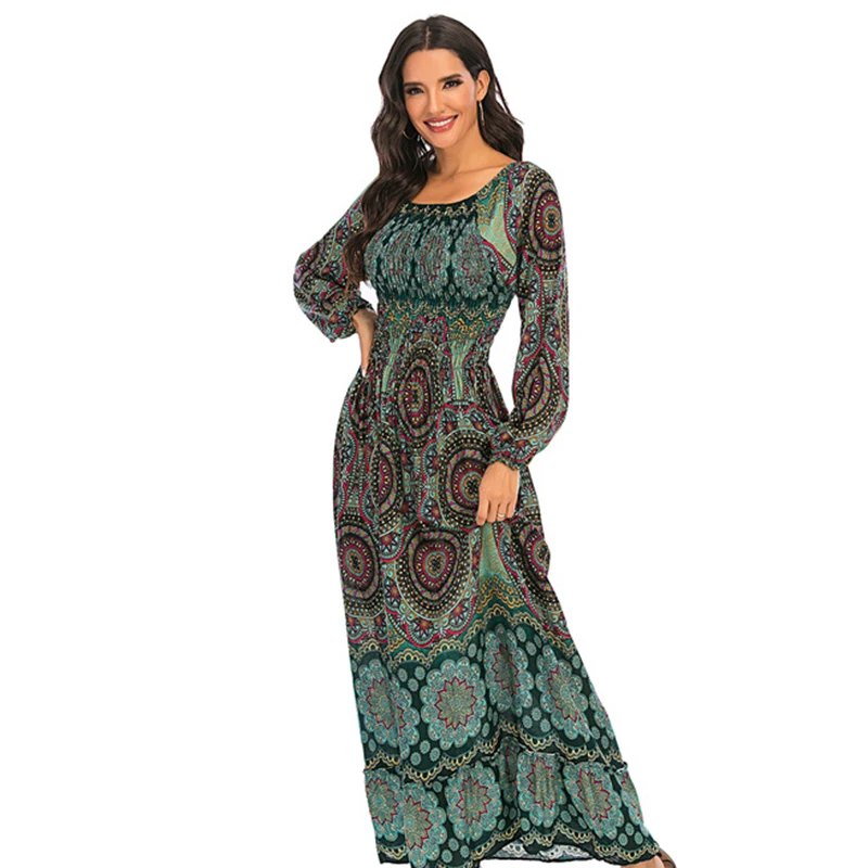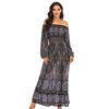 Spring and summer women's long sleeve long sleeve print dress in the waist skirt bask in the beach skirt