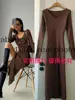 spring and winter sexy French slit sweater dress female slim tight-fitting hip-knit over-the-knee dresses