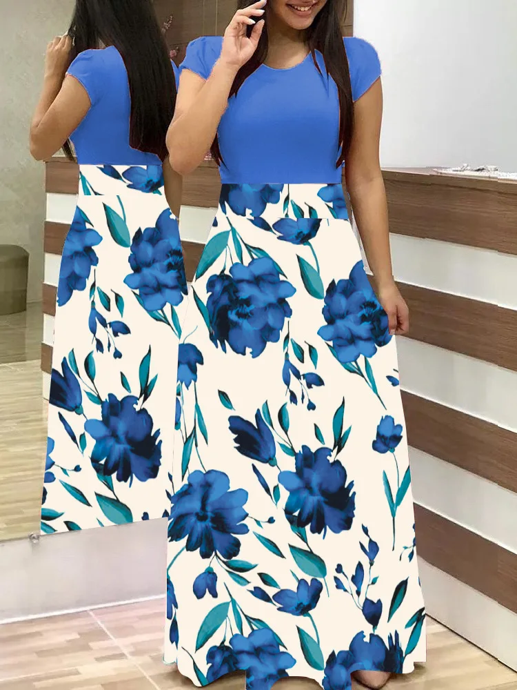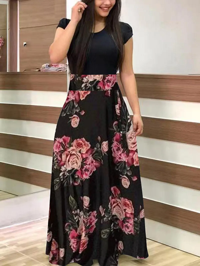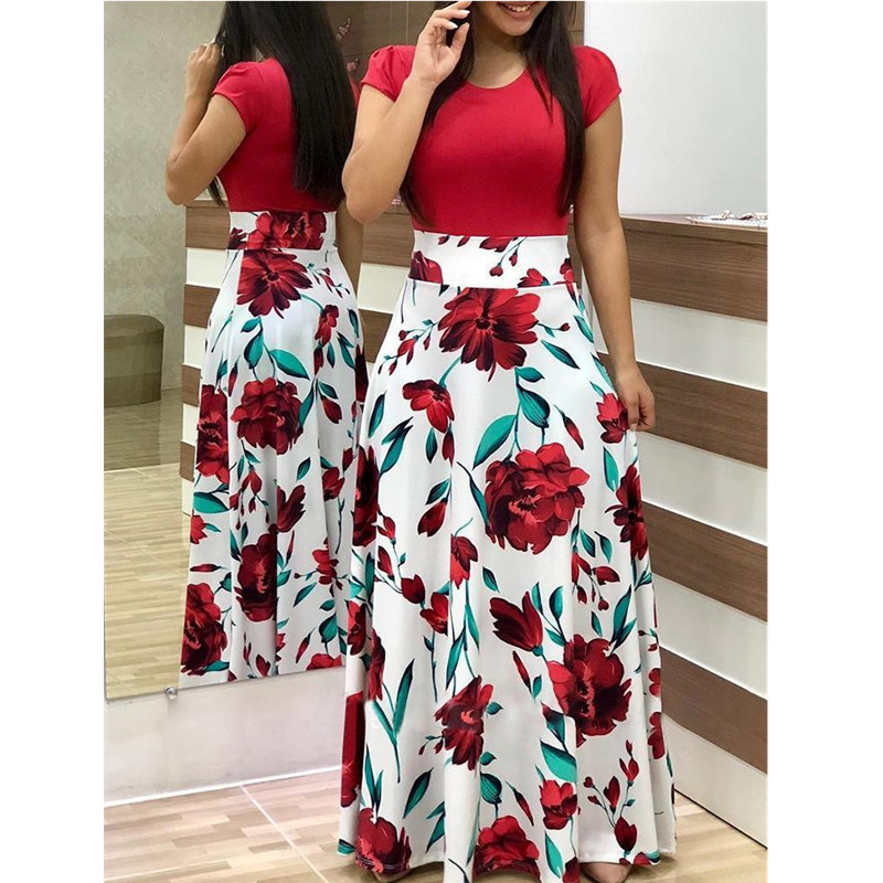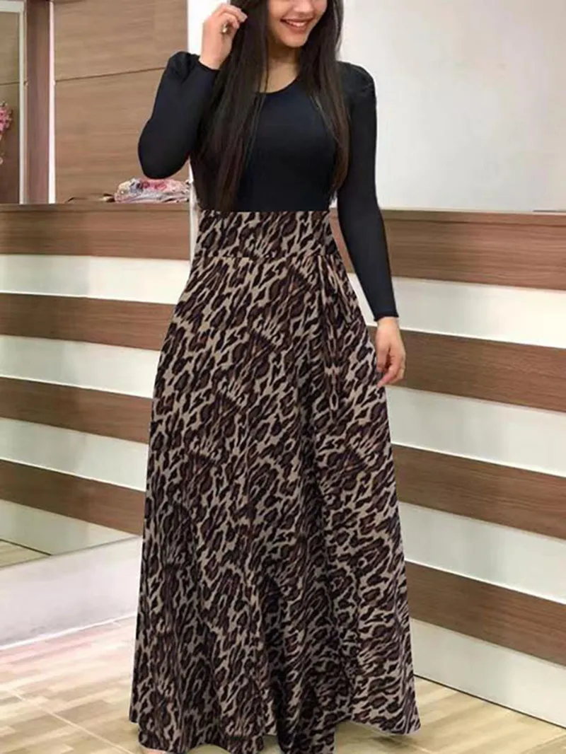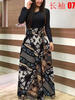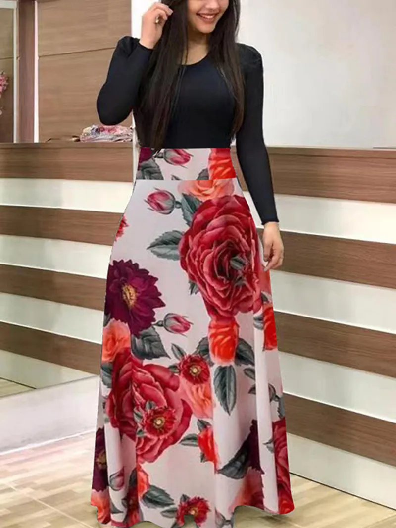 Spring Autumn For Women Dress 2020 Casual Long Sleeve O-neck Tunic Patchwork Dresses Fashion Vintage Print Maxi Dress Vestidos