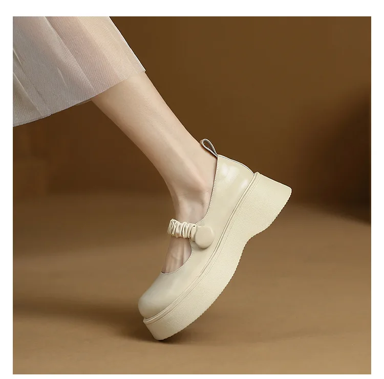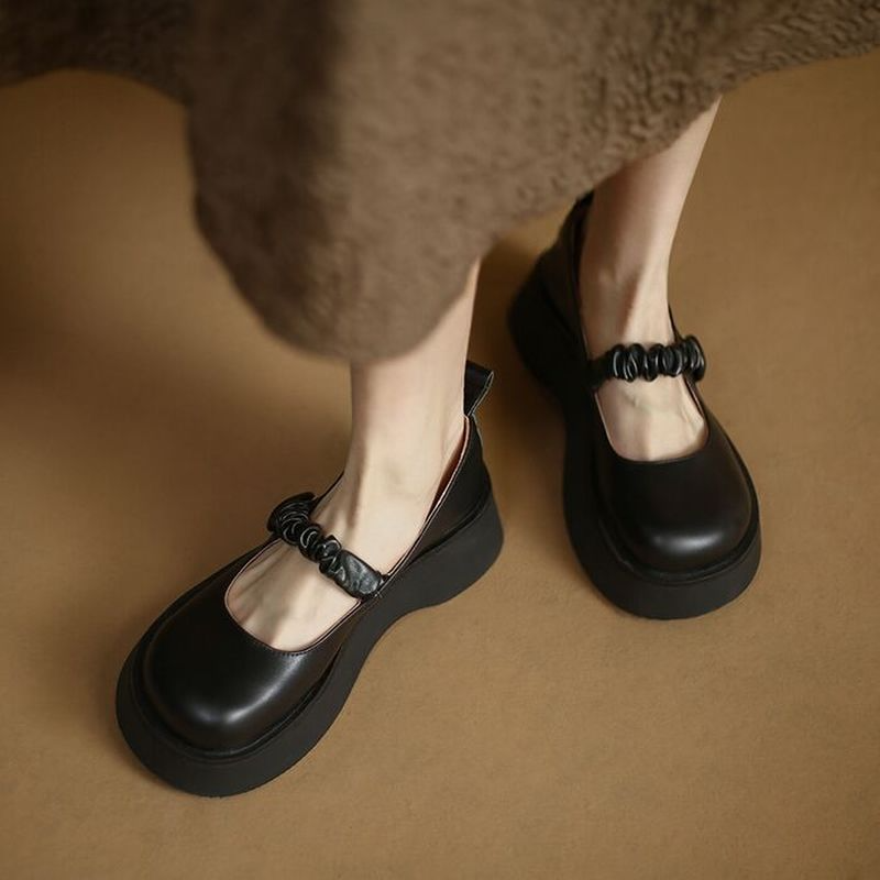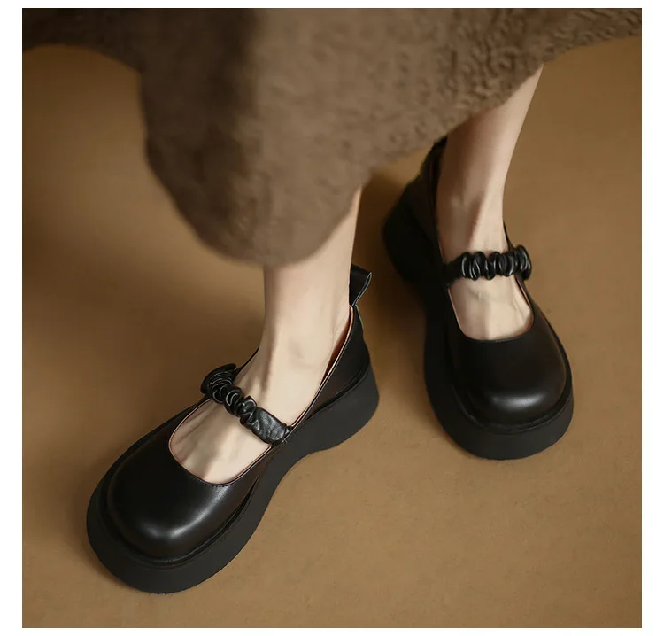 Spring Autumn Women Pumps Leather Heels Sweet Concise Platform Mary Janes Shoes Woman Lolita Style Cosplay Ladies Fashion Shoes