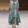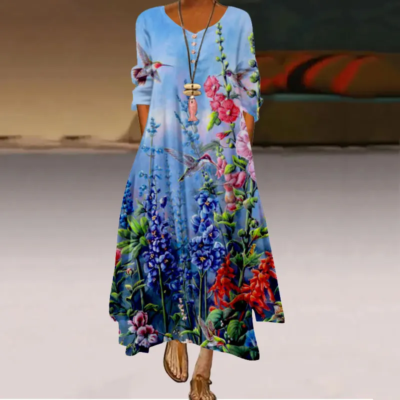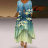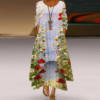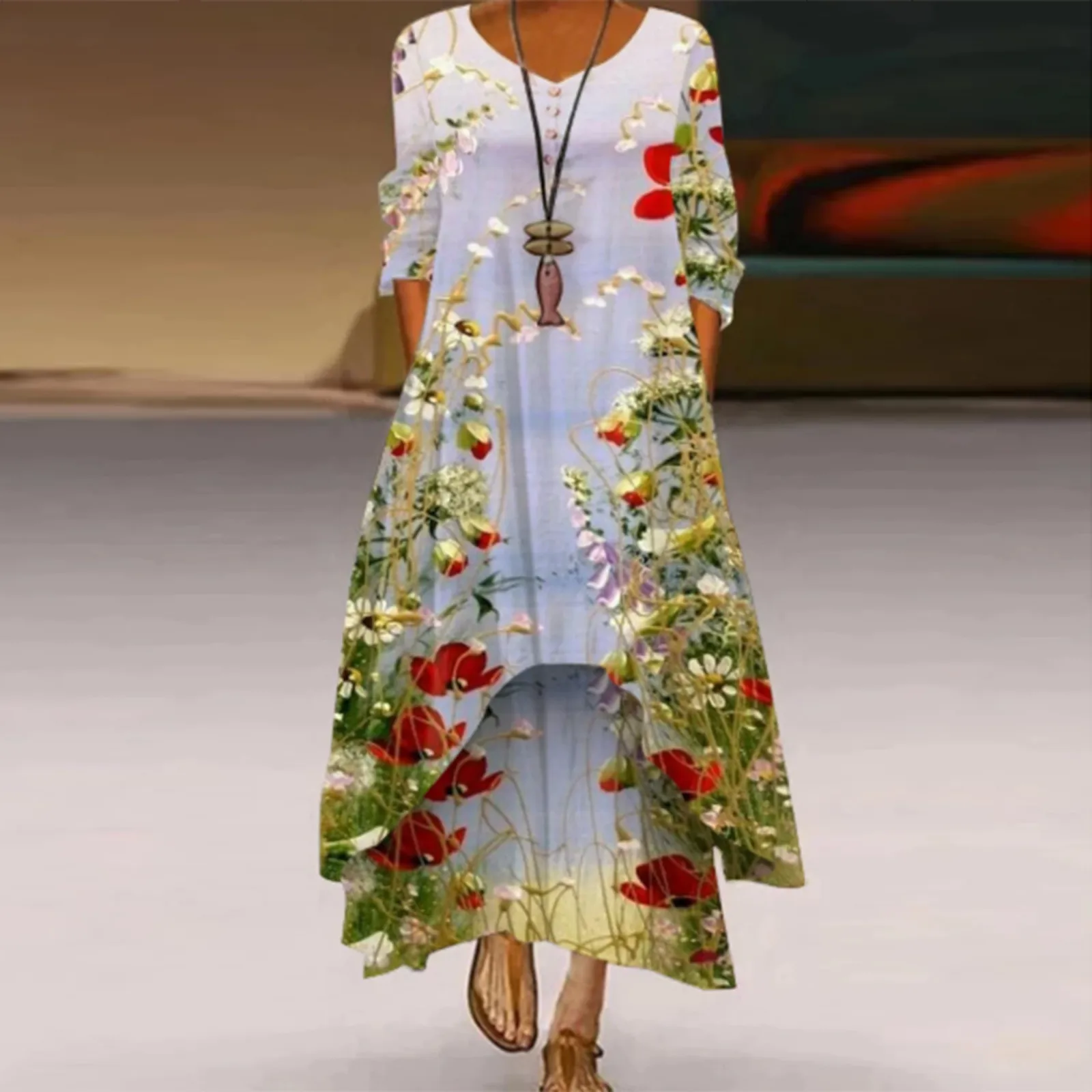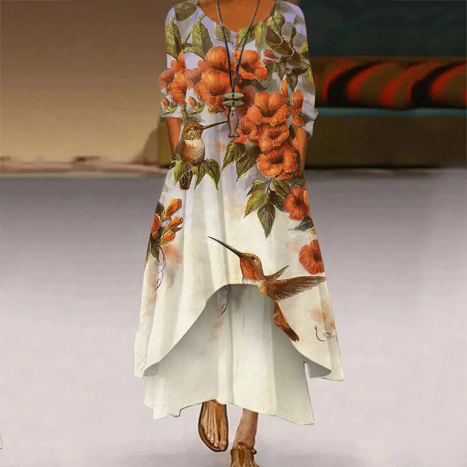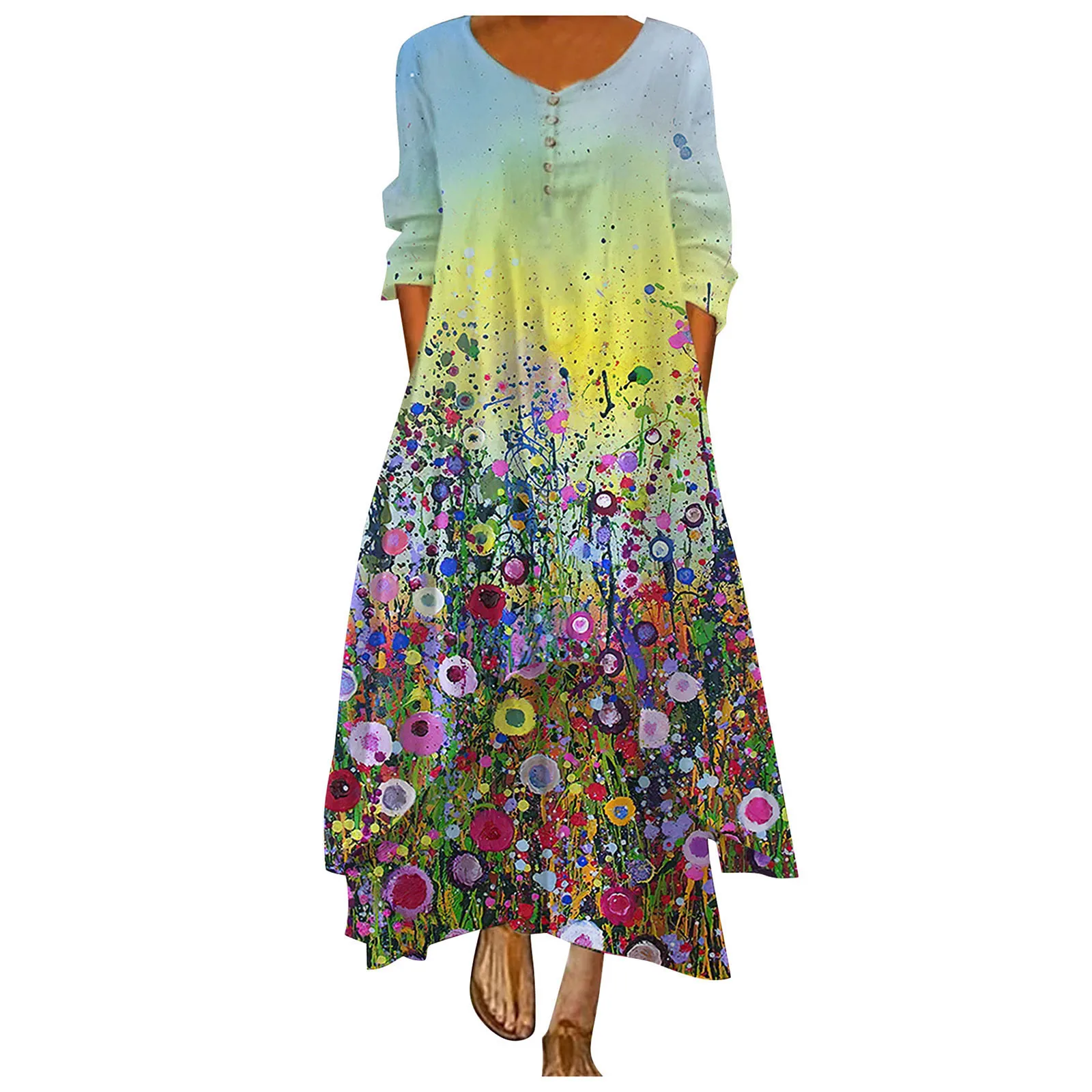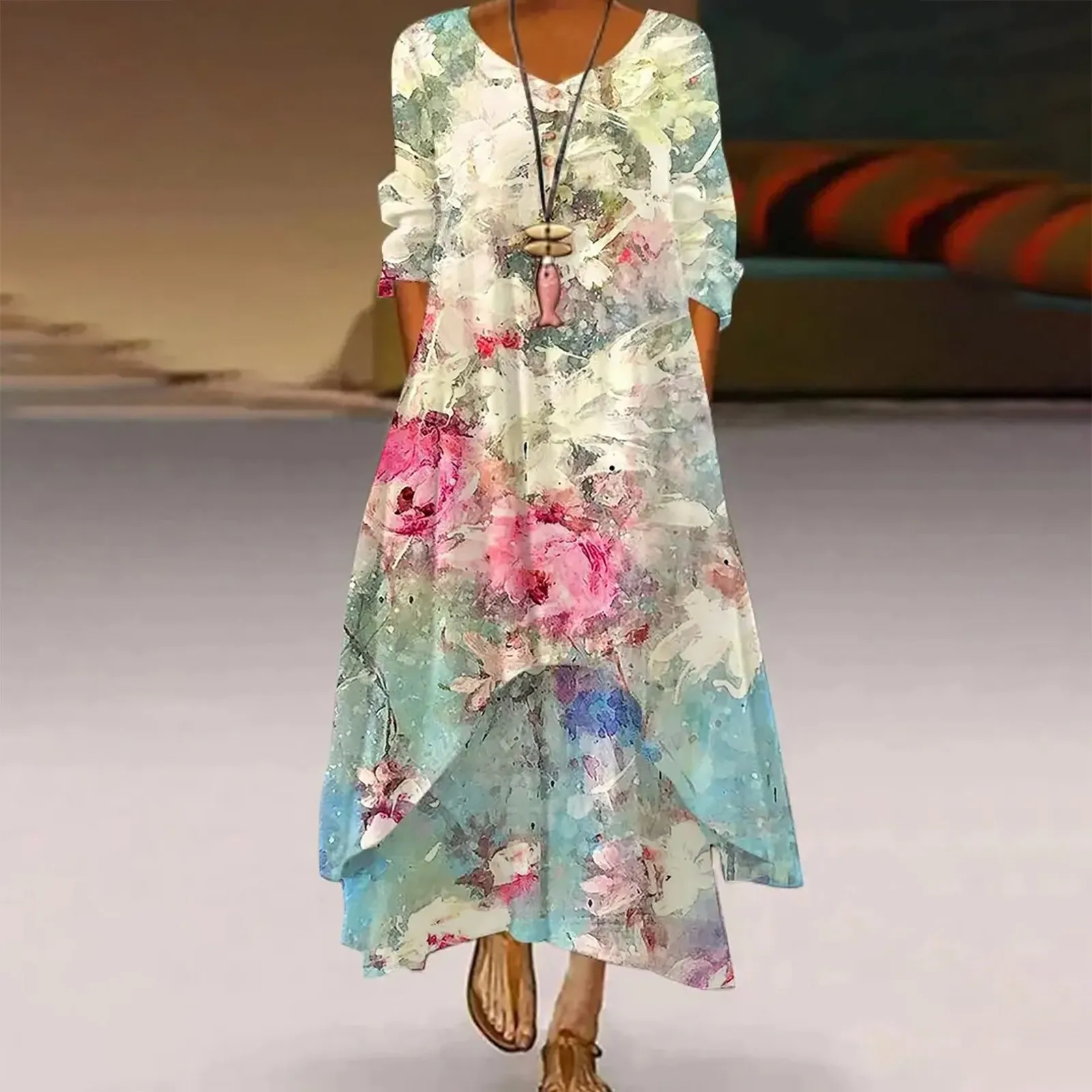 Spring Long Sleeve Women Dress Fashion O-neck Elegant Lady Maxi Dress Vintage 3D Floral Print Casual Female Loose Dress Vestido