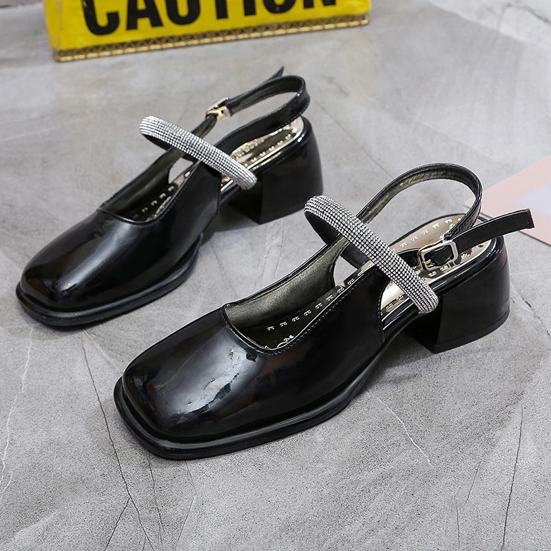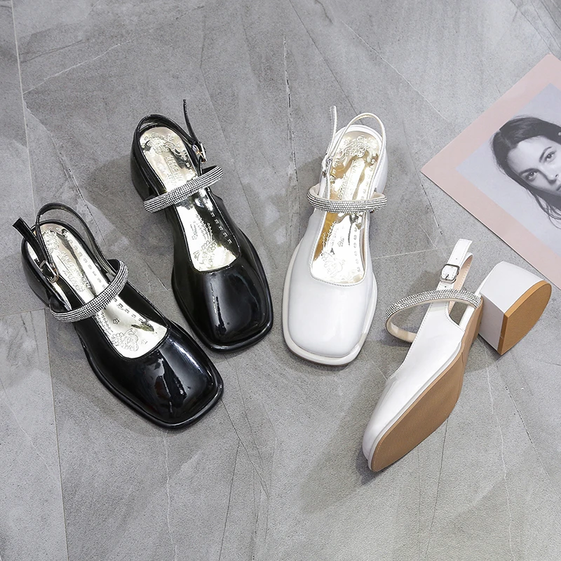 Spring Shoes Buckle Strap Med High Heel Sandal for Women Square Toe Espadrilles Platform All-Match Suit Female Beige Medium High